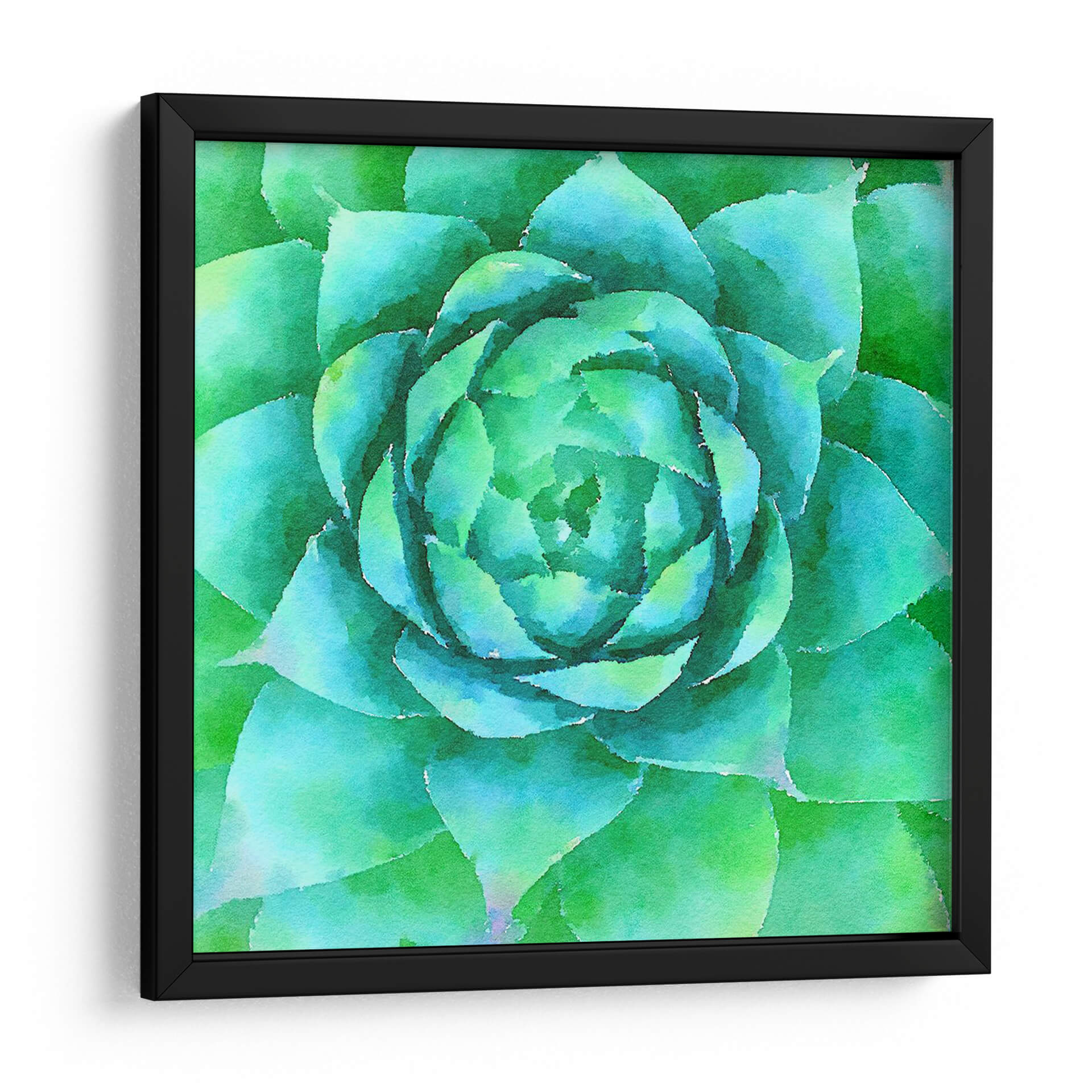 Sumérgete en la frescura y serenidad de "Succulente X", una obra de arte que captura la belleza intrínseca de la naturaleza con un toque contemporáneo. Este cuadro decorativo presenta una vista macro de una suculenta, donde las delicadas capas de sus hojas se despliegan en una espiral hipnótica. La paleta de colores, dominada por vibrantes tonos de verde esmeralda, turquesa y toques sutiles de azul, evoca una sensación de calma y vitalidad, transportando la tranquilidad de un jardín botánico a tu hogar u oficina. La técnica de acuarela utilizada por Jennifer Paxton Parker aporta una textura suave y fluida, creando un efecto visual cautivador que invita a la contemplación. Su composición centrada y la abstracción orgánica la convierten en una pieza versátil, perfecta para añadir un acento de color y vida a cualquier espacio moderno, minimalista o bohemio. Ideal para salones, dormitorios o estudios, "Succulente X" es más que una decoración; es una ventana a la armonía natural que inspira paz y renovación. Transforma tu entorno con la elegancia sencilla y la frescura duradera de esta pieza única.