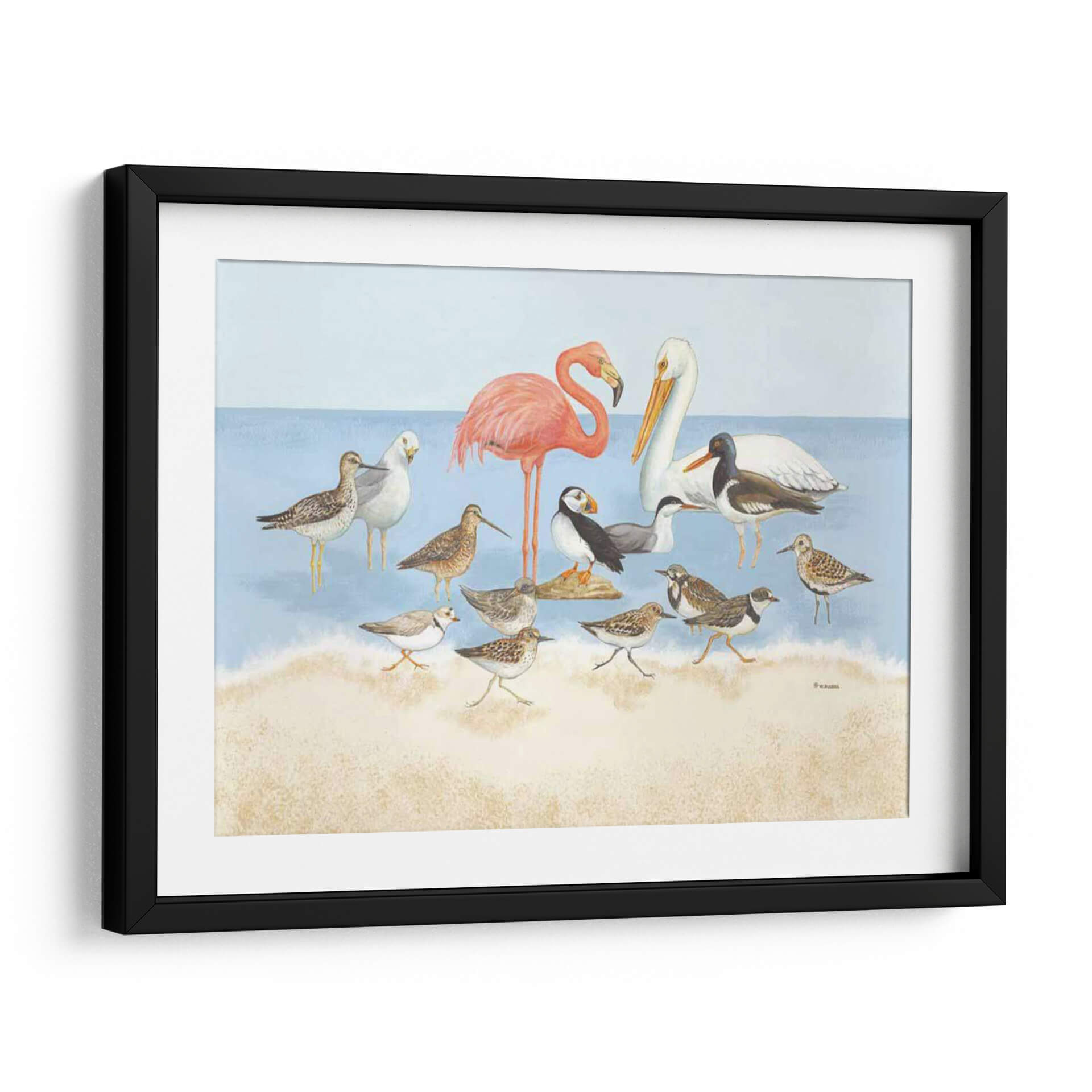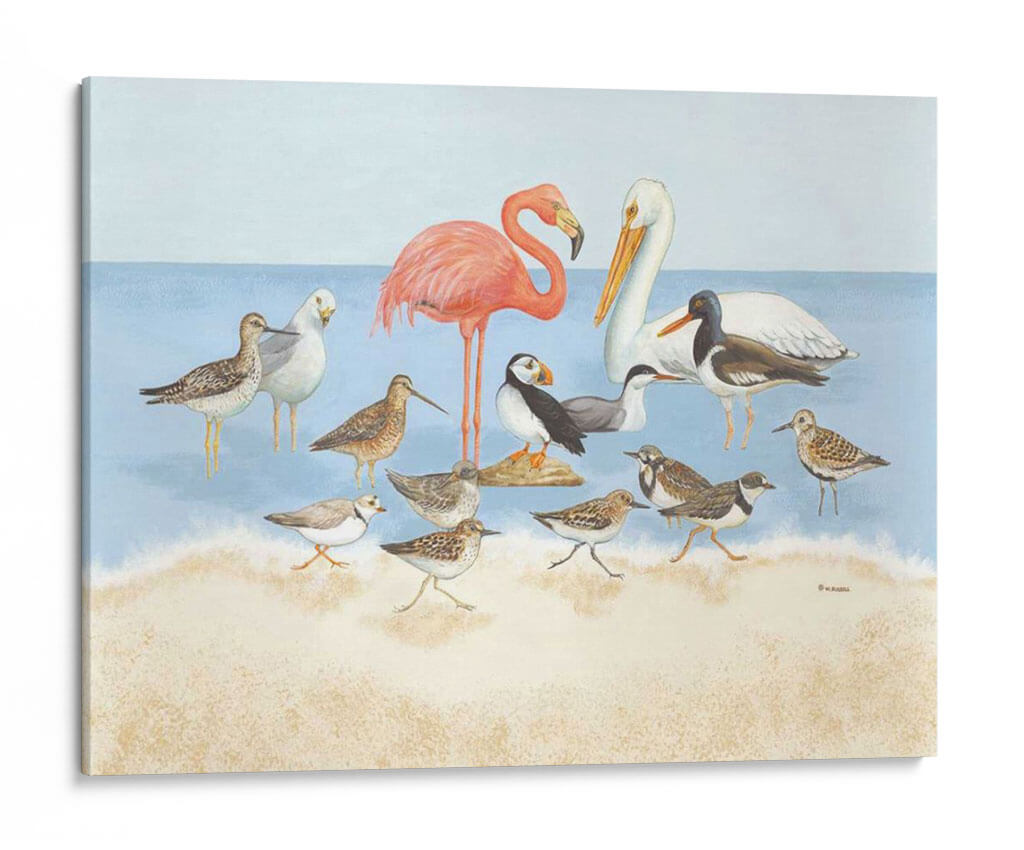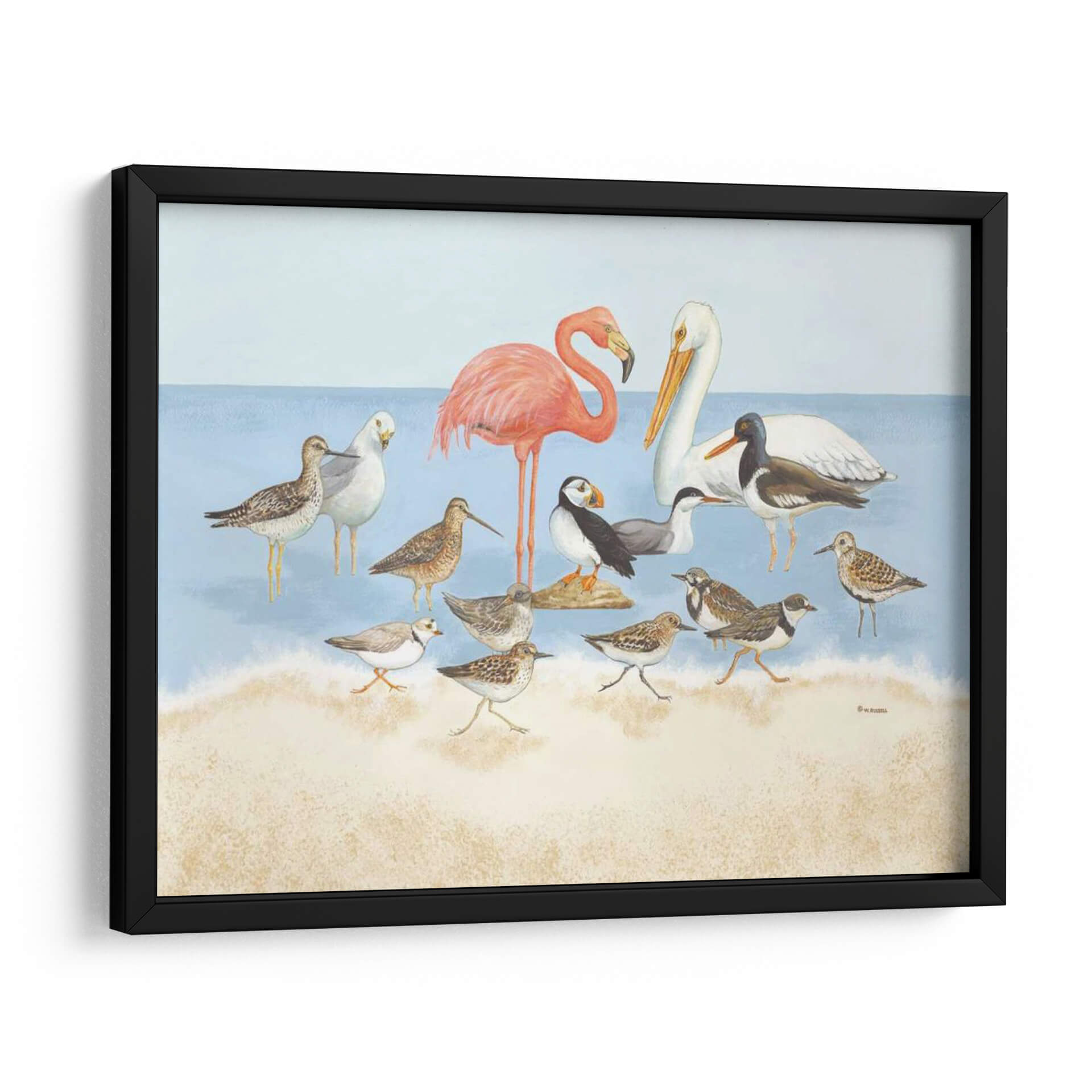 Captura la esencia de la costa con nuestro cuadro decorativo "Summit Seebird", una obra encantadora de Wendy Russell. Esta pieza vibrante presenta una colección ecléctica de aves marinas posadas en una serena playa, con el océano azul claro de fondo. Destaca un flamenco rosado en el centro, flanqueado por pelícanos, frailecillos y una variedad de aves playeras en posturas dinámicas. La paleta de colores, dominada por azules celestes, arenas cálidas y los vivos tonos rosados y blancos de las aves, crea una atmósfera pacífica y alegre. El estilo realista y detallado de Russell da vida a cada pluma y textura, invitando al espectador a una contemplación tranquila de la naturaleza. Este cuadro decorativo es ideal para añadir un toque de encanto costero y vitalidad a cualquier sala de estar, dormitorio o estudio. Su composición equilibrada y el tema universal de la vida silvestre marina lo convierten en una adición versátil y atractiva para tu decoración de interiores, evocando la brisa marina y la serenidad del océano.