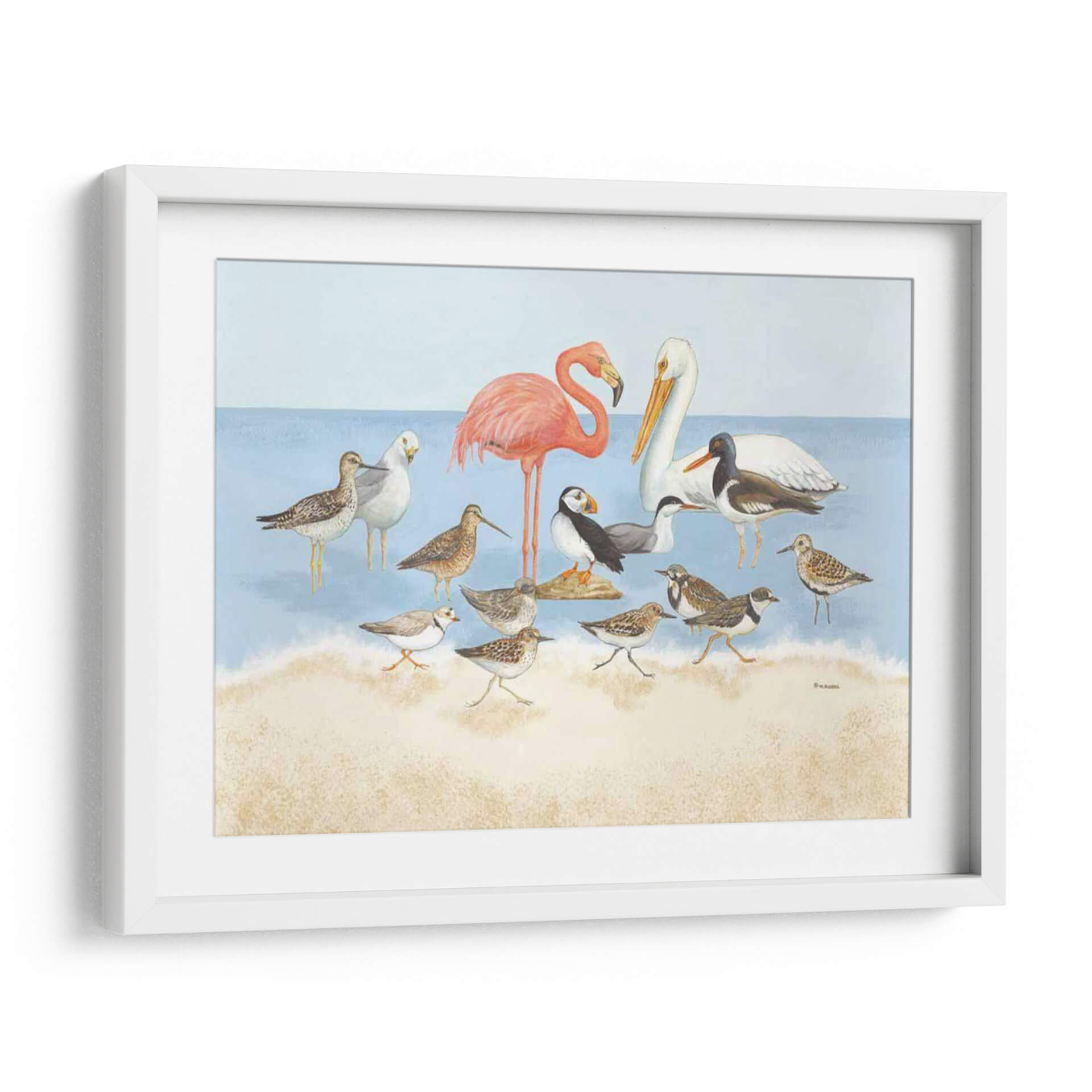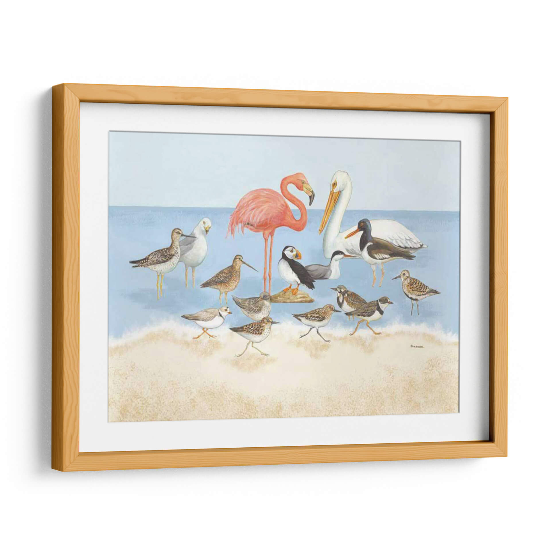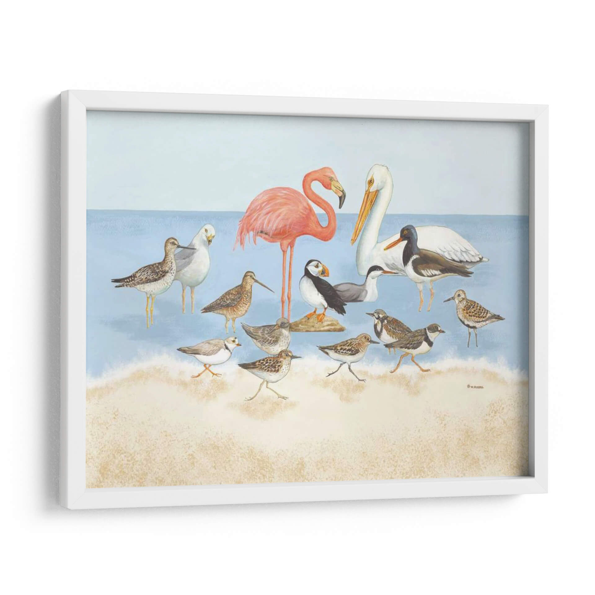 Captura la esencia de la costa con nuestro cuadro decorativo "Summit Seebird", una obra encantadora de Wendy Russell. Esta pieza vibrante presenta una colección ecléctica de aves marinas posadas en una serena playa, con el océano azul claro de fondo. Destaca un flamenco rosado en el centro, flanqueado por pelícanos, frailecillos y una variedad de aves playeras en posturas dinámicas. La paleta de colores, dominada por azules celestes, arenas cálidas y los vivos tonos rosados y blancos de las aves, crea una atmósfera pacífica y alegre. El estilo realista y detallado de Russell da vida a cada pluma y textura, invitando al espectador a una contemplación tranquila de la naturaleza. Este cuadro decorativo es ideal para añadir un toque de encanto costero y vitalidad a cualquier sala de estar, dormitorio o estudio. Su composición equilibrada y el tema universal de la vida silvestre marina lo convierten en una adición versátil y atractiva para tu decoración de interiores, evocando la brisa marina y la serenidad del océano.