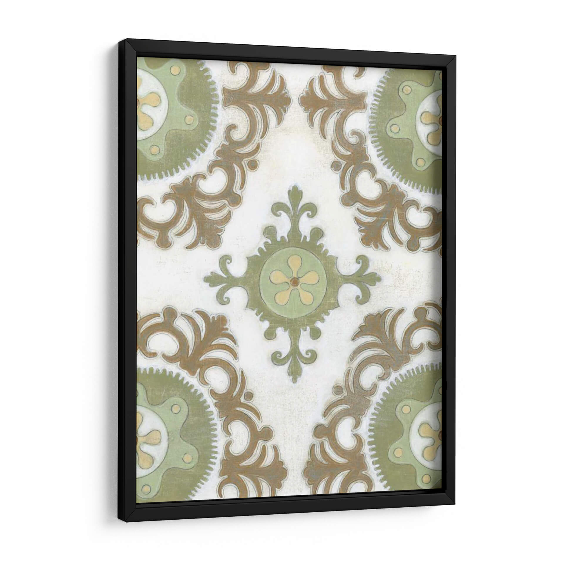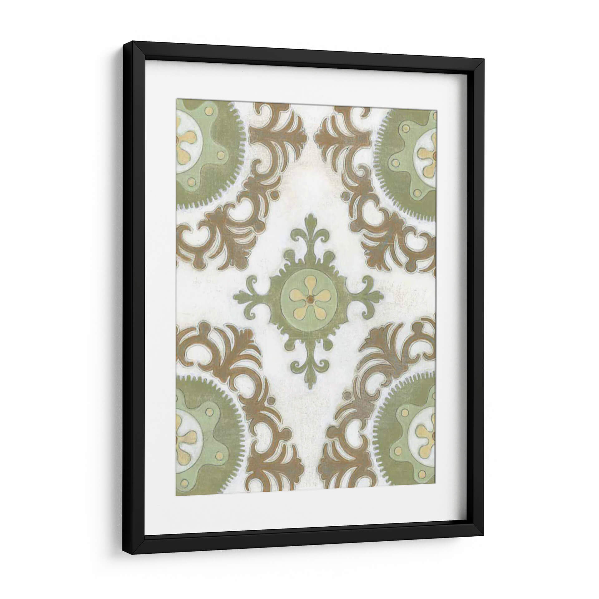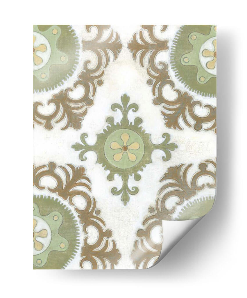 Transforma tu espacio con la obra "Tierra Suzani I", una pieza que evoca la rica herencia textil de Asia Central a través de un diseño contemporáneo. Este cuadro decorativo presenta un patrón intrincado de medallones y volutas en tonos tierra, verde salvia y toques de amarillo pálido, todo sobre un fondo texturizado que simula un lienzo antiguo. La composición simétrica y los detalles delicados invitan a la contemplación, aportando una sensación de calma y sofisticación a cualquier habitación. Su estilo, que fusiona lo tradicional con una sensibilidad moderna, lo convierte en una adición versátil para una variedad de decoraciones, desde la bohemia hasta la ecléctica o la contemporánea. Imagina este cuadro aportando un toque de elegancia terrenal a tu sala de estar, un acento de serenidad a tu dormitorio o un punto de interés cultural a tu estudio. "Tierra Suzani I" no es solo una obra de arte, es una ventana a la artesanía ancestral reinterpretada para el hogar moderno, una pieza que promete añadir profundidad, textura y una atmósfera de tranquilidad a tu vida diaria. Es ideal para quienes buscan una decoración con carácter y una conexión con la historia y la cultura.