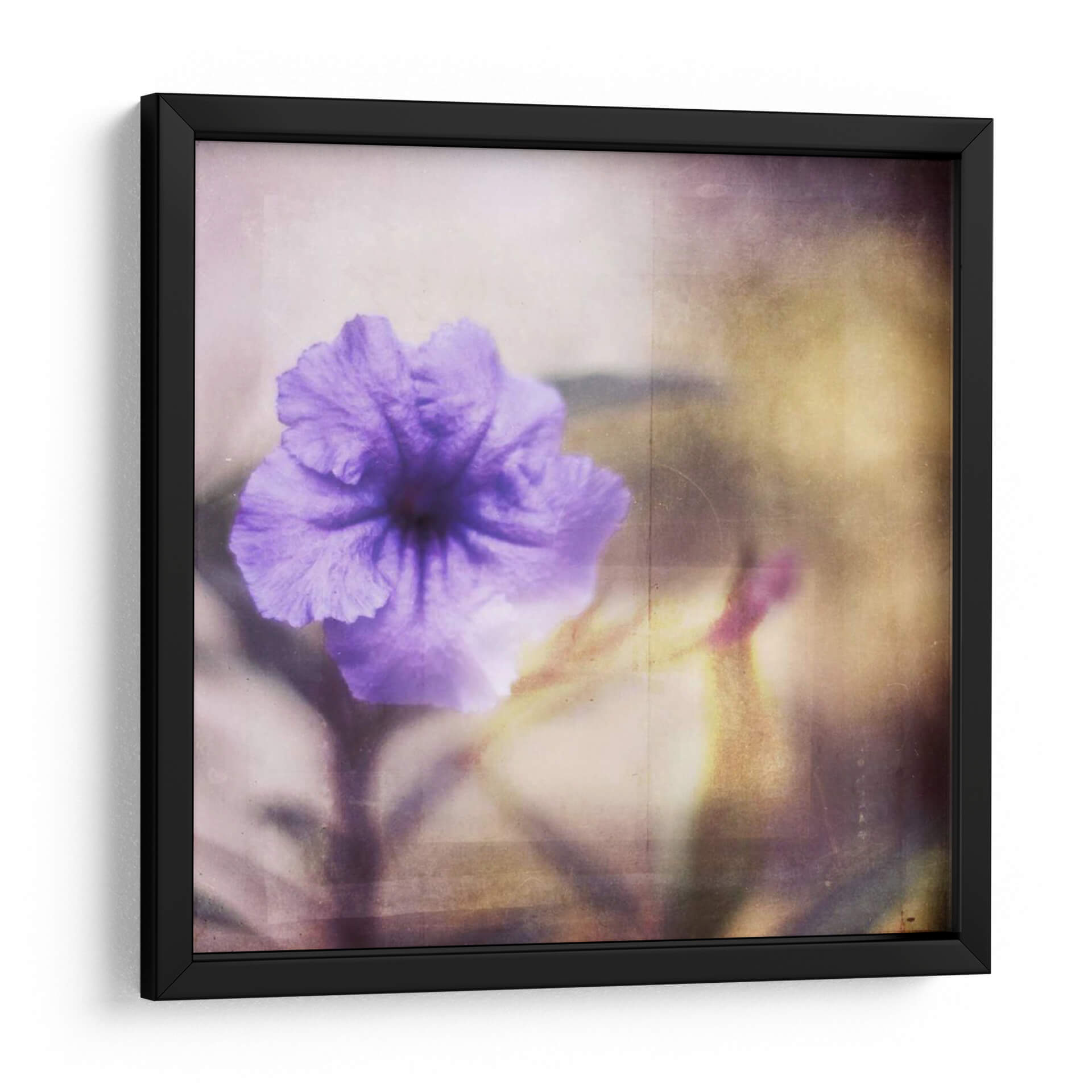 Sumérgete en la serenidad de "Tranquilidad Púrpura I", una obra de arte contemporáneo que captura la delicada belleza de una flor en plena floración. Emily Robinson nos regala una composición que irradia calma y delicadeza a través de su paleta de colores suaves y etéreos, dominada por profundos tonos púrpuras que se funden con sutiles toques de dorado y sepia. El estilo, que evoca una sensación de ensueño y melancolía, utiliza un enfoque desenfocado y texturizado que añade profundidad y misterio a la imagen. Cada pétalo de la flor púrpura parece vibrar con una luz interior, invitando a la contemplación y a la introspección. Este cuadro decorativo es perfecto para crear un oasis de paz en tu hogar, ya sea en un dormitorio, un estudio o un rincón de meditación. Su atmósfera sosegada y su estética refinada lo convierten en una pieza versátil que aportará elegancia y un toque de naturaleza a cualquier espacio moderno o clásico. Transforma tu ambiente con la calma envolvente de esta pieza floral, un recordatorio visual de la belleza efímera y serena de la naturaleza, ideal para quienes buscan añadir un punto de serenidad y sofisticación a su decoración.