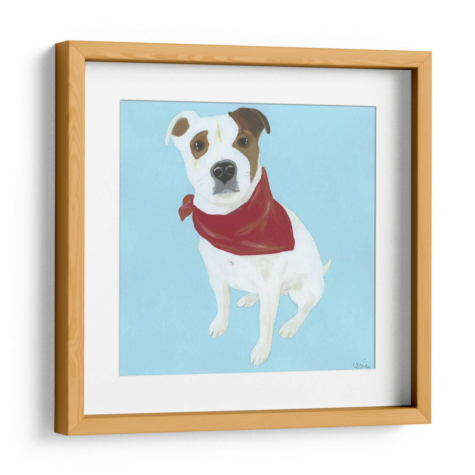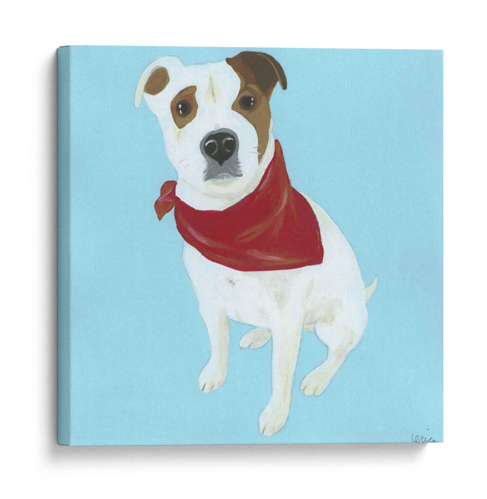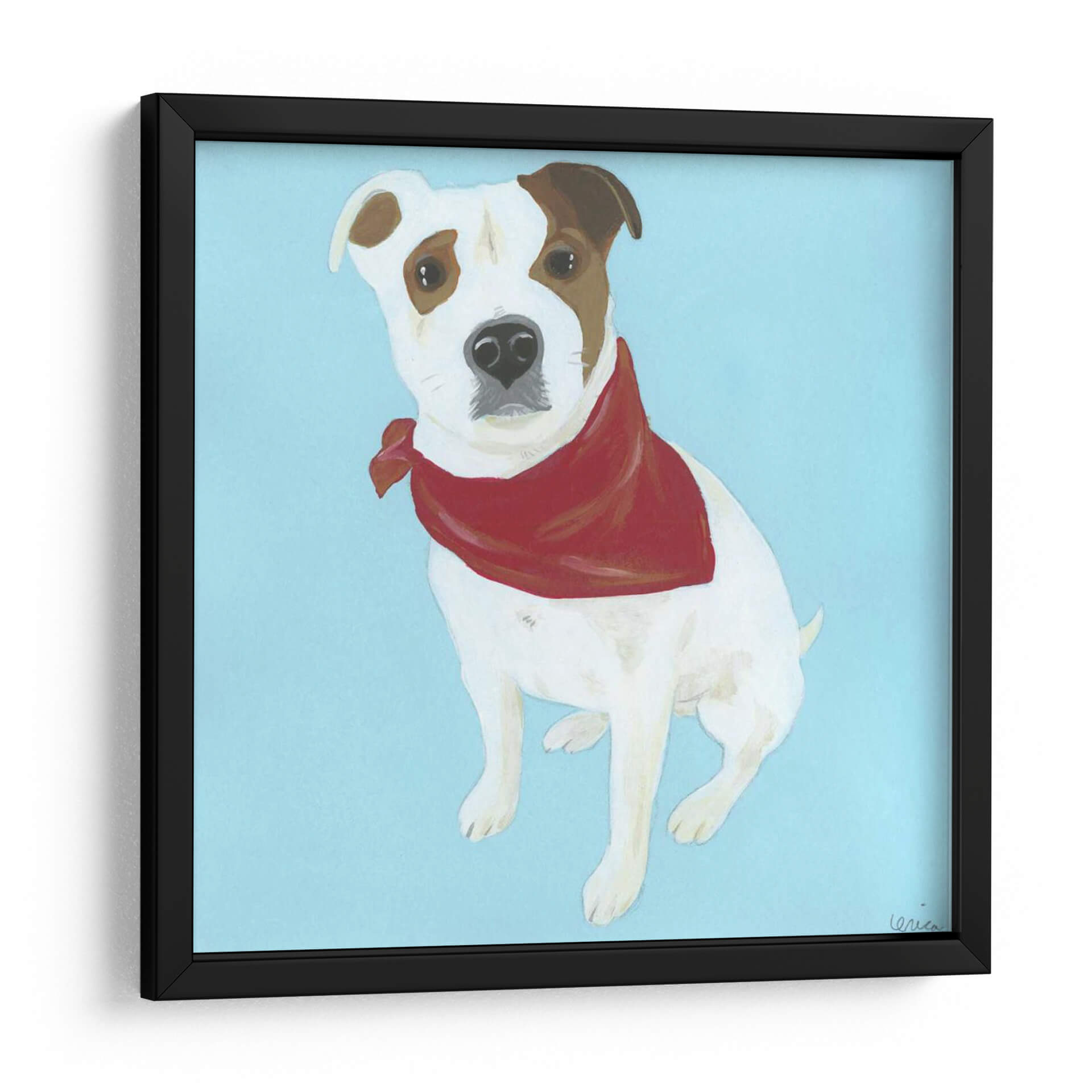 Captura la esencia juguetona y encantadora de "Zeke", una obra de arte que celebra la lealtad y el espíritu vivaz de nuestros compañeros caninos. Este cuadro decorativo presenta a un perro de raza mixta, con su característico pelaje blanco y manchas marrones, adornado con un vibrante pañuelo rojo alrededor del cuello. La simplicidad de la composición, con el perro sentado sobre un fondo azul claro, resalta la expresividad de su mirada y la ternura de su pose. La paleta de colores, dominada por el azul sereno y el rojo audaz, crea un contraste llamativo que aporta energía y calidez a cualquier espacio. El estilo pictórico, con pinceladas visibles que añaden textura y carácter, confiere a la obra un aire contemporáneo y accesible. "Zeke" es ideal para amantes de los animales, o para quienes buscan añadir un toque de alegría y personalidad a la decoración de su hogar u oficina. Este cuadro decorativo es perfecto para crear un punto focal acogedor en salas de estar, dormitorios o incluso espacios de trabajo, transmitiendo una sensación de compañía y felicidad.