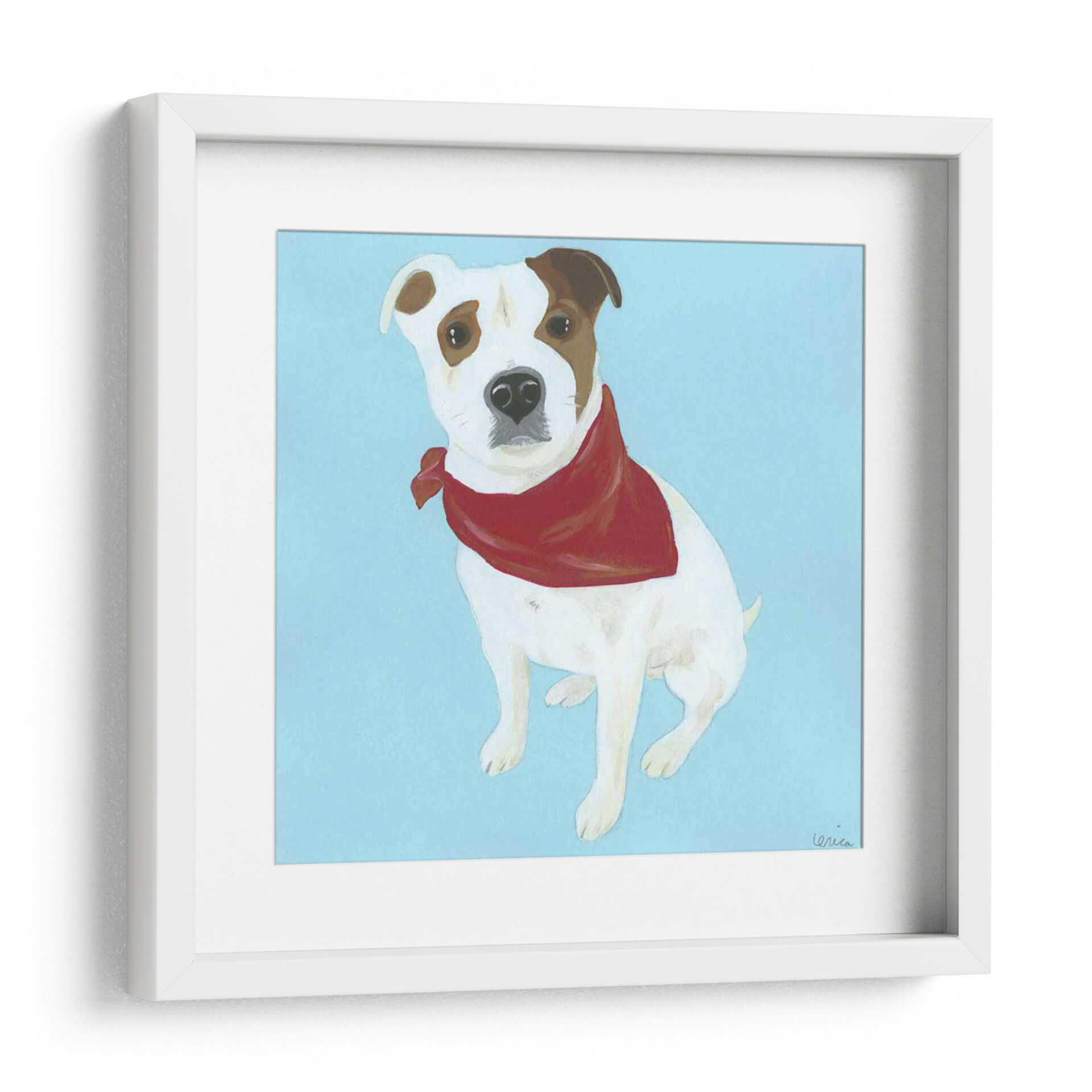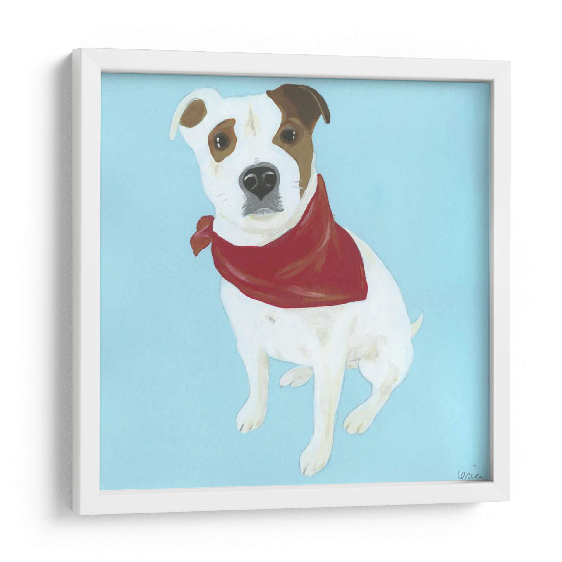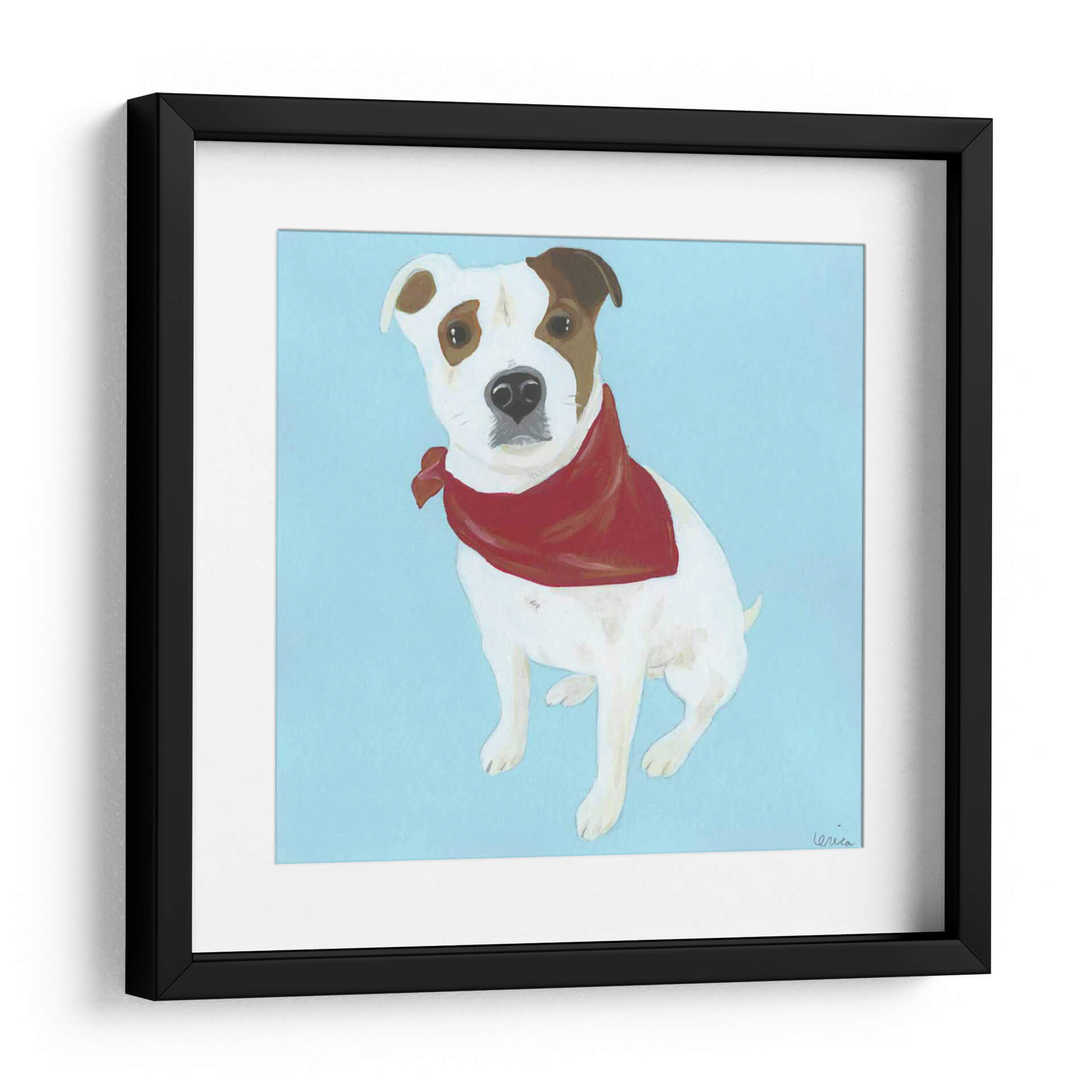 Captura la esencia juguetona y encantadora de "Zeke", una obra de arte que celebra la lealtad y el espíritu vivaz de nuestros compañeros caninos. Este cuadro decorativo presenta a un perro de raza mixta, con su característico pelaje blanco y manchas marrones, adornado con un vibrante pañuelo rojo alrededor del cuello. La simplicidad de la composición, con el perro sentado sobre un fondo azul claro, resalta la expresividad de su mirada y la ternura de su pose. La paleta de colores, dominada por el azul sereno y el rojo audaz, crea un contraste llamativo que aporta energía y calidez a cualquier espacio. El estilo pictórico, con pinceladas visibles que añaden textura y carácter, confiere a la obra un aire contemporáneo y accesible. "Zeke" es ideal para amantes de los animales, o para quienes buscan añadir un toque de alegría y personalidad a la decoración de su hogar u oficina. Este cuadro decorativo es perfecto para crear un punto focal acogedor en salas de estar, dormitorios o incluso espacios de trabajo, transmitiendo una sensación de compañía y felicidad.