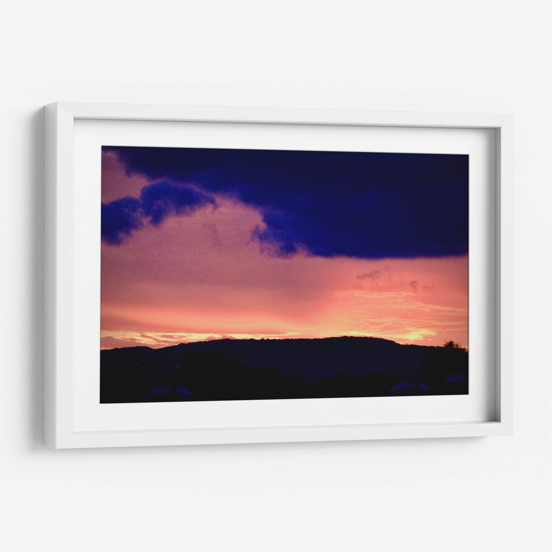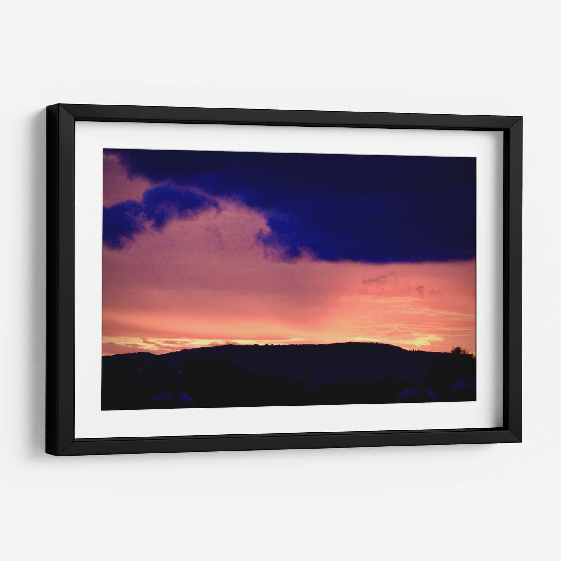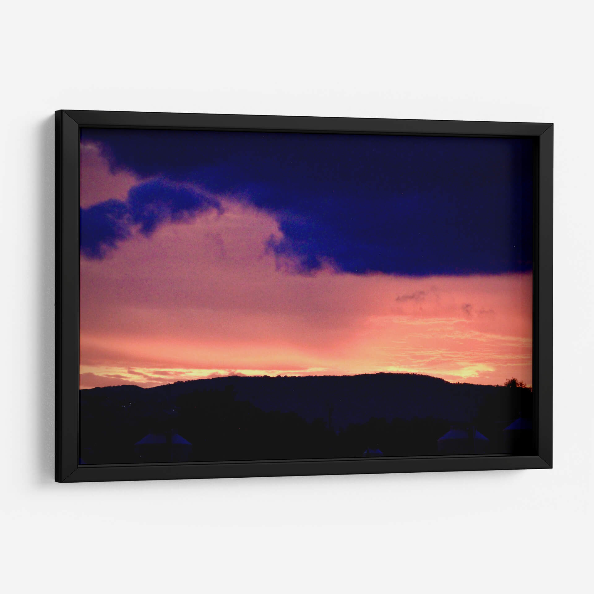Sumérgete en la cautivadora escena de 'Frontera de Luz y Sombra', una obra de arte que captura la dramática transición entre el día y la noche. El lienzo se despliega ante tus ojos con un cielo vibrante, teñido de intensos tonos anaranjados y rosados que se funden con el profundo azul cobalto de las nubes oscuras. Este contraste evoca una sensación de misterio y serenidad, invitando a la contemplación. Las siluetas oscuras de las montañas y la vegetación en primer plano añaden profundidad y un toque terrenal a la composición etérea del cielo, creando una atmósfera de paz y reflexión. Este cuadro decorativo es perfecto para añadir un punto focal enigmático a tu sala de estar, un toque de calma a tu dormitorio o una inspiración visual en tu oficina. La obra de ECO es una invitación a experimentar la belleza efímera de los momentos de cambio, perfecta para quienes buscan un arte que hable al alma y transforme cualquier espacio en un santuario de tranquilidad y belleza.