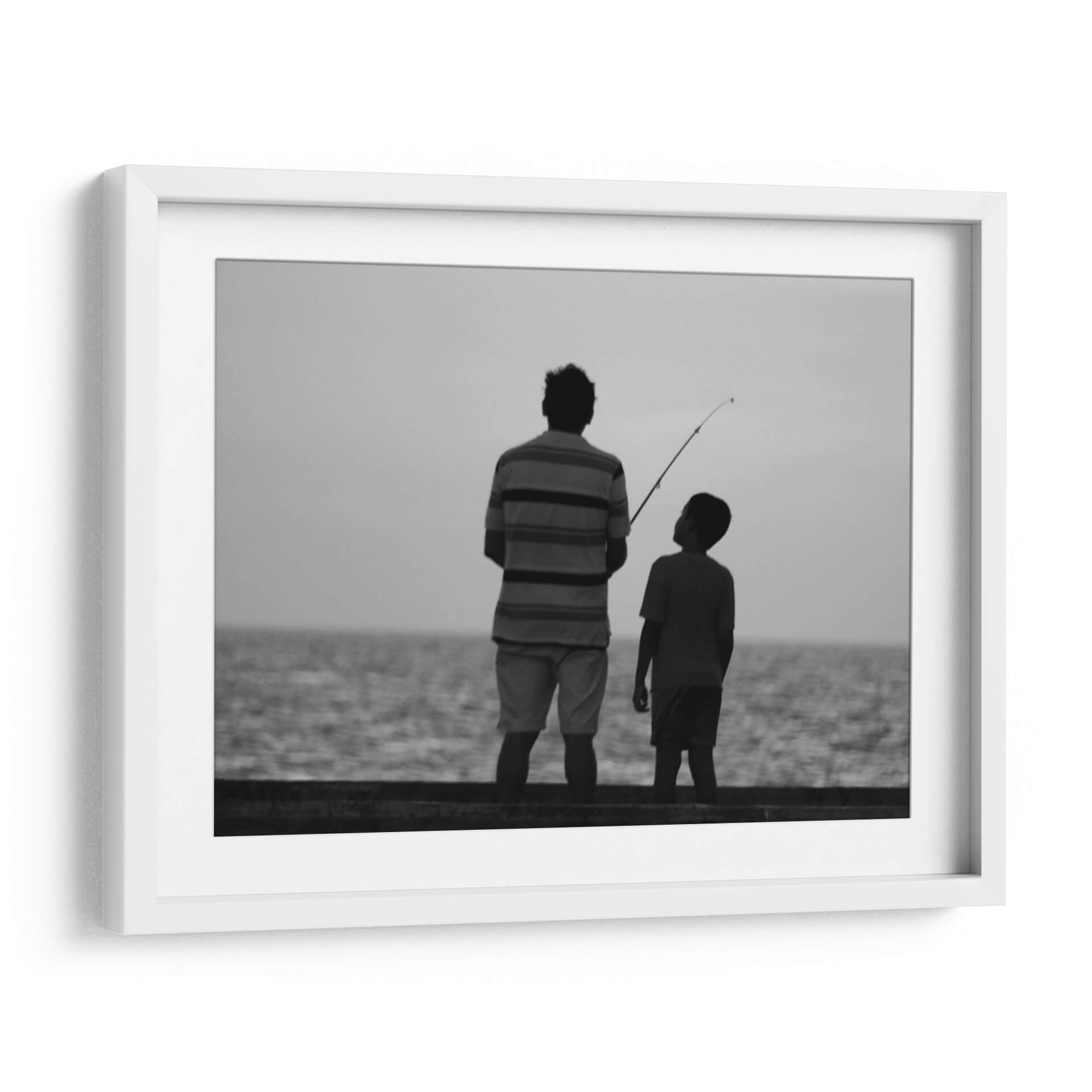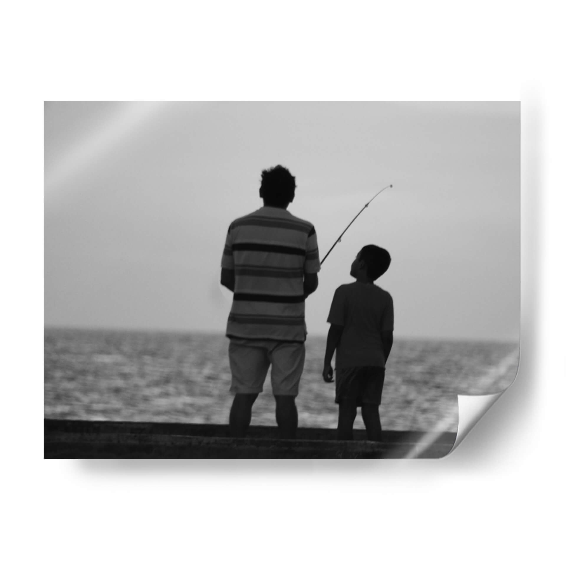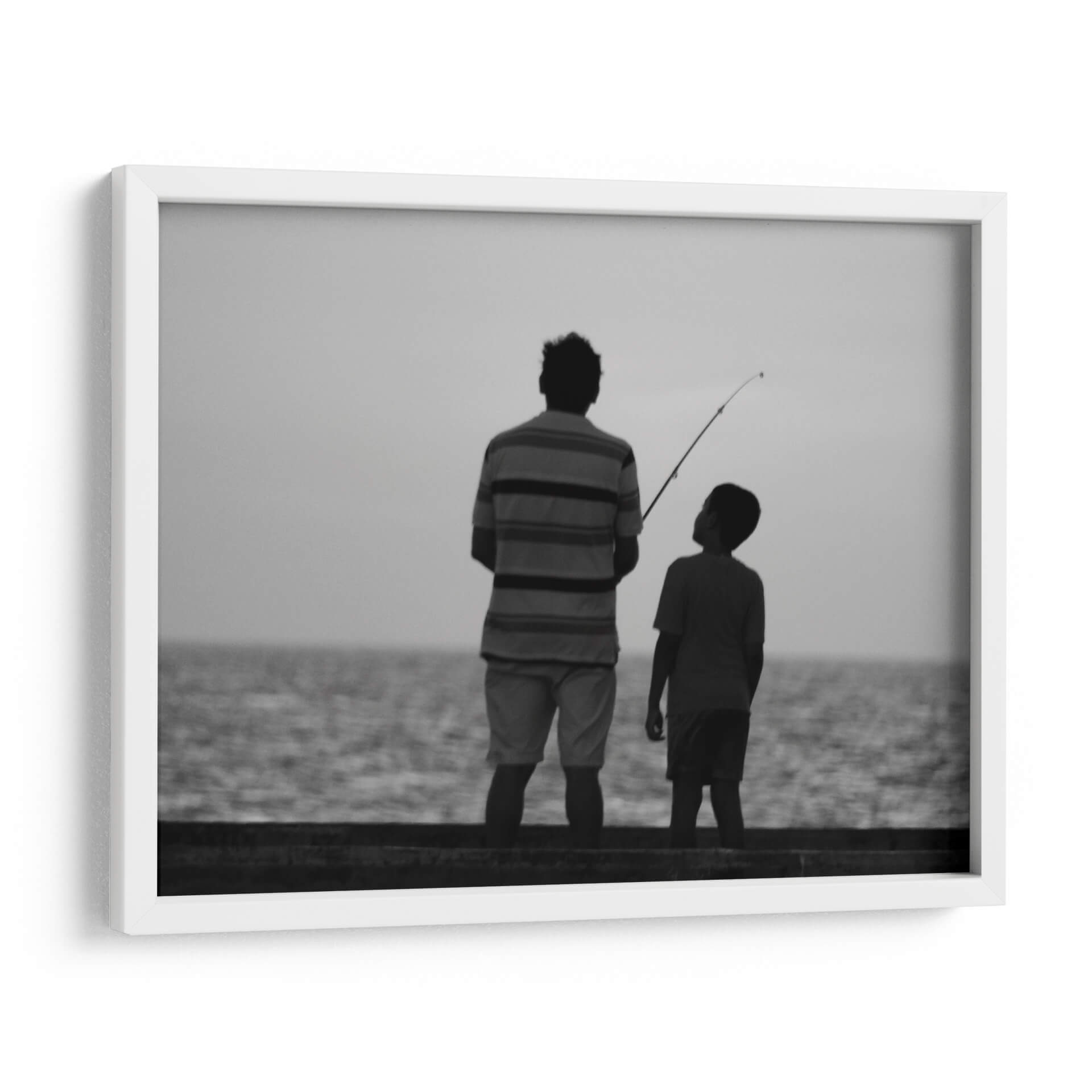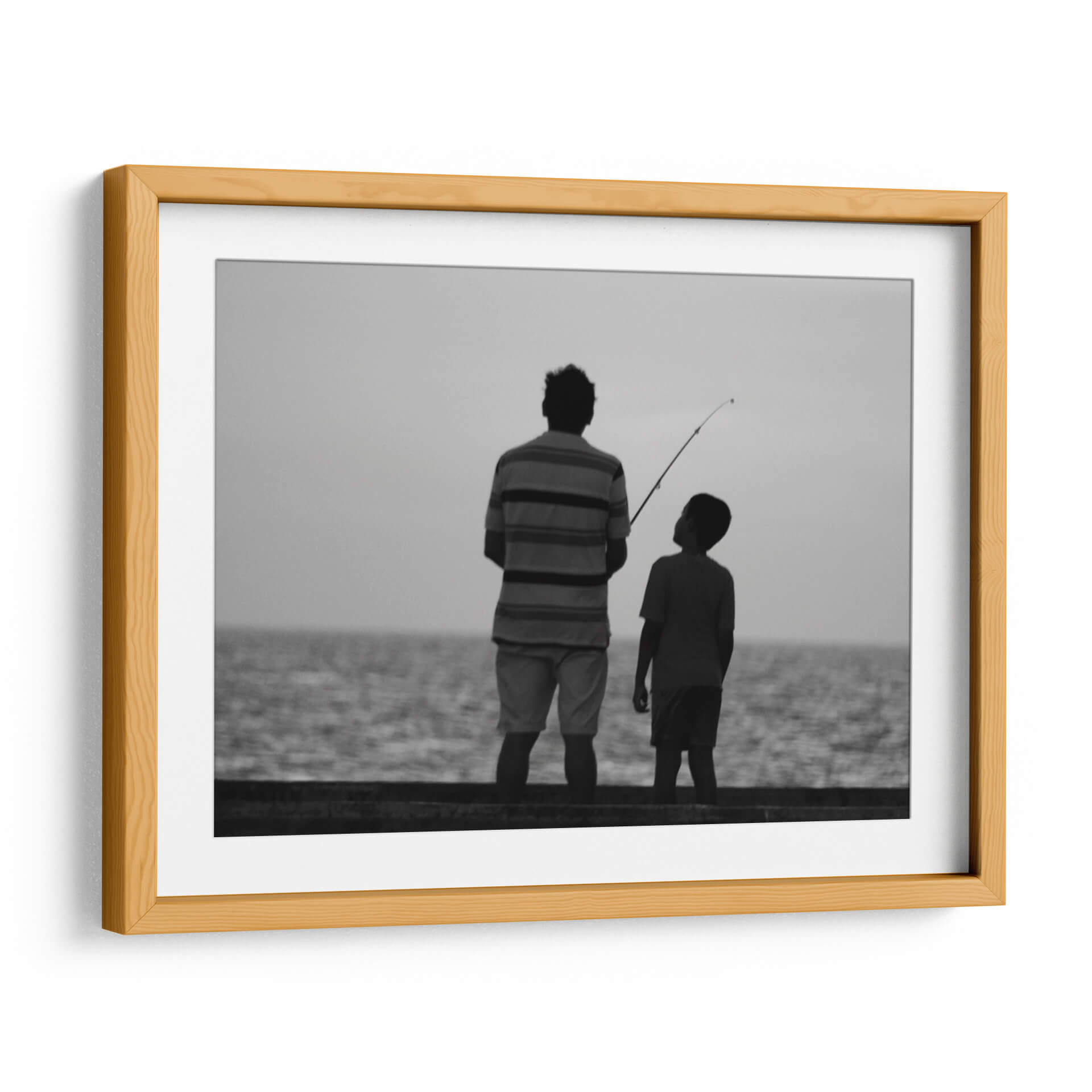 Sumérgete en la ternura y la nostalgia con "Días de miel", una conmovedora obra de arte de Hugo Segura que captura un momento íntimo entre un padre y su hijo. Esta pieza, presentada en una estética monocromática que evoca una atmósfera atemporal y serena, muestra a dos figuras de espaldas, contemplando el horizonte marino mientras pescan. La delicada representación de la silueta del padre, con su camiseta a rayas, y la curiosidad reflejada en la mirada del niño hacia la caña de pescar, transmiten una profunda sensación de conexión intergeneracional y la belleza de los instantes sencillos. El uso de grises sutiles y el contraste entre las figuras y el vasto mar y cielo crean una composición equilibrada que invita a la reflexión y a la contemplación. "Días de miel" es ideal para añadir un toque de calidez, paz y significado a cualquier espacio, ya sea un salón acogedor, un dormitorio tranquilo o un estudio personal. Este cuadro decorativo es perfecto para quienes buscan una pieza que hable de recuerdos, familia y la tranquilidad de los momentos compartidos, transformando tu hogar en un refugio de emociones positivas. Descubre la obra de Hugo Segura y deja que "Días de miel" inspire tus días.