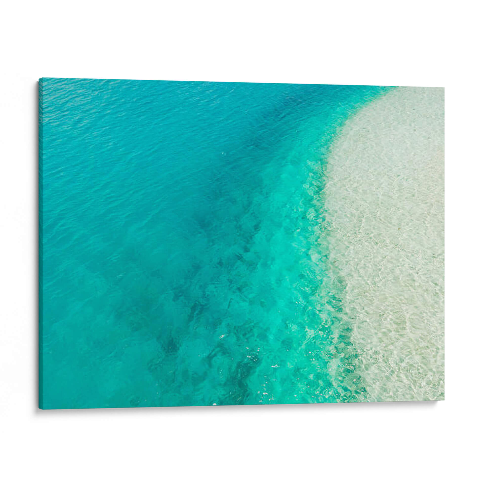 Sumérgete en la serenidad y la belleza efímera de "Dulce y Bajo", una obra de arte que captura la esencia cristalina de las aguas tropicales. Este cuadro decorativo, creado por Cariteshop, te transporta directamente a la orilla de un paraíso idílico, donde el mar turquesa se encuentra con la arena blanca y translúcida. La composición se centra en la transición suave entre las profundidades acuáticas y la claridad superficial, creando un efecto visual hipnotizante que evoca paz y tranquilidad. La paleta de colores, dominada por vibrantes tonos de azul y verde agua, junto con los destellos de luz que atraviesan el agua, infunde una sensación de frescura y vitalidad en cualquier espacio. Ideal para dormitorios, baños o salones que buscan un oasis de calma, esta pieza abstracta inspirada en la naturaleza es una invitación a la relajación y al disfrute de los momentos más simples. Su diseño minimalista pero impactante la convierte en un punto focal perfecto para una decoración costera, moderna o escandinava, añadiendo un toque de naturaleza y elegancia a tu hogar u oficina. Transforma tu ambiente con la pureza y el encanto de "Dulce y Bajo", un recordatorio constante de la belleza que nos rodea.