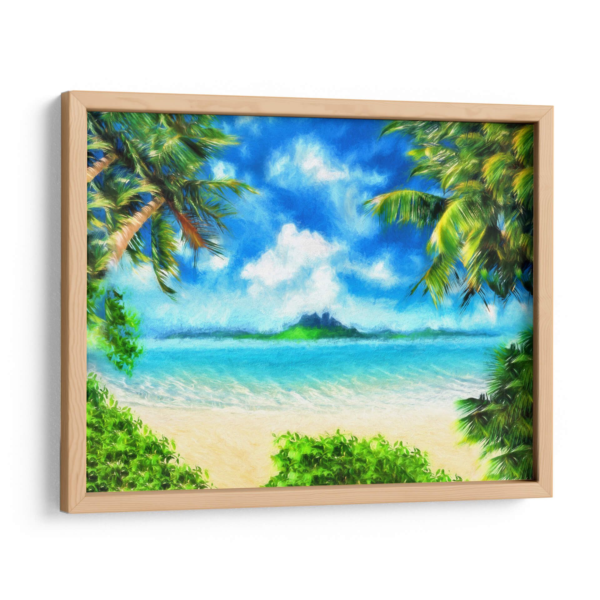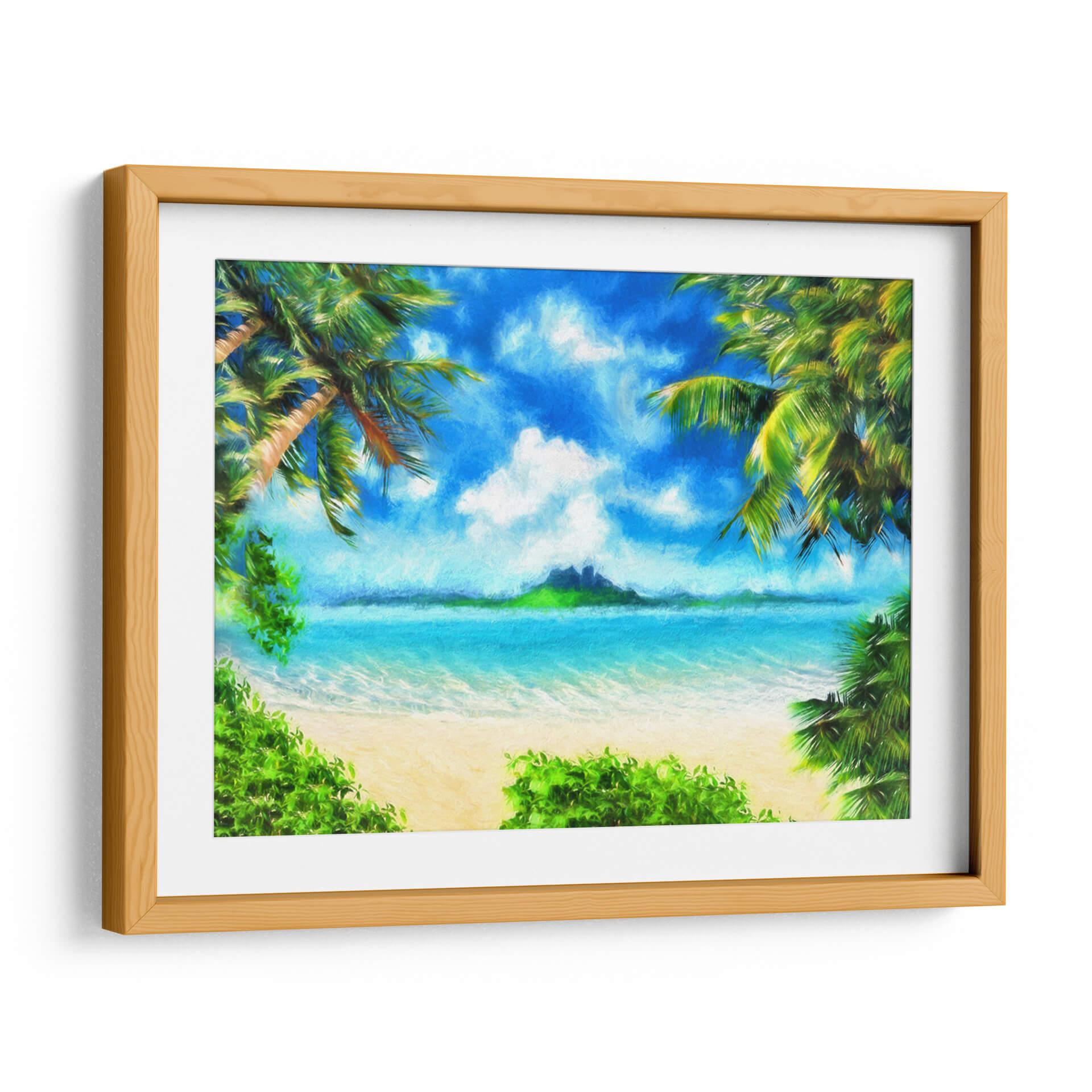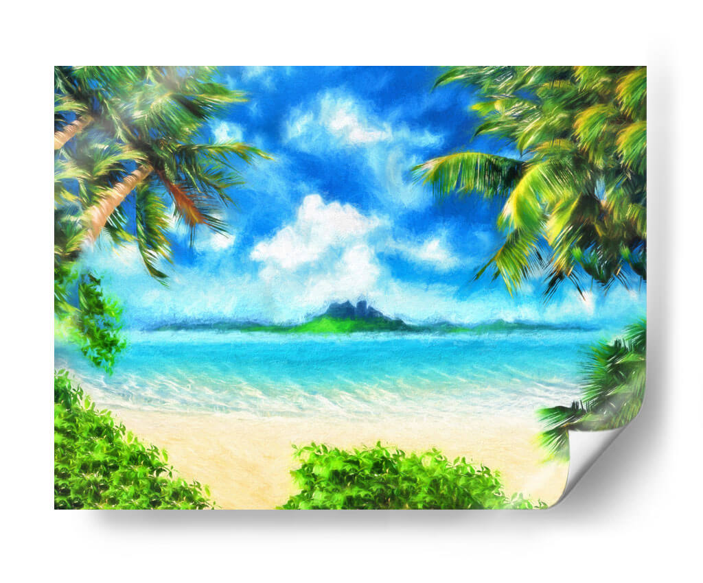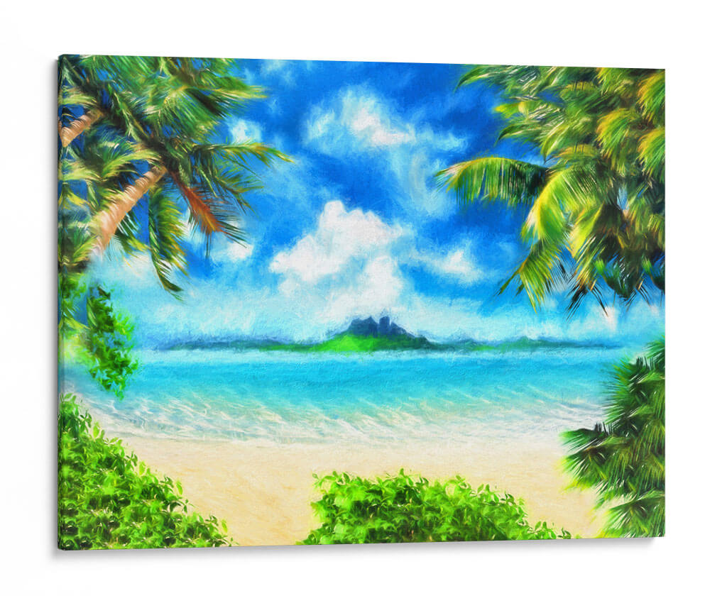 Sumérgete en la serenidad de 'El Mar 2', una obra de Marcos Rodríguez que captura la esencia de un paraíso tropical. Este cuadro decorativo te transporta a playas de arena dorada bañadas por aguas cristalinas de tonalidades turquesa y azul profundo. Las exuberantes palmeras se mecen suavemente en un cielo despejado, salpicado de nubes blancas y esponjosas que añaden profundidad y realismo a la escena. La composición, con un enfoque en la perspectiva de la playa y la lejanía de una isla montañosa, evoca una sensación de paz y escape. Los colores vibrantes y la pincelada suelta, con reminiscencias del impresionismo, dan vida a este paisaje marino, creando una atmósfera de tranquilidad y vacación perpetua. Es la pieza ideal para añadir un toque de frescura y relajación a tu sala de estar, dormitorio u oficina, invitando a la calma y al disfrute de la belleza natural en tu hogar. 'El Mar 2' no es solo una decoración, es una ventana a un mundo de ensueño.