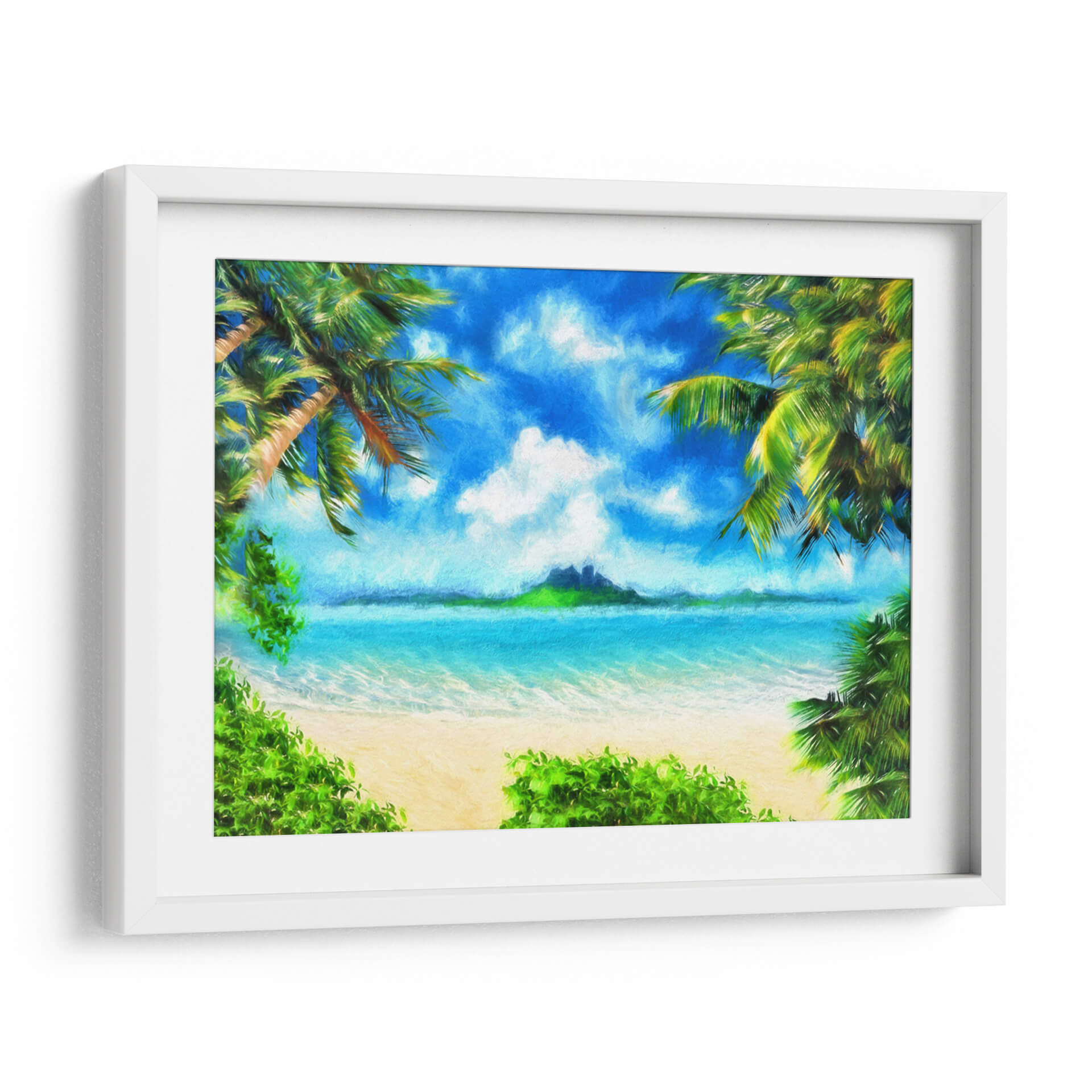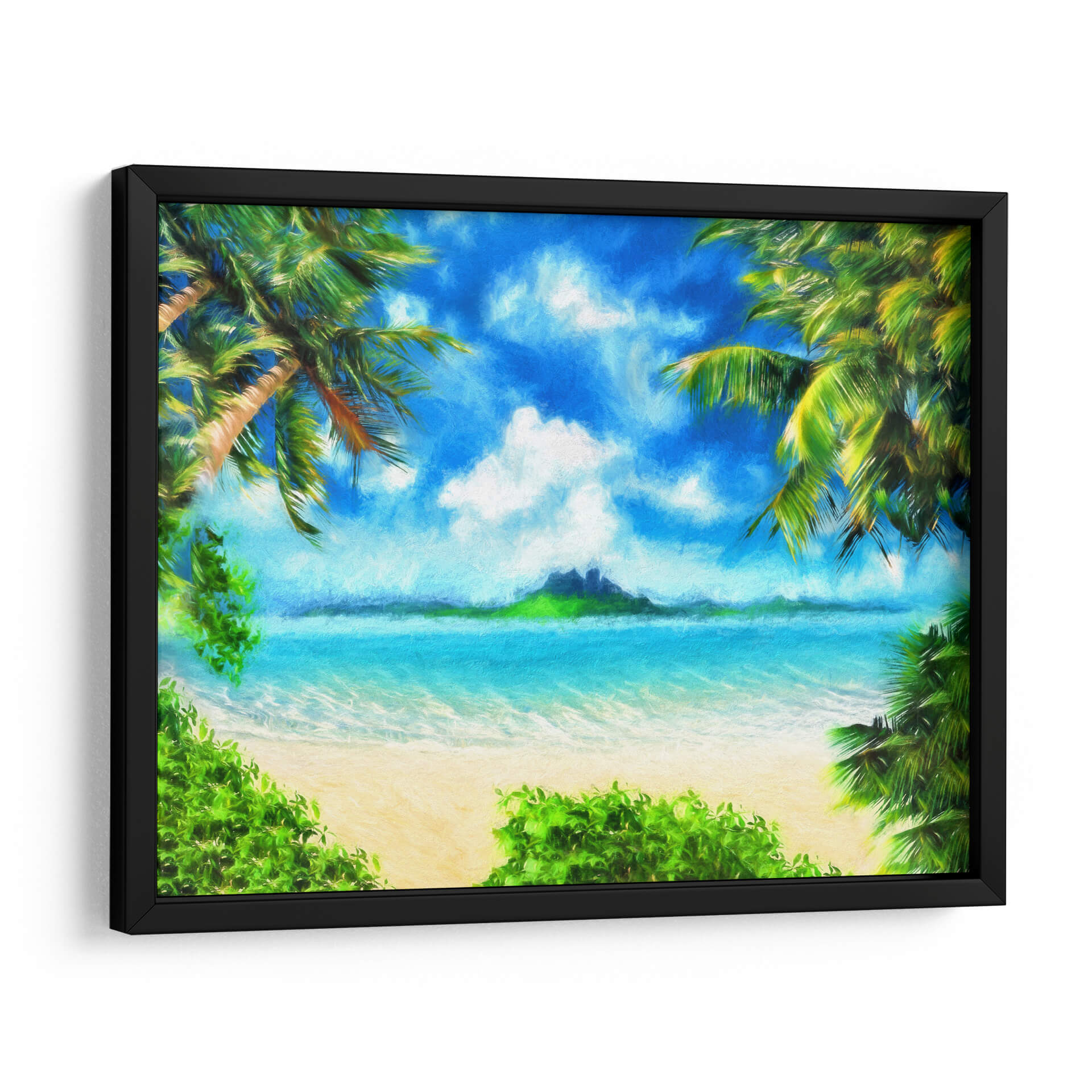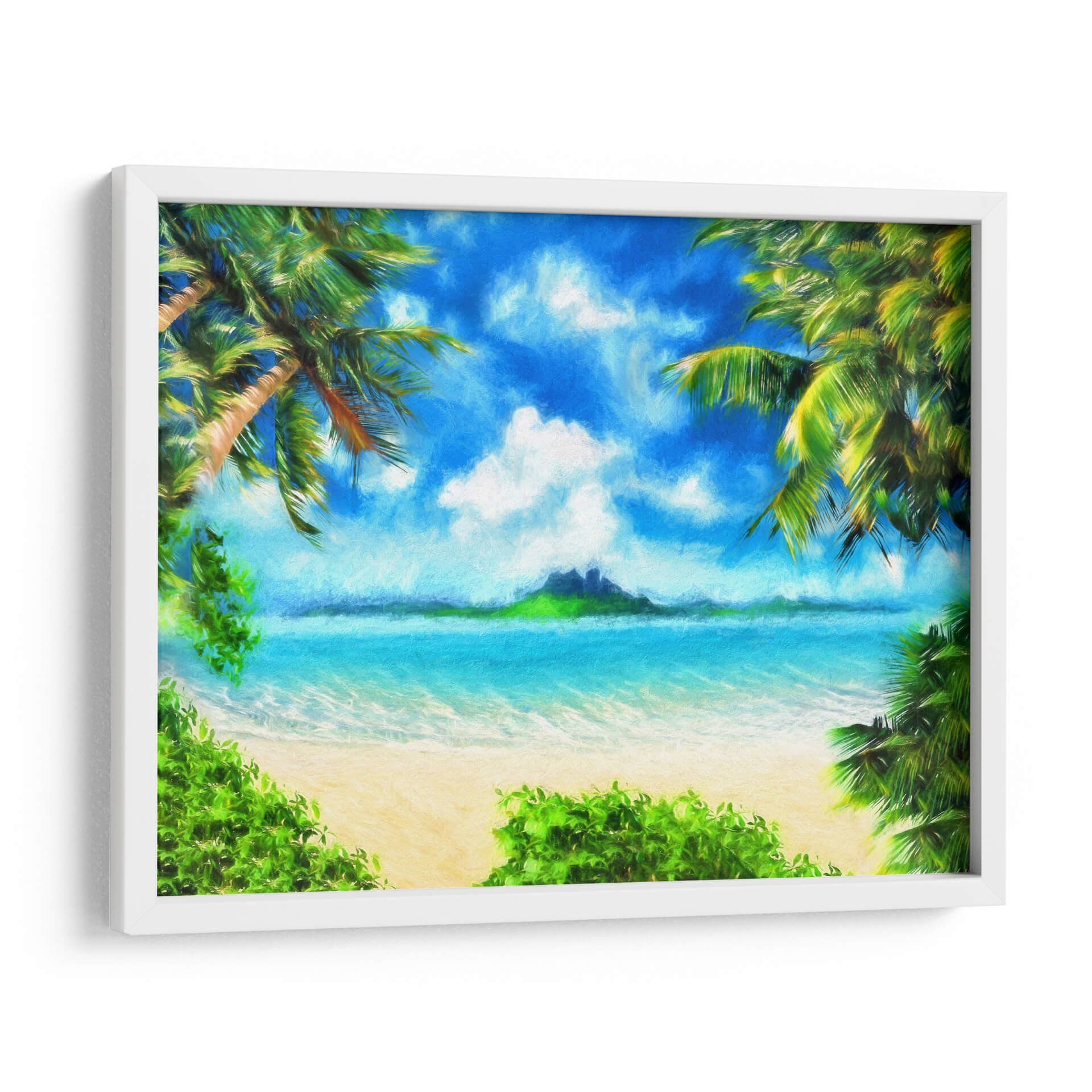 Sumérgete en la serenidad de 'El Mar 2', una obra de Marcos Rodríguez que captura la esencia de un paraíso tropical. Este cuadro decorativo te transporta a playas de arena dorada bañadas por aguas cristalinas de tonalidades turquesa y azul profundo. Las exuberantes palmeras se mecen suavemente en un cielo despejado, salpicado de nubes blancas y esponjosas que añaden profundidad y realismo a la escena. La composición, con un enfoque en la perspectiva de la playa y la lejanía de una isla montañosa, evoca una sensación de paz y escape. Los colores vibrantes y la pincelada suelta, con reminiscencias del impresionismo, dan vida a este paisaje marino, creando una atmósfera de tranquilidad y vacación perpetua. Es la pieza ideal para añadir un toque de frescura y relajación a tu sala de estar, dormitorio u oficina, invitando a la calma y al disfrute de la belleza natural en tu hogar. 'El Mar 2' no es solo una decoración, es una ventana a un mundo de ensueño.