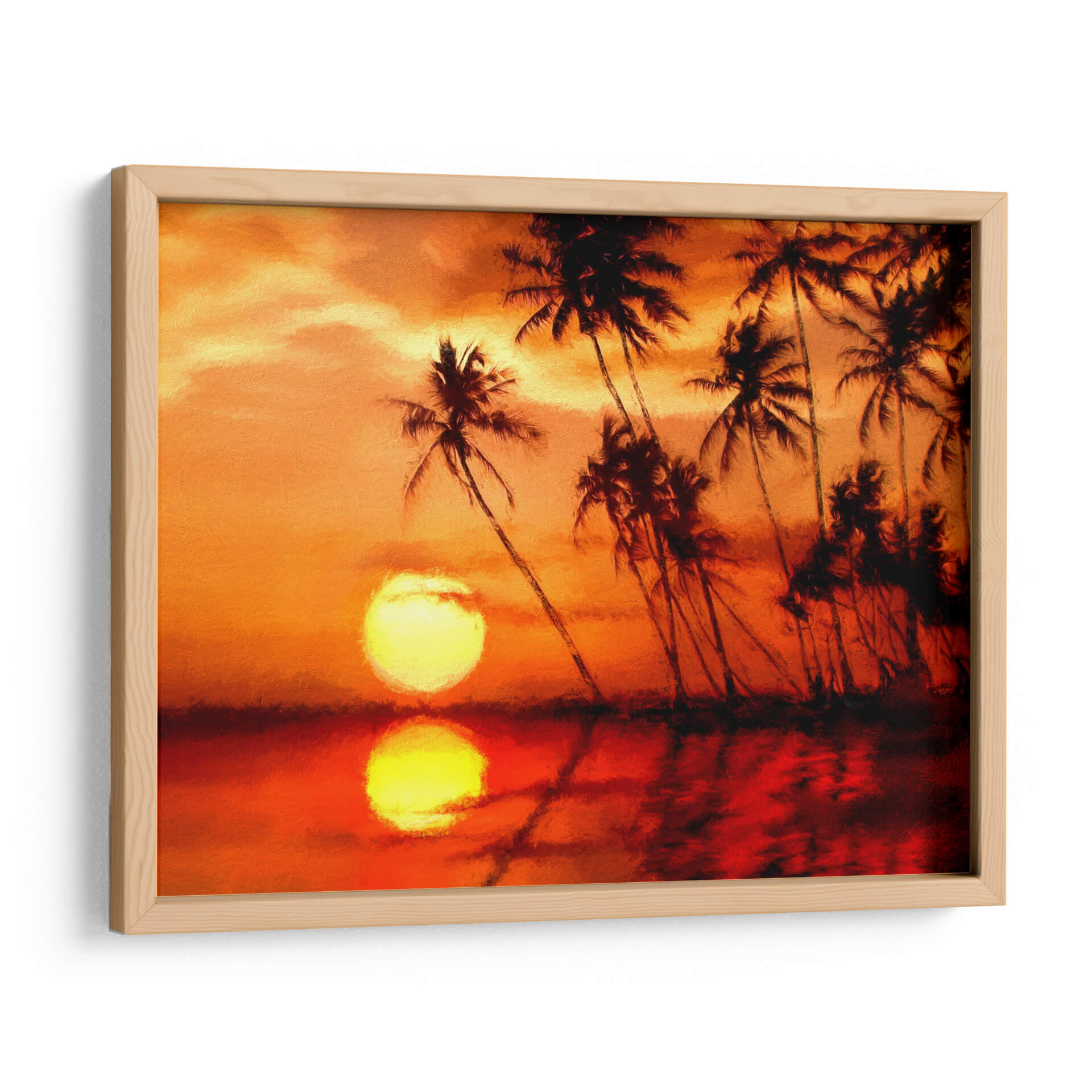 Sumérgete en la calidez y serenidad de "El Mar 7", una obra de arte cautivadora de Marcos Rodríguez. Este cuadro decorativo captura la magia de un atardecer tropical, con palmeras silueteadas contra un cielo ardiente de tonos anaranjados y dorados. El sol, un disco radiante, se refleja en las aguas tranquilas, creando un espectáculo visual de luz y color que evoca una profunda sensación de paz y evasión. La técnica pictórica, con pinceladas que sugieren textura y movimiento, añade una dimensión artística y contemporánea a la escena. Ideal para quienes buscan infundir en sus hogares u oficinas una atmósfera de relajación y belleza natural, este cuadro es perfecto para espacios que necesitan un toque de calidez y un recordatorio de paraísos lejanos. Transforma tu sala, dormitorio o cualquier rincón de tu hogar en un santuario de tranquilidad con esta pieza inspiradora que evoca la esencia del trópico.