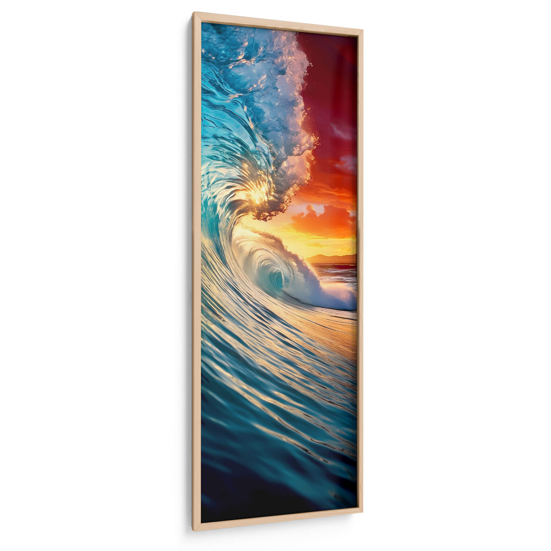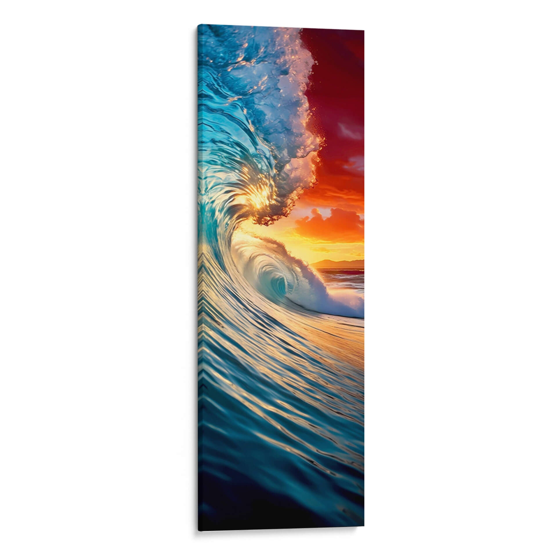Sumérgete en la majestuosidad del océano con "La Ola - 1", una obra de arte impactante que captura la fuerza y la belleza del mar en su máxima expresión. Este cuadro decorativo, creado por DeLaVegaGaming, te transporta a un momento efímero donde el agua cristalina se eleva en una poderosa ola, bañada por la cálida luz de un atardecer vibrante. Los tonos azules profundos del agua contrastan dramáticamente con los rojos y naranjas intensos del cielo, creando una atmósfera de energía y serenidad a la vez. La composición dinámica de la ola, con sus remolinos y espuma detallada, invita a contemplar la inmensidad y el poder de la naturaleza. Ideal para salones modernos, dormitorios o espacios que busquen un toque de inspiración marina y vitalidad. "La Ola - 1" no es solo una pieza decorativa, es una ventana a la indómita fuerza del mar, un recordatorio visual de la belleza en constante movimiento. Añade esta pieza única a tu colección y deja que la energía del océano inunde tu hogar con su poder y su luz.