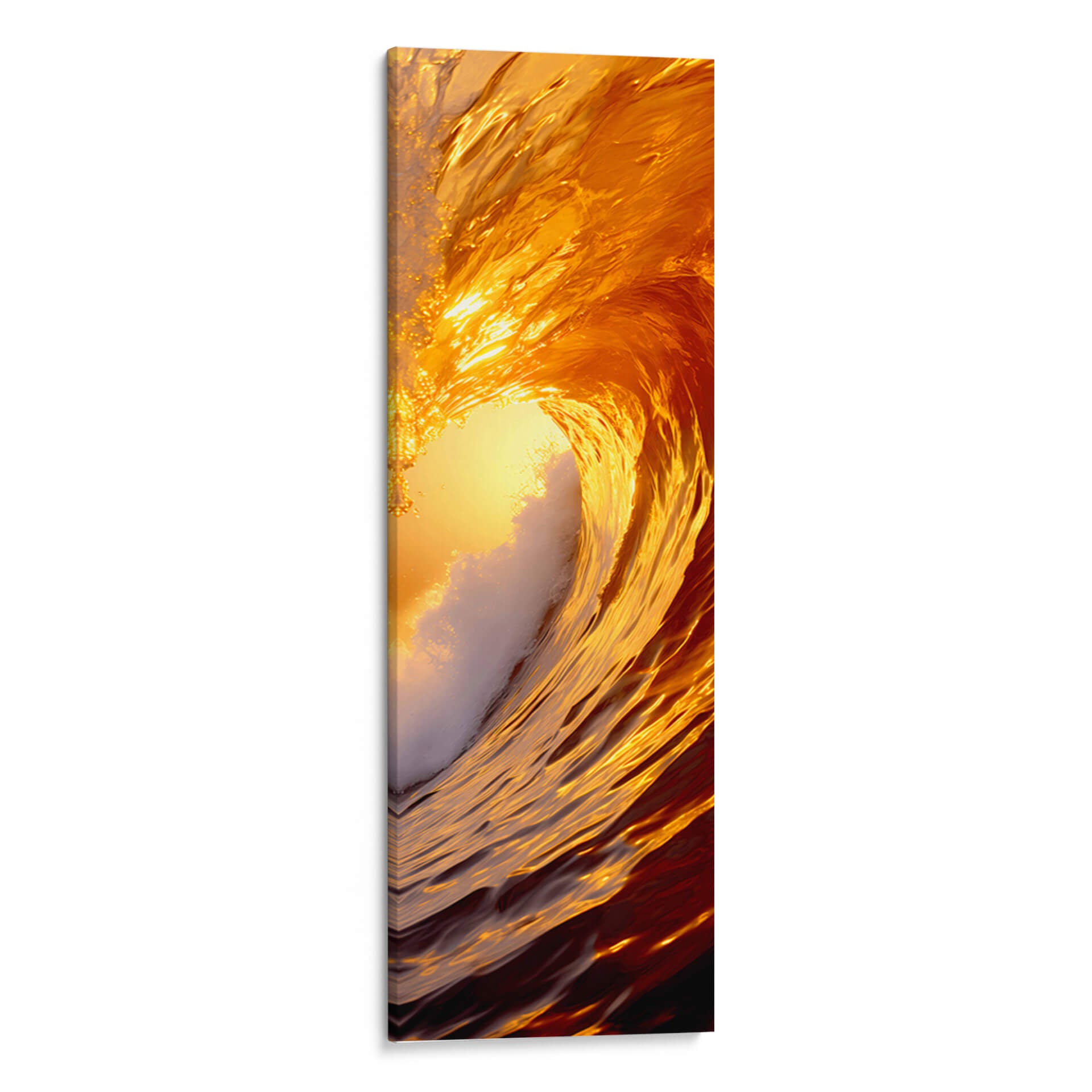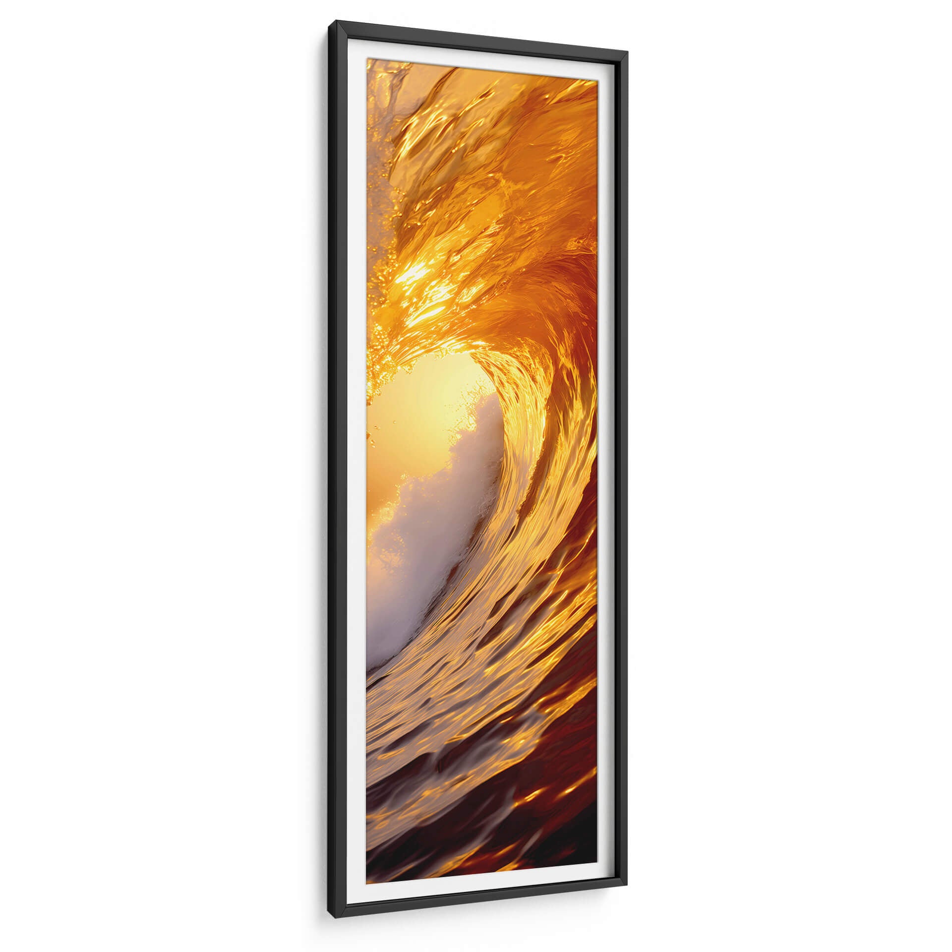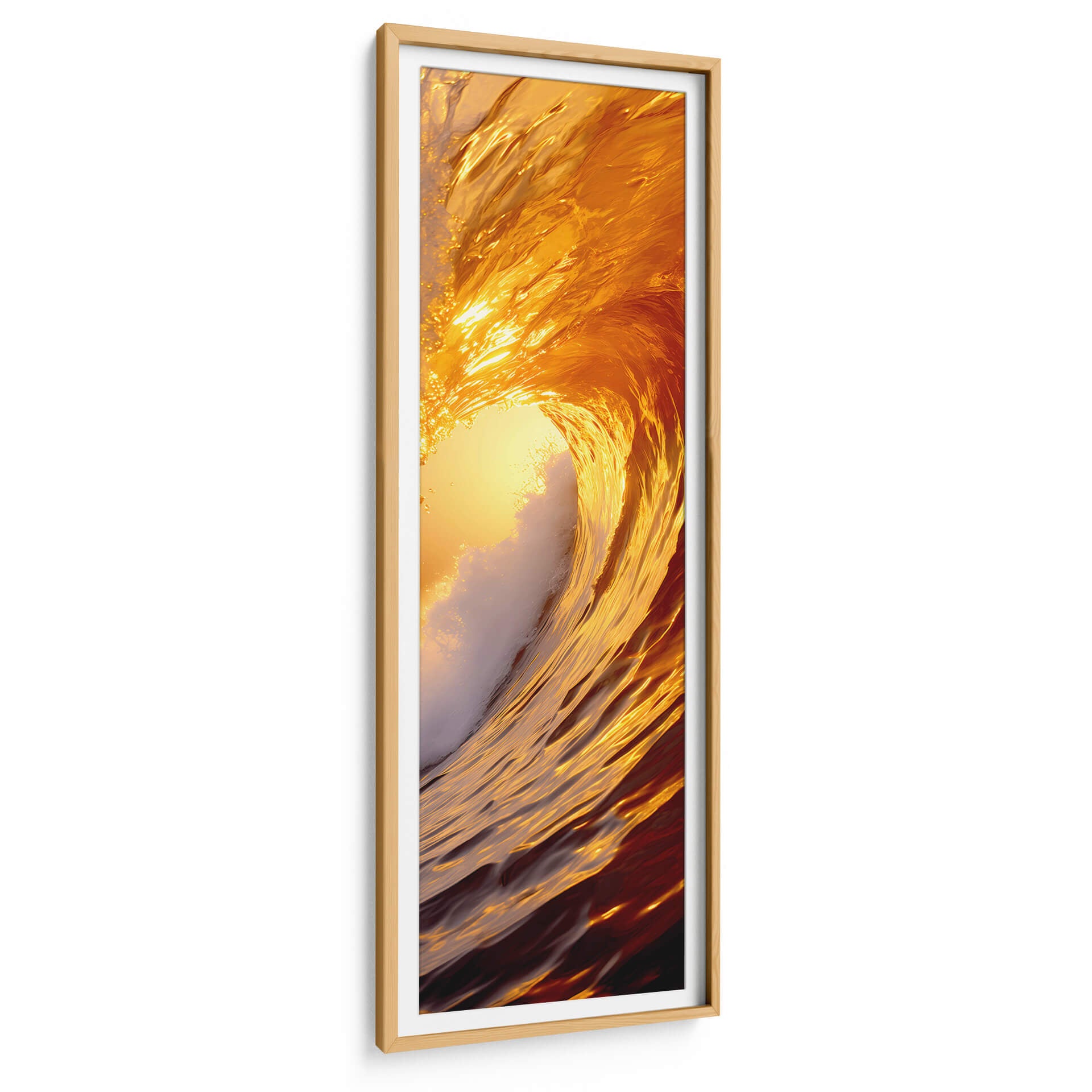 Sumérgete en la fuerza y la belleza del océano con "La Ola - 2", una obra de arte contemporáneo que captura la magnificencia de una ola dorada al amanecer. Este cuadro decorativo, inspirado en la naturaleza y la energía del mar, te transportará a momentos de paz y asombro. Los tonos cálidos y vibrantes del sol filtrándose a través del agua crean un efecto hipnótico, con destellos de luz que juegan sobre las curvas fluidas de la ola. La composición vertical y el enfoque en la textura del agua invitan a la contemplación, evocando una sensación de movimiento y poder sereno. "La Ola - 2" es perfecto para añadir un toque dinámico y sofisticado a cualquier espacio, desde una sala de estar moderna hasta un dormitorio tranquilo o una oficina que busque inspiración. Su estilo abstracto y su paleta de colores dorados y ámbar la convierten en una pieza versátil capaz de realzar la decoración de interiores, aportando calidez y un toque de la majestuosidad marina. Ideal para amantes de la naturaleza y del arte que buscan una pieza que inspire y conecte emocionalmente.