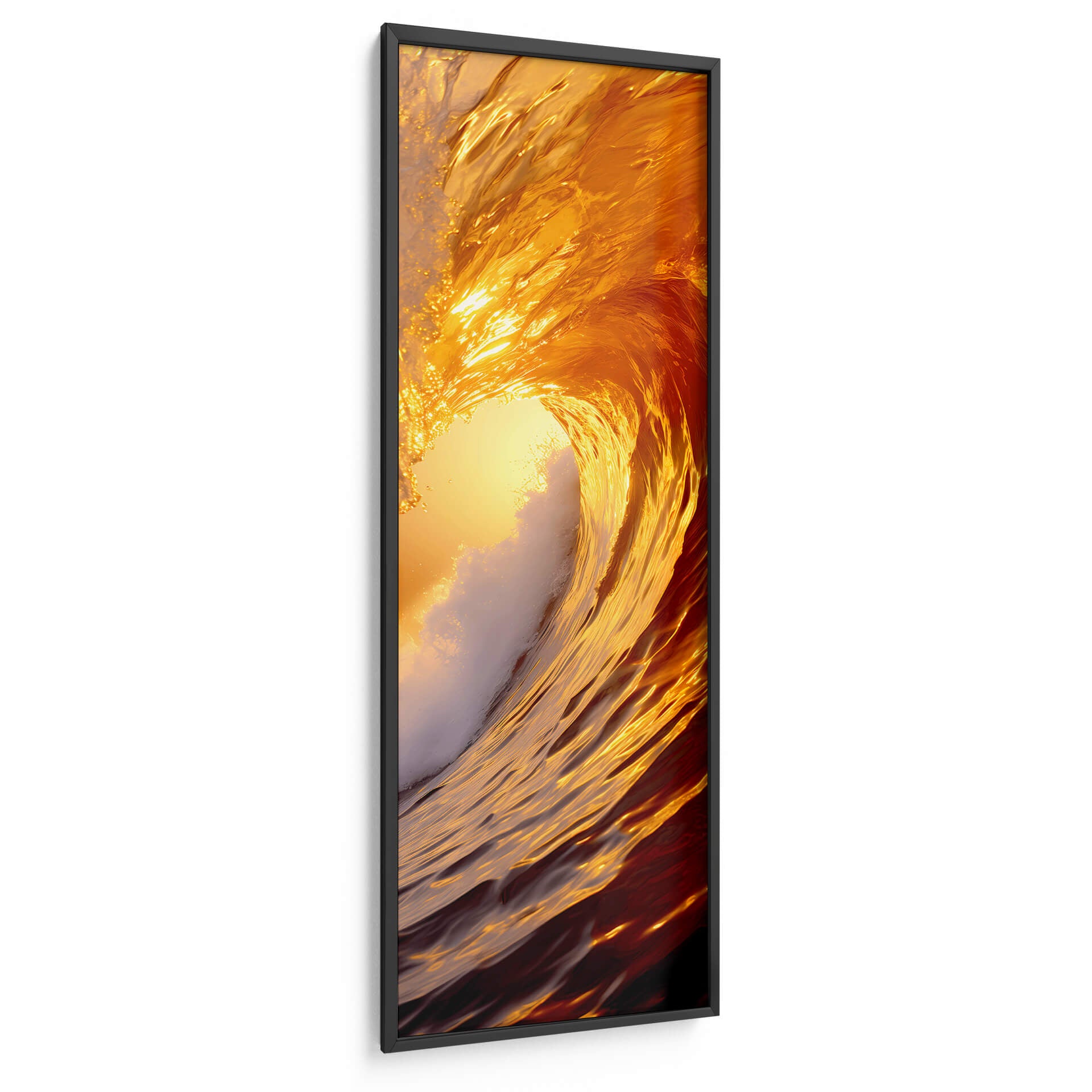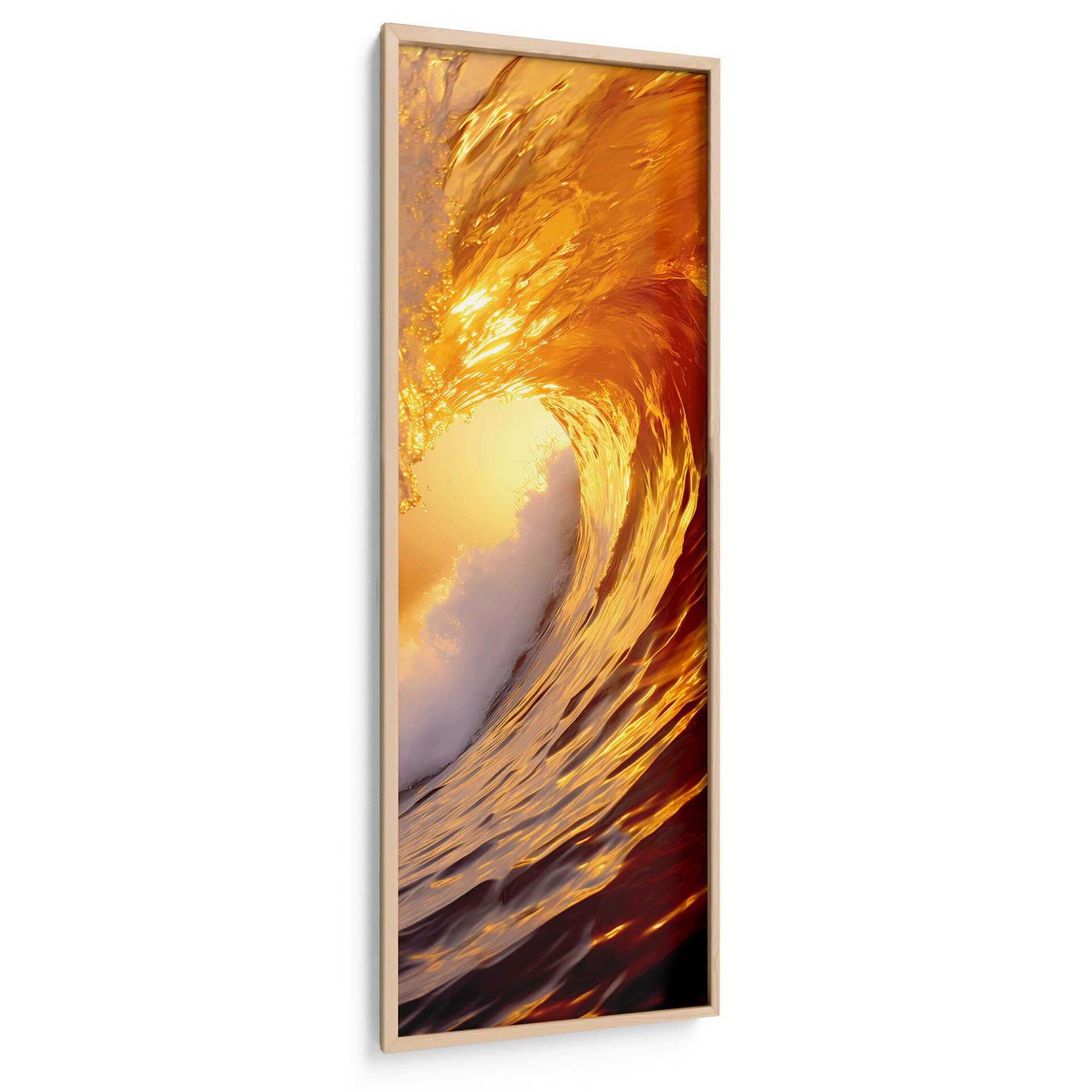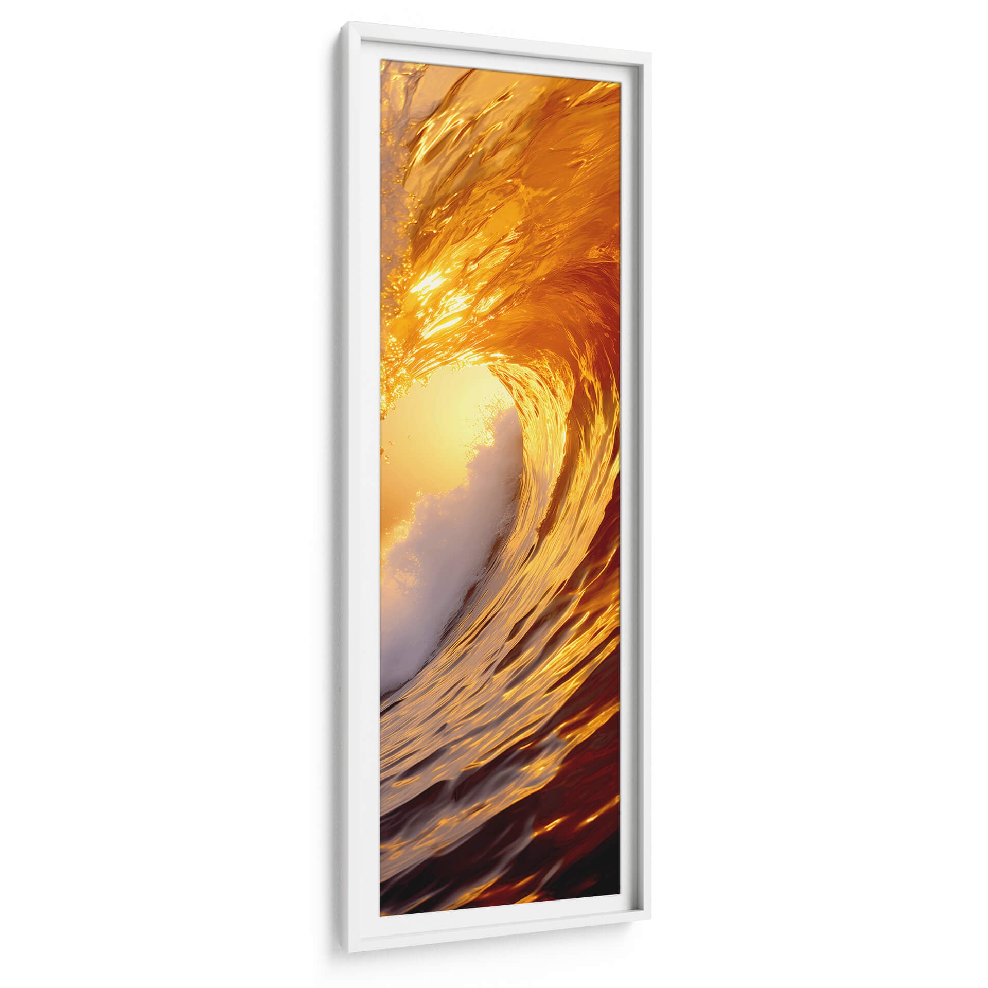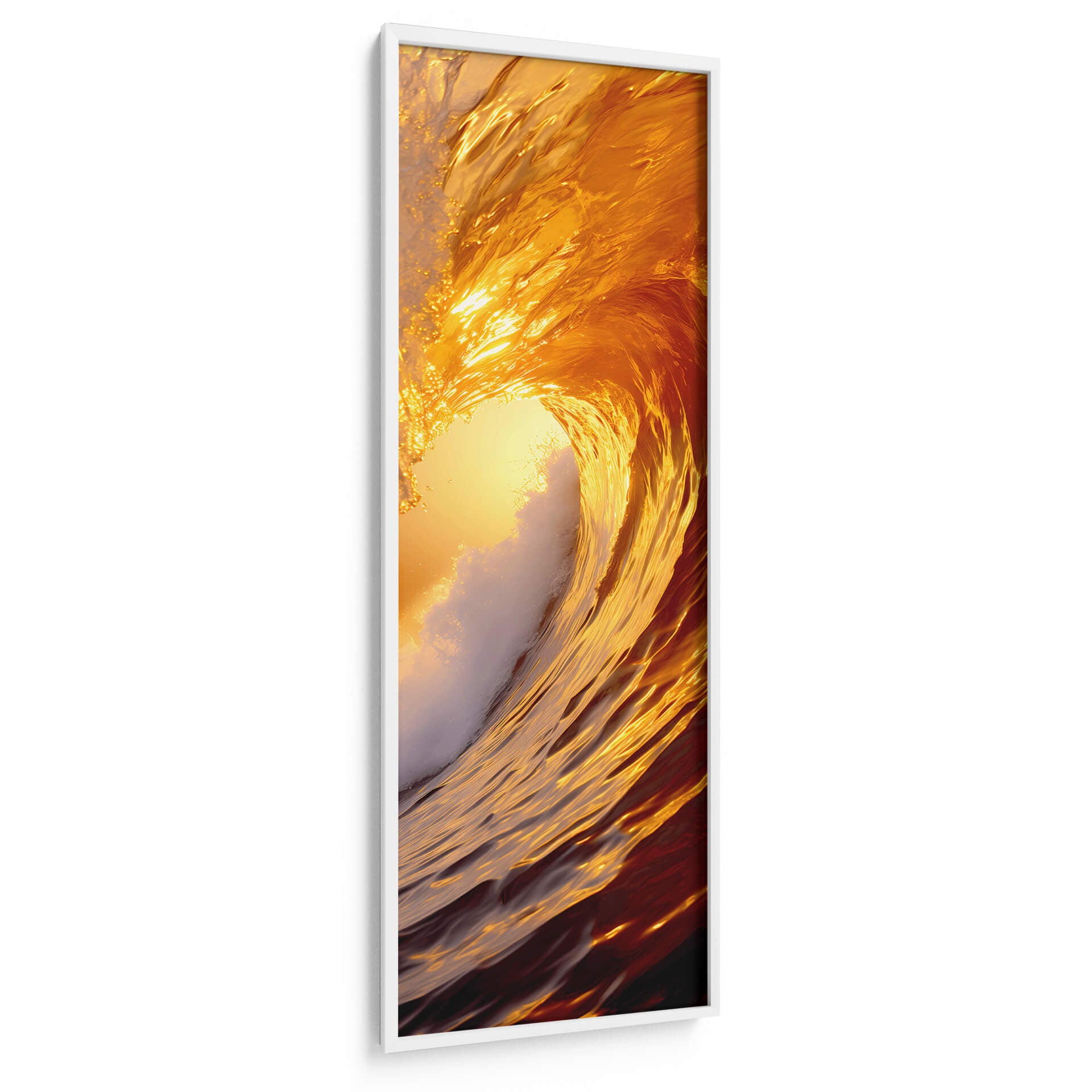 Sumérgete en la fuerza y la belleza del océano con "La Ola - 2", una obra de arte contemporáneo que captura la magnificencia de una ola dorada al amanecer. Este cuadro decorativo, inspirado en la naturaleza y la energía del mar, te transportará a momentos de paz y asombro. Los tonos cálidos y vibrantes del sol filtrándose a través del agua crean un efecto hipnótico, con destellos de luz que juegan sobre las curvas fluidas de la ola. La composición vertical y el enfoque en la textura del agua invitan a la contemplación, evocando una sensación de movimiento y poder sereno. "La Ola - 2" es perfecto para añadir un toque dinámico y sofisticado a cualquier espacio, desde una sala de estar moderna hasta un dormitorio tranquilo o una oficina que busque inspiración. Su estilo abstracto y su paleta de colores dorados y ámbar la convierten en una pieza versátil capaz de realzar la decoración de interiores, aportando calidez y un toque de la majestuosidad marina. Ideal para amantes de la naturaleza y del arte que buscan una pieza que inspire y conecte emocionalmente.