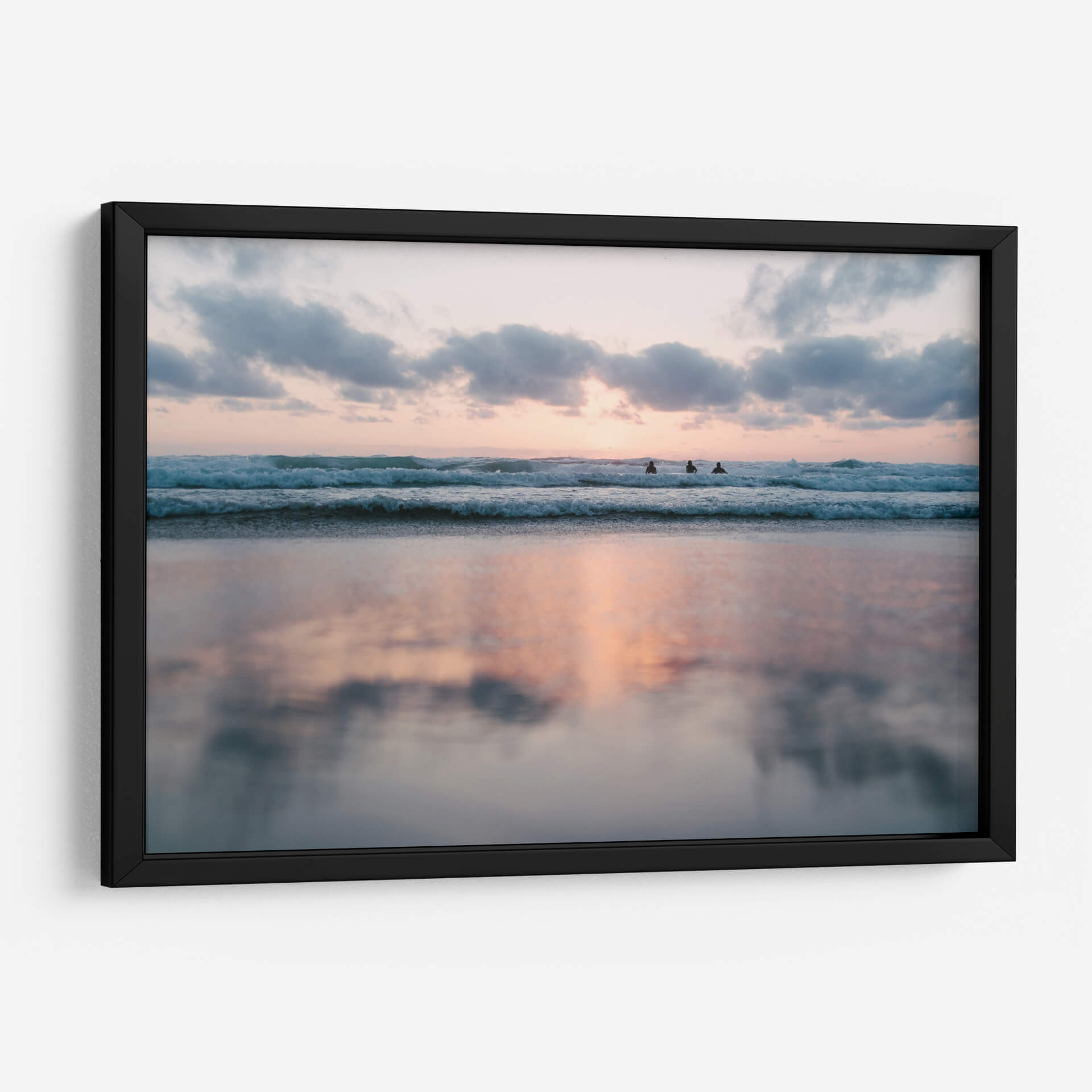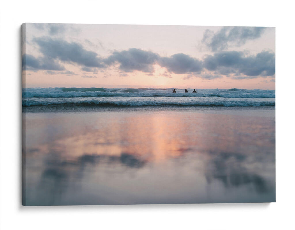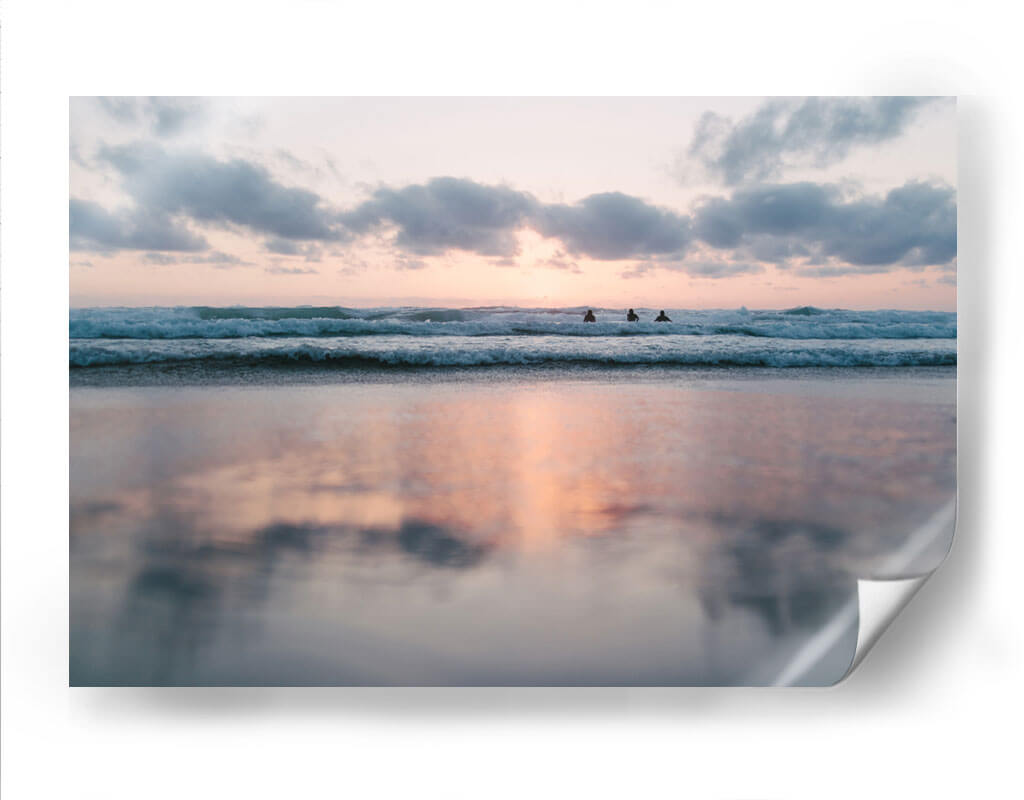 Captura la serenidad y la belleza efímera del océano con "Las últimas olas", un cuadro decorativo que evoca la tranquilidad del atardecer en la playa. Esta obra maestra visual presenta una escena costera serena, donde las olas suaves rompen en la orilla y el reflejo del cielo crepuscular baña la arena húmeda con tonos pastel de rosa, naranja y azul pálido. La composición, con tres figuras solitarias esperando en el agua, añade un toque de contemplación y conexión humana con la inmensidad de la naturaleza. El uso de una paleta de colores suaves y armoniosos crea una atmósfera de calma y relajación, perfecta para transformar cualquier espacio en un santuario de paz. Ideal para dormitorios, salones o cualquier rincón que necesite un respiro visual, este cuadro decorativo captura la magia del fin del día junto al mar. Su estilo, cercano al impresionismo fotográfico, permite apreciar la textura del agua y la sutileza de la luz, invitando a la contemplación y al disfrute de momentos de quietud. "Las últimas olas" no es solo una pieza decorativa, sino una ventana a la serenidad y la belleza del mundo natural, un recordatorio visual de la paz que se puede encontrar en la contemplación de la naturaleza.