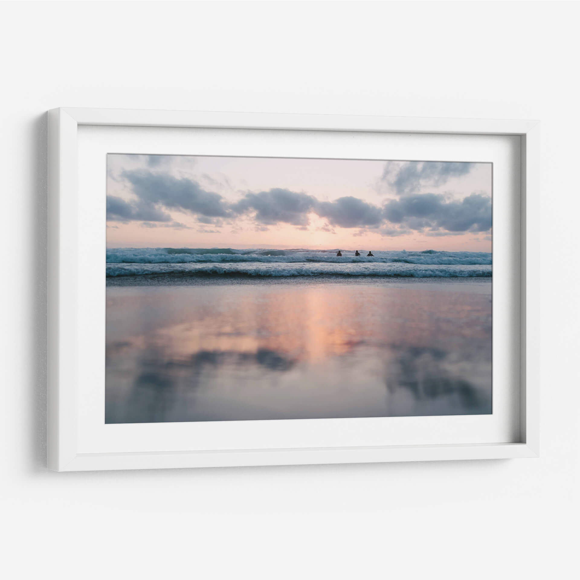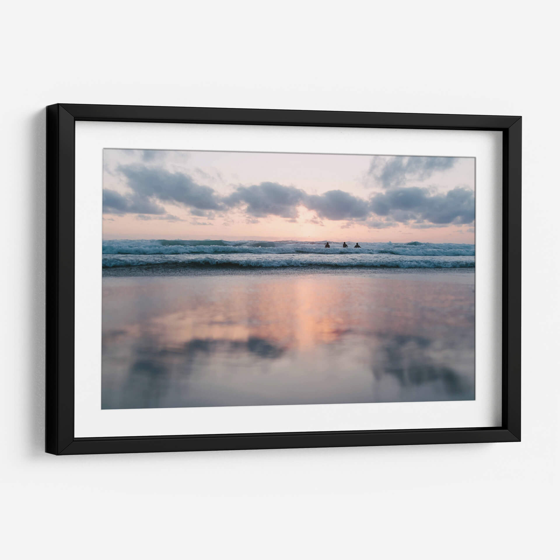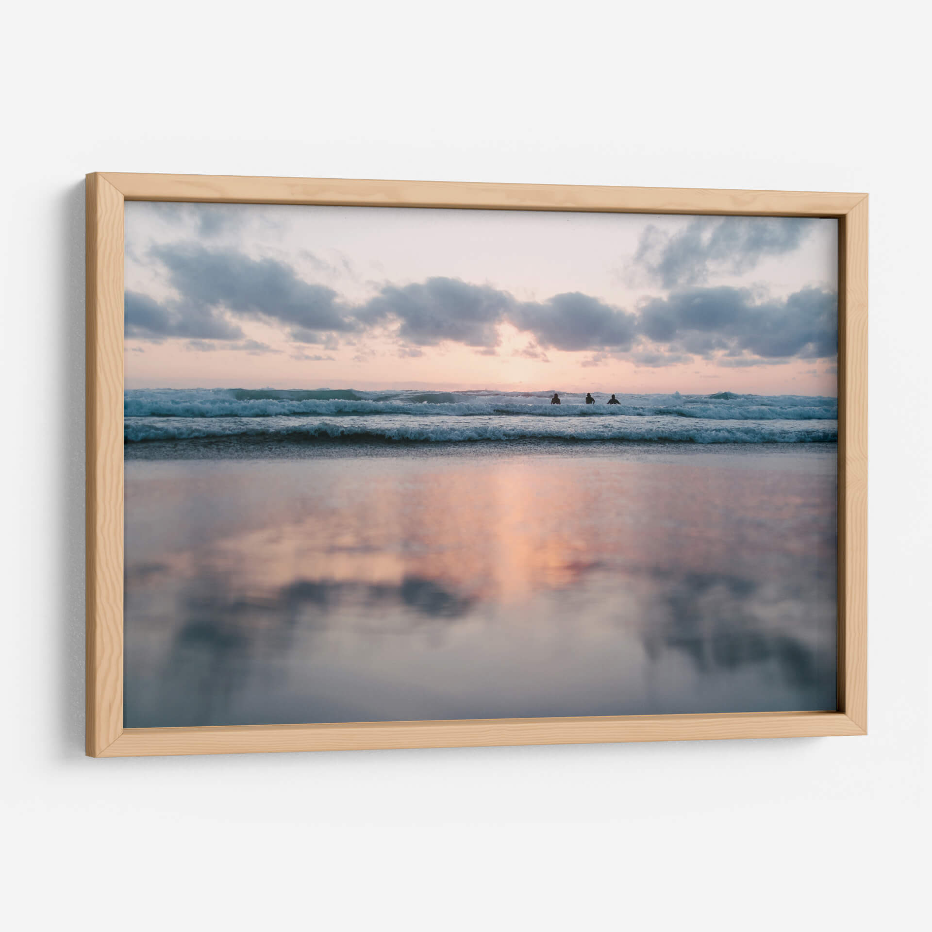 Captura la serenidad y la belleza efímera del océano con "Las últimas olas", un cuadro decorativo que evoca la tranquilidad del atardecer en la playa. Esta obra maestra visual presenta una escena costera serena, donde las olas suaves rompen en la orilla y el reflejo del cielo crepuscular baña la arena húmeda con tonos pastel de rosa, naranja y azul pálido. La composición, con tres figuras solitarias esperando en el agua, añade un toque de contemplación y conexión humana con la inmensidad de la naturaleza. El uso de una paleta de colores suaves y armoniosos crea una atmósfera de calma y relajación, perfecta para transformar cualquier espacio en un santuario de paz. Ideal para dormitorios, salones o cualquier rincón que necesite un respiro visual, este cuadro decorativo captura la magia del fin del día junto al mar. Su estilo, cercano al impresionismo fotográfico, permite apreciar la textura del agua y la sutileza de la luz, invitando a la contemplación y al disfrute de momentos de quietud. "Las últimas olas" no es solo una pieza decorativa, sino una ventana a la serenidad y la belleza del mundo natural, un recordatorio visual de la paz que se puede encontrar en la contemplación de la naturaleza.