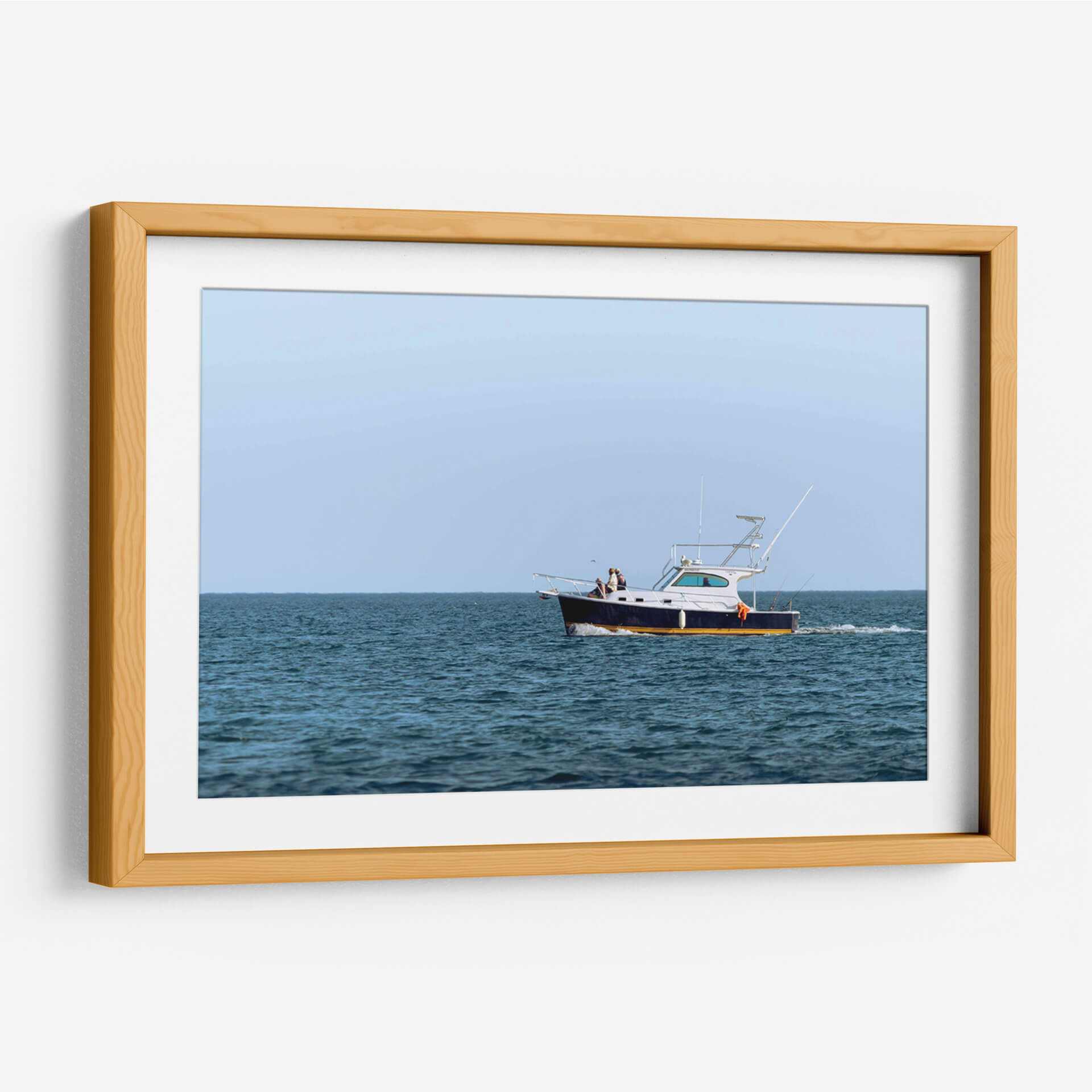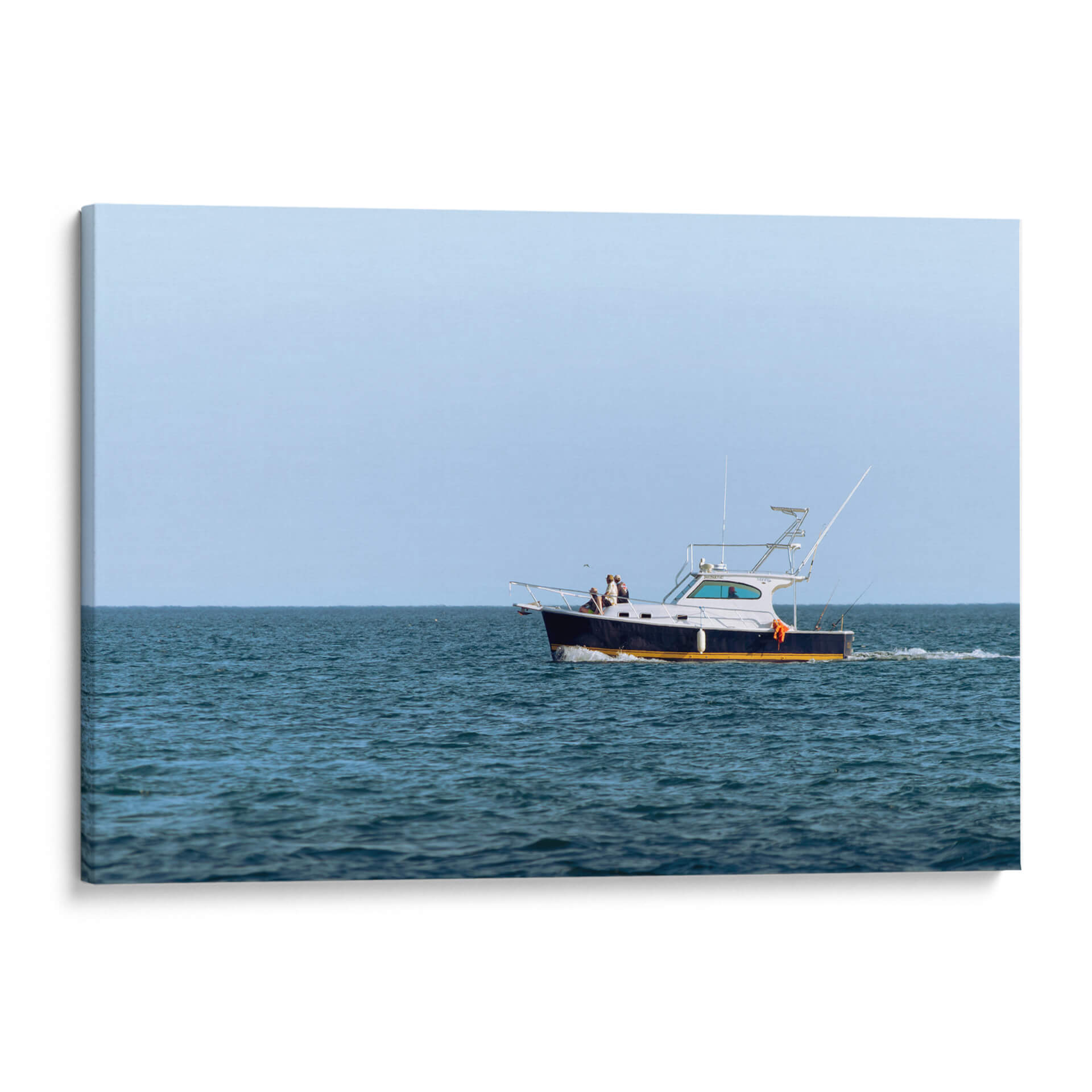 Sumérgete en la serenidad del océano con 'Navegamos', una obra de arte que captura la esencia de un viaje marítimo. El cuadro decorativo muestra un yate de pesca navegando en aguas tranquilas y azules bajo un cielo despejado. La composición se centra en el movimiento y la inmensidad del mar, con el horizonte claro separando las tranquilas olas del cielo sereno. Los colores predominantes, azules profundos y celestes suaves, crean una atmósfera de paz y aventura, ideal para cualquier espacio que busque evocar calma y la libertad del mar. Las sutiles tonalidades de la embarcación, con detalles en azul oscuro, blanco y toques amarillos, añaden un realismo cautivador a la escena. Esta pieza es perfecta para amantes de la navegación, la pesca o simplemente para aquellos que anhelan la conexión con la naturaleza y la exploración. Su estilo evocador la convierte en un punto focal ideal para salas de estar, oficinas o dormitorios, aportando una sensación de escapismo y tranquilidad a tu hogar. Imagina la brisa marina y el sonido de las olas al contemplar este impresionante cuadro decorativo.