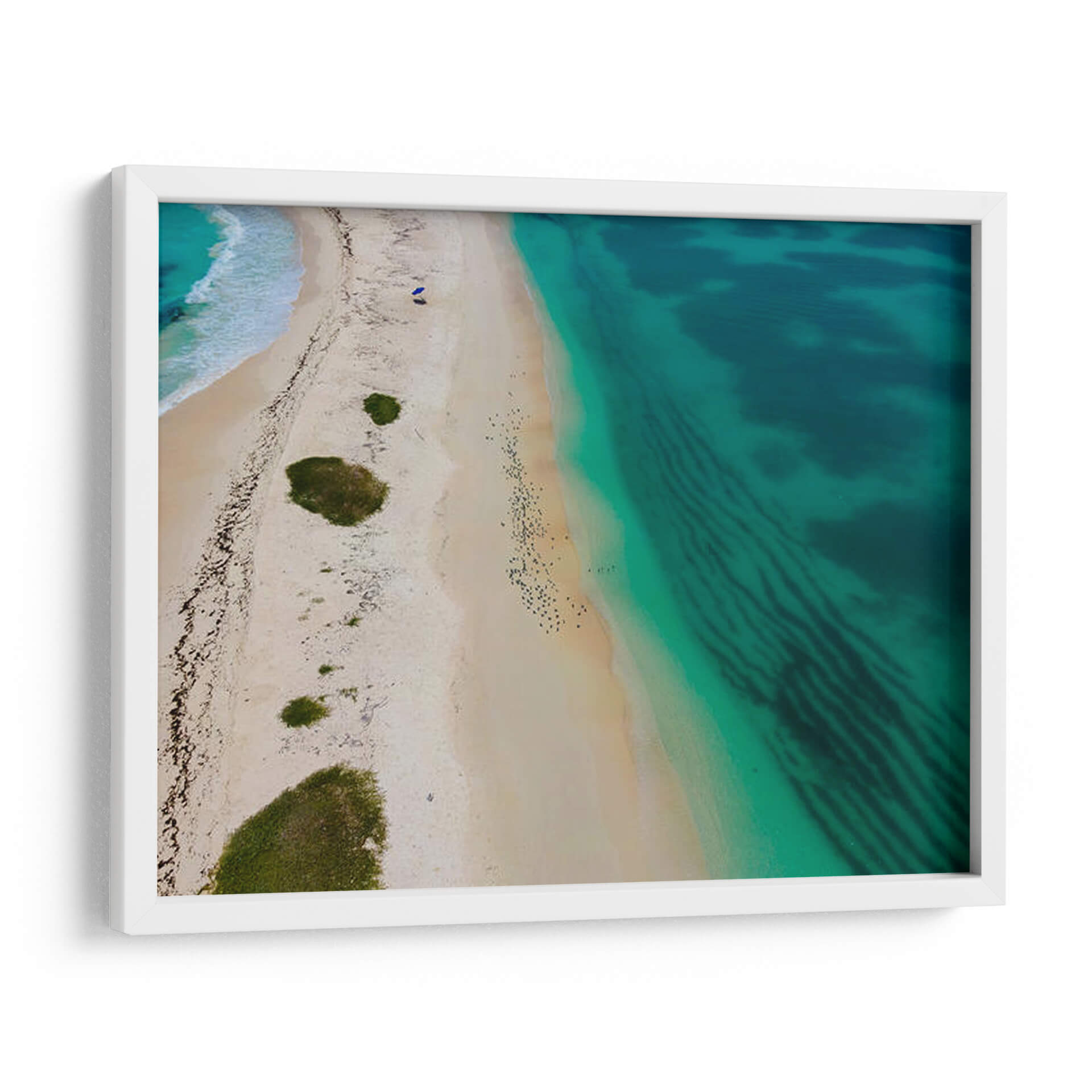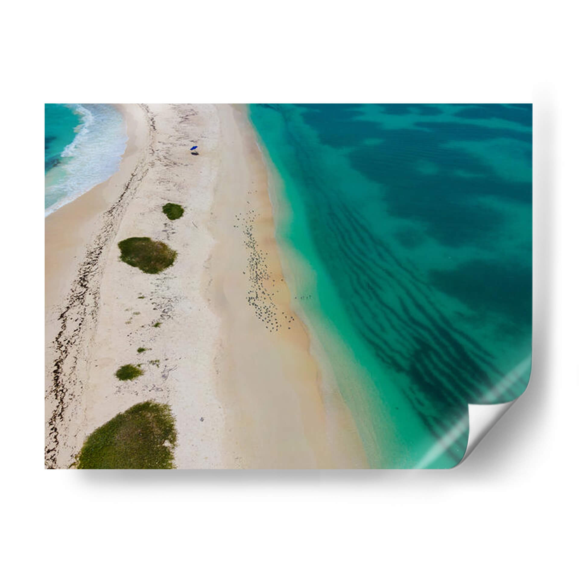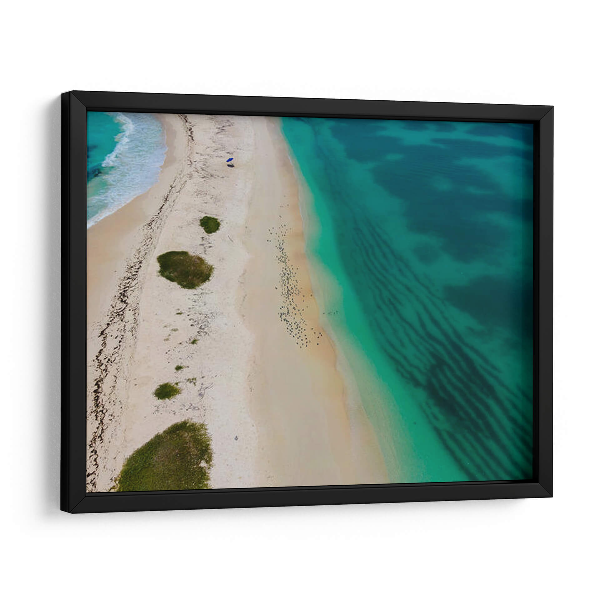 Sumérgete en la serena belleza de "Ni tan solos", una obra de arte que captura la esencia de una playa idílica desde una perspectiva aérea. Este cuadro decorativo te transportará a costas tranquilas con sus vibrantes tonos turquesa del mar que contrastan con la suave arena dorada. La composición, que parece una vista de dron, revela patrones hipnóticos creados por las corrientes submarinas y la línea de costa sinuosa, salpicada de vegetación verde esmeralda. La presencia sutil de un paraguas azul y pequeñas figuras humanas en la distancia añade un toque de escala y narración, evocando una sensación de paz y escapismo. "Ni tan solos" es perfecto para infundir calma y un aire vacacional en cualquier espacio, ya sea tu sala de estar, dormitorio o incluso una oficina que necesite un respiro visual. Transforma tu hogar en un santuario de tranquilidad con este impresionante paisaje marino, ideal para amantes de la naturaleza y aquellos que buscan una conexión con el mar. Su estilo contemporáneo y la paleta de colores refrescante lo convierten en una adición versátil y cautivadora a cualquier decoración.