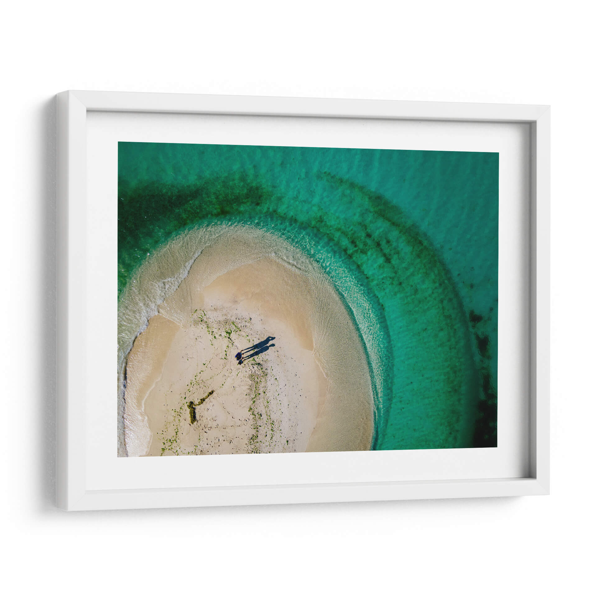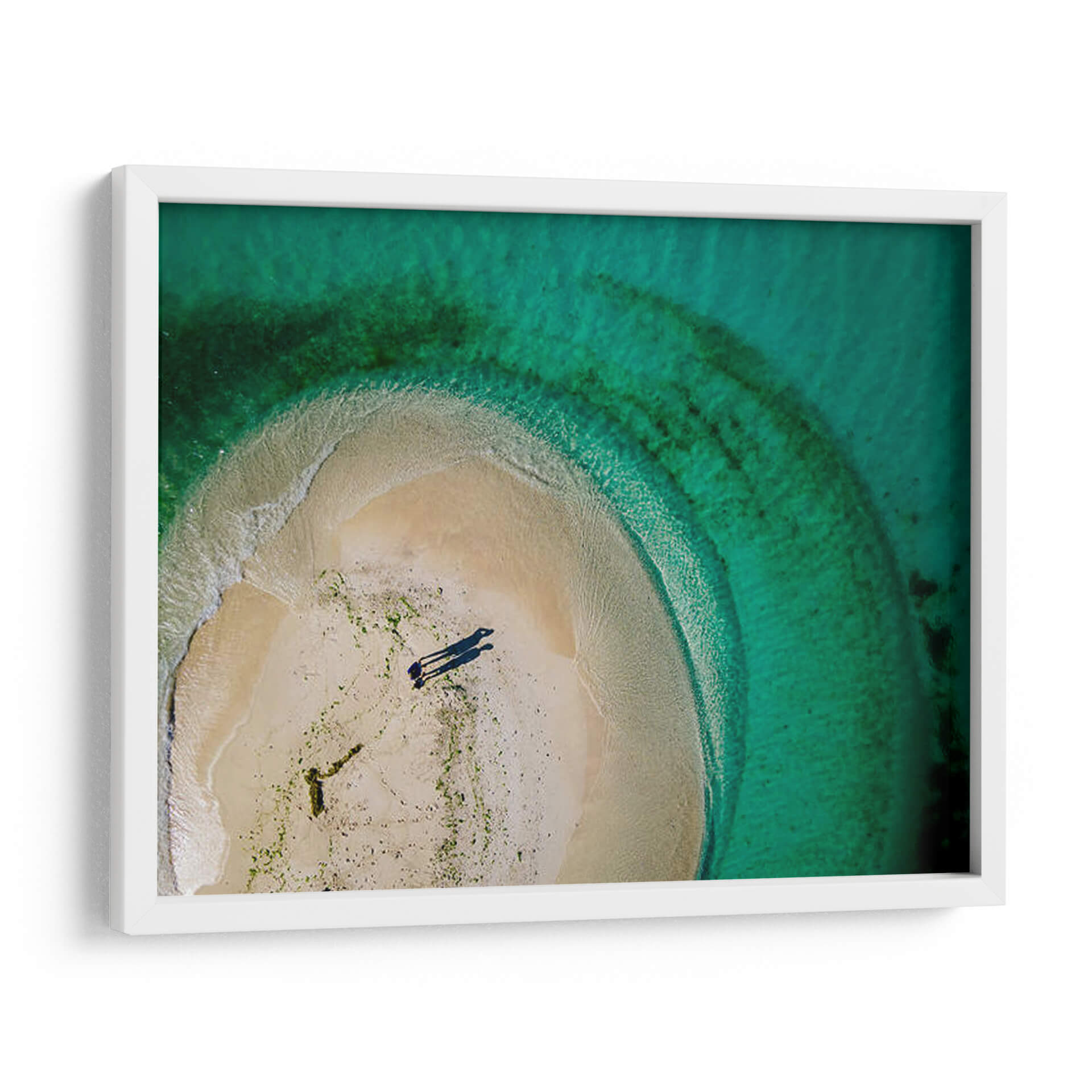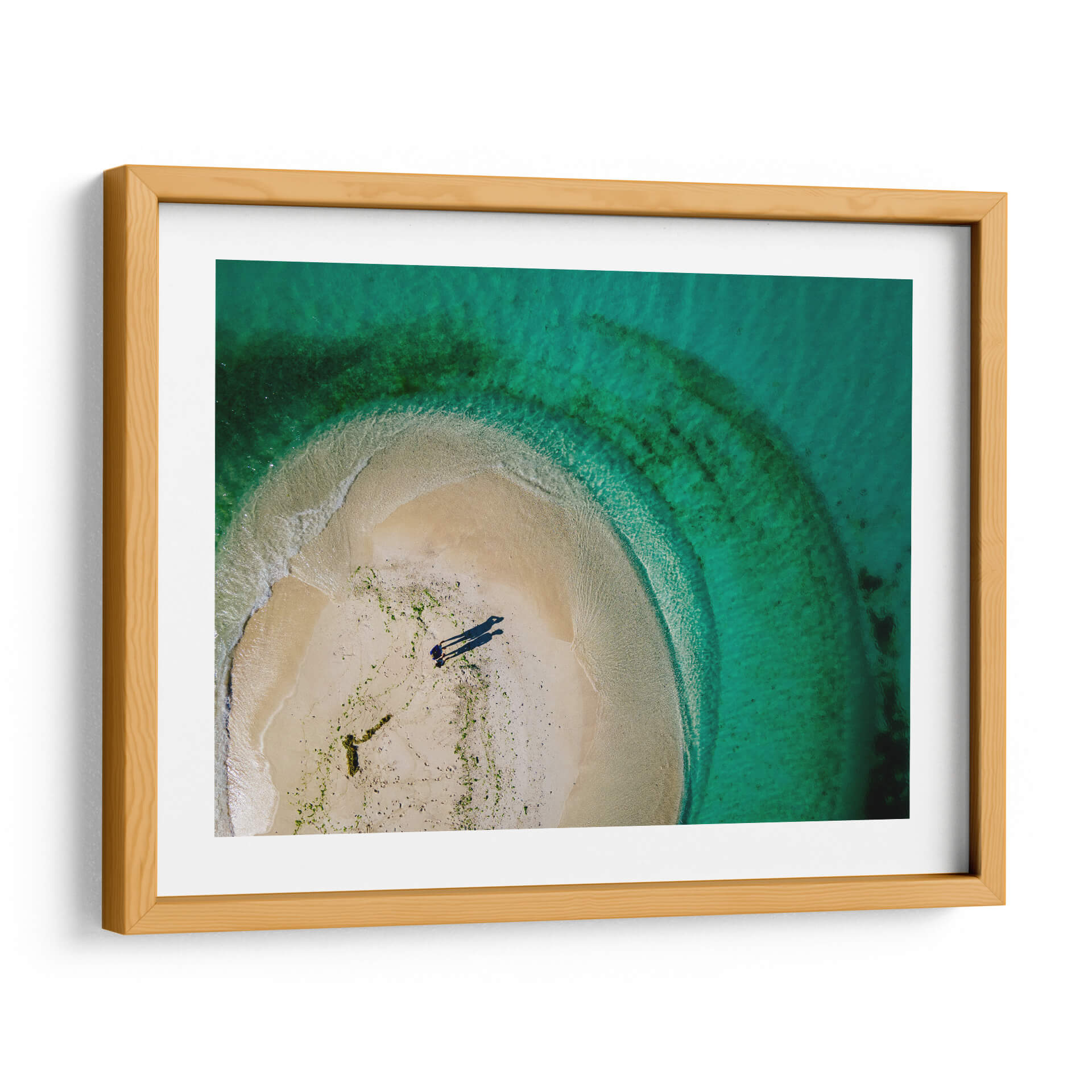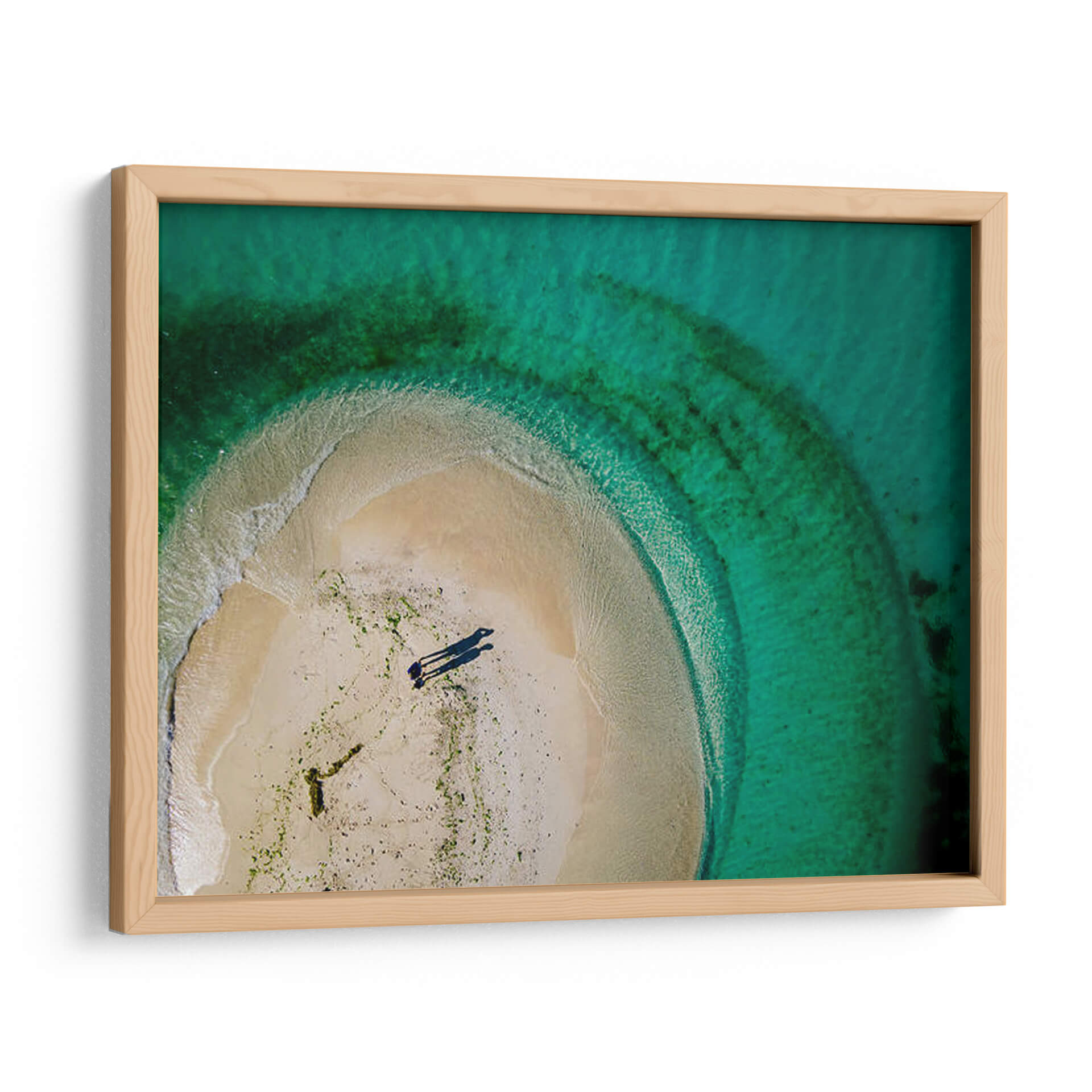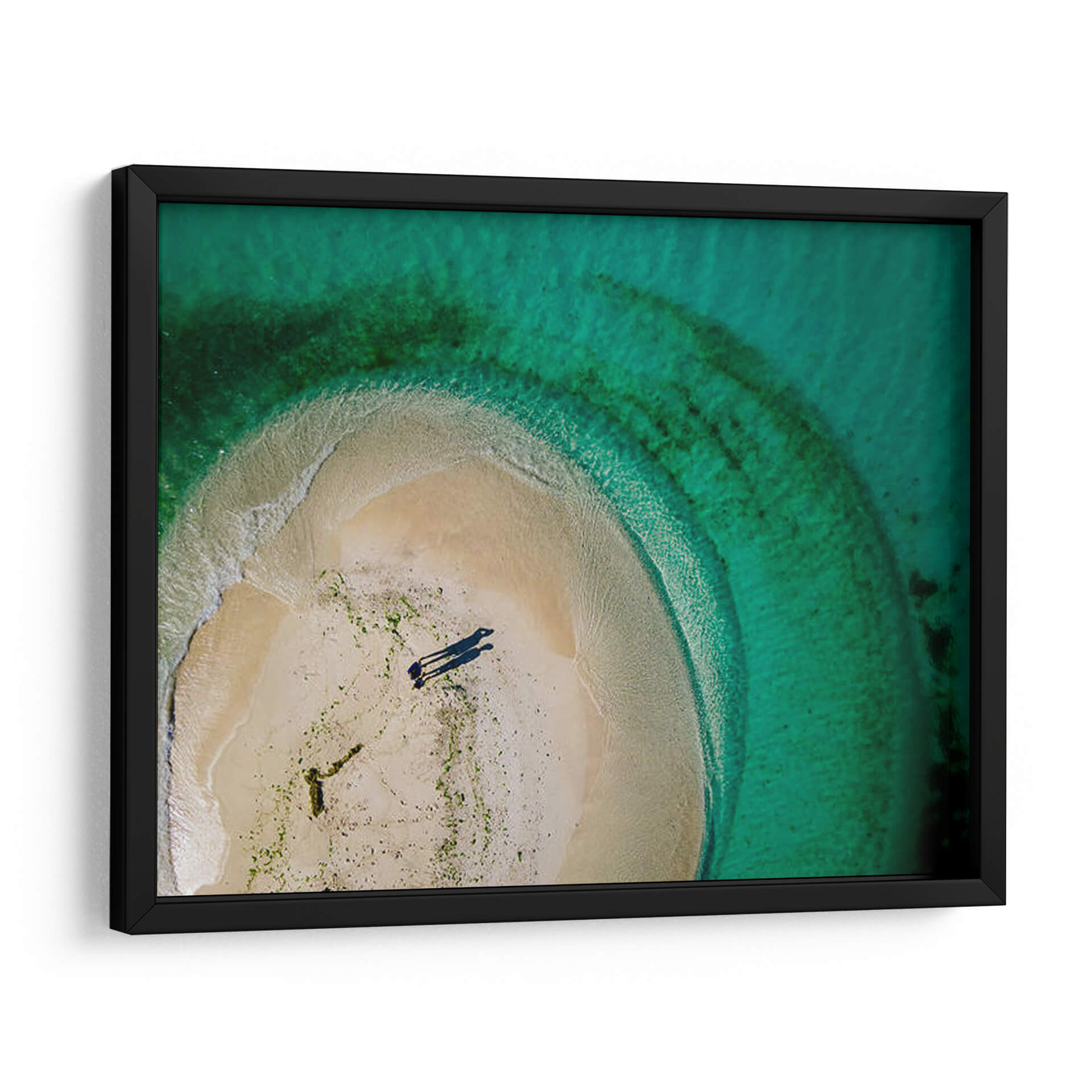 Captura la serenidad y la inmensidad del océano con este cautivador cuadro decorativo 'Ojo de pez'. Desde una perspectiva aérea única, la obra de arte presenta una idílica playa de arena dorada bañada por las aguas turquesas y cristalinas de un mar vibrante. Las olas suaves acarician la orilla, creando un patrón hipnotizante que invita a la relajación. En la arena, dos figuras humanas y sus sombras proyectadas aportan una escala humana sutil, evocando una sensación de paz, conexión y momentos compartidos en la naturaleza. La paleta de colores, dominada por el azul profundo del mar y el cálido tono de la arena, crea un contraste armonioso que atrae la mirada y genera una atmósfera de tranquilidad y evasión. Este cuadro decorativo es ideal para infundir calma y un toque de escapismo en cualquier espacio, ya sea una sala de estar moderna, un dormitorio sereno o una oficina que busque un oasis de paz. Su composición aérea y la belleza natural capturada lo convierten en una pieza de arte contemporáneo que transporta a la contemplación y al disfrute de los placeres sencillos de la vida. Transforma tu hogar en un refugio de paz con esta exquisita representación de un paraíso tropical.