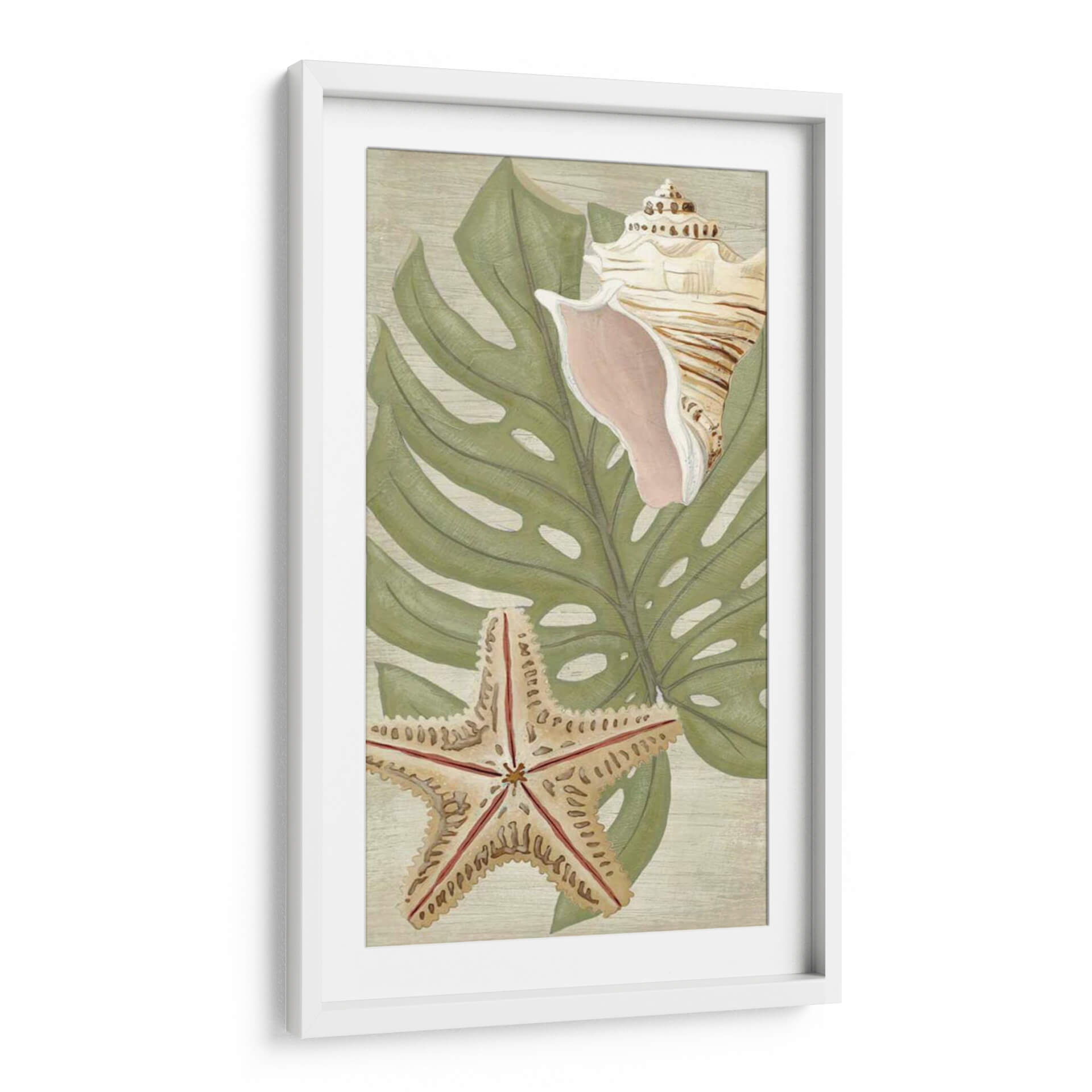 Sumérgete en la serenidad costera con "Palm Beach III", una obra de arte que captura la esencia de un día tranquilo junto al mar. Este cuadro decorativo presenta una detallada representación de conchas marinas y hojas de palma exuberantes, evocando una atmósfera de relajación y conexión con la naturaleza. La paleta de colores, dominada por tonos verdes suaves y neutros cremosos, aporta una sensación de calma y sofisticación a cualquier espacio. Las texturas sutiles y la composición equilibrada invitan a la contemplación, haciendo de esta pieza un complemento perfecto para salones, dormitorios o estudios que busquen un toque de brisa marina y elegancia natural. Ideal para quienes aprecian el arte inspirado en la playa y desean infundir a su hogar una sensación de paz y bienestar. "Palm Beach III" no es solo una decoración, sino una invitación a evocar las vacaciones perfectas y un refugio visual en tu propio hogar. Su estilo detallado pero a la vez sereno la convierte en una adición versátil que realza la decoración sin abrumar.