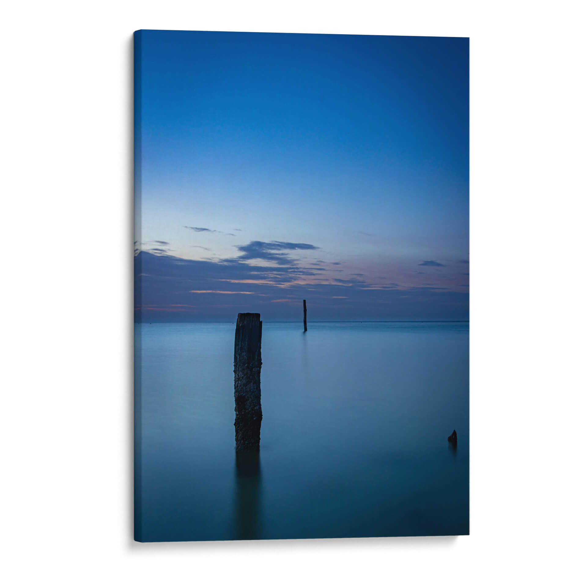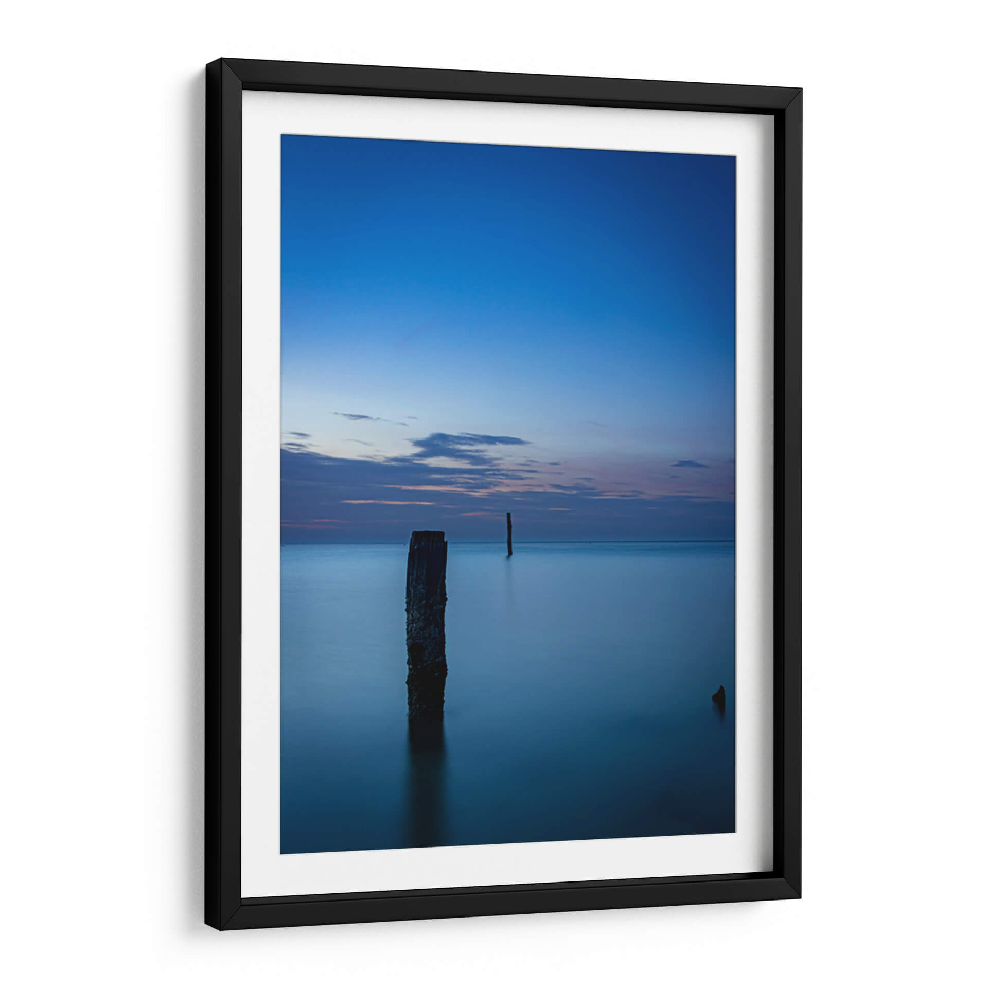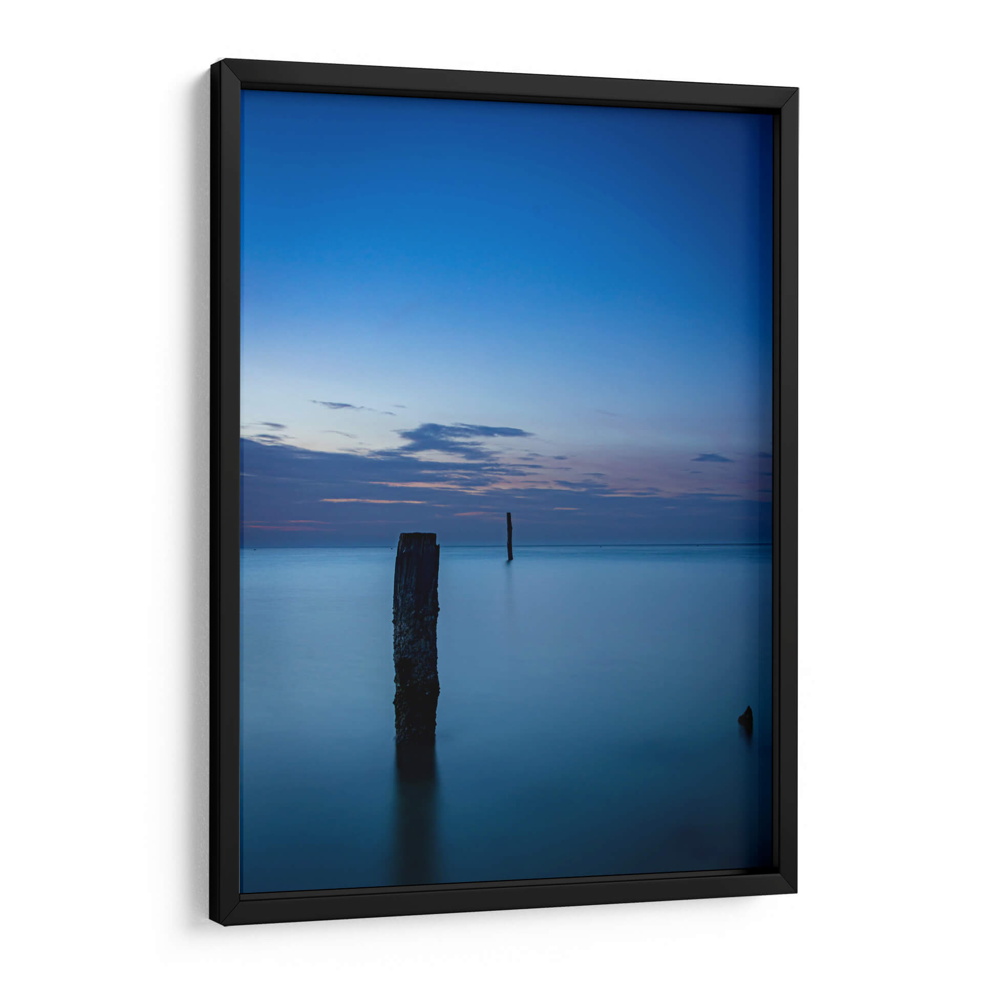 Sumérgete en la serena inmensidad del océano con "Soledad Marítima", una obra de arte evocadora del artista Ulises Páez. Este cuadro decorativo captura la tranquilidad de un atardecer o amanecer costero, donde el agua se funde con un cielo de tonos profundos y pacíficos. La composición se centra en la quietud de postes de madera emergiendo del mar, sugiriendo vestigios del pasado o pilares de fortaleza en medio de la vastedad. La paleta de colores, dominada por azules profundos y suaves gradaciones hacia el horizonte, crea una atmósfera de calma y contemplación, ideal para espacios que buscan transmitir paz y serenidad. La técnica utilizada, que suaviza el movimiento del agua y las nubes, realza la sensación de quietud y eternidad. Este cuadro es perfecto para añadir un toque de introspección y belleza natural a tu sala de estar, dormitorio u oficina, invitando a la reflexión y al descanso visual. Descubre la poesía del paisaje marino y transforma tu hogar en un santuario de paz con esta pieza única.
