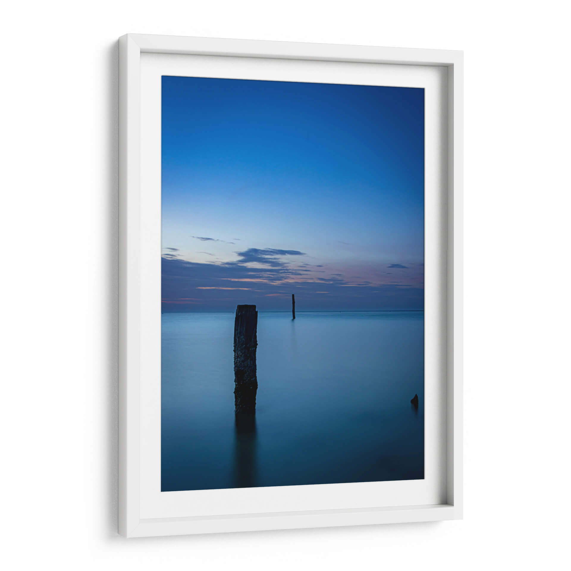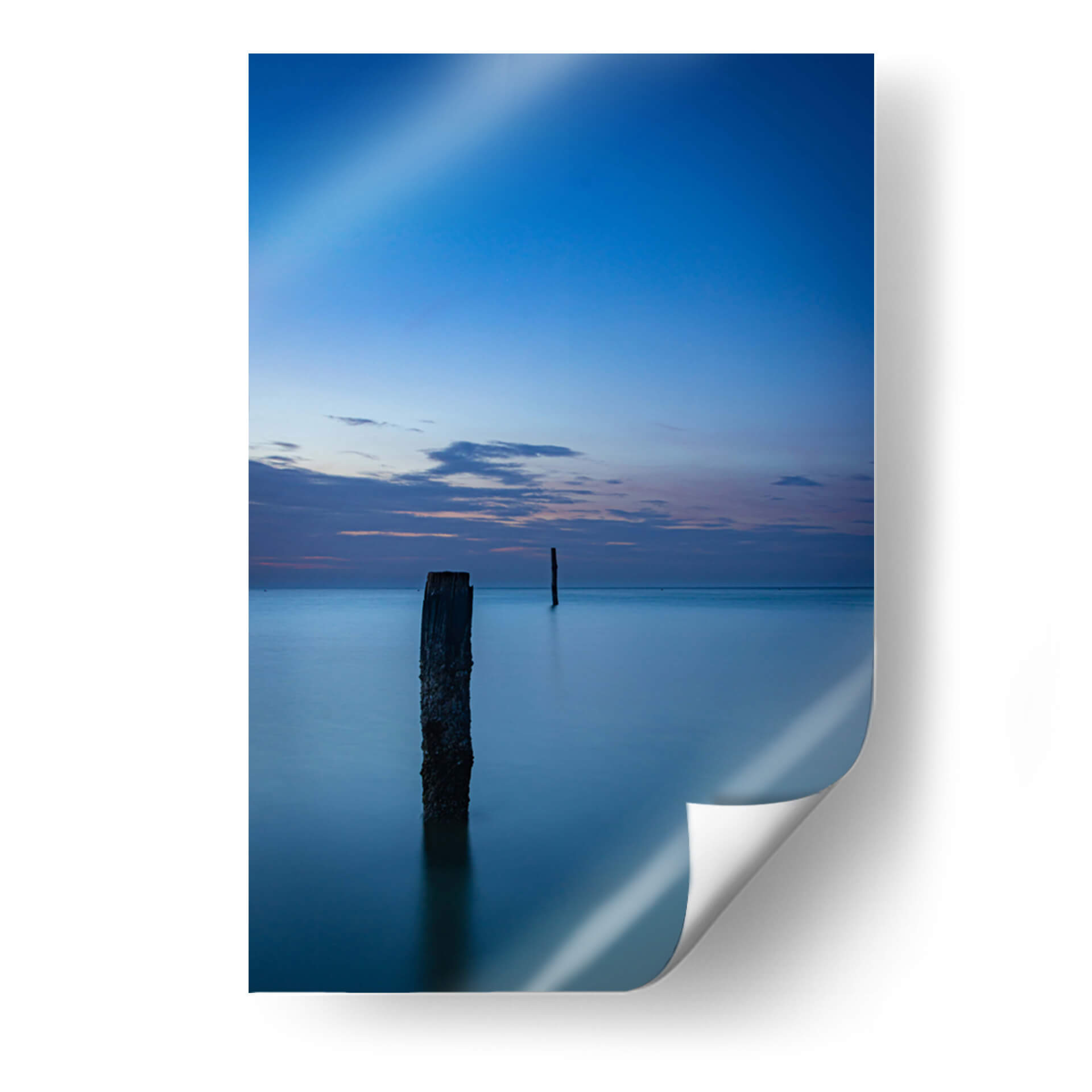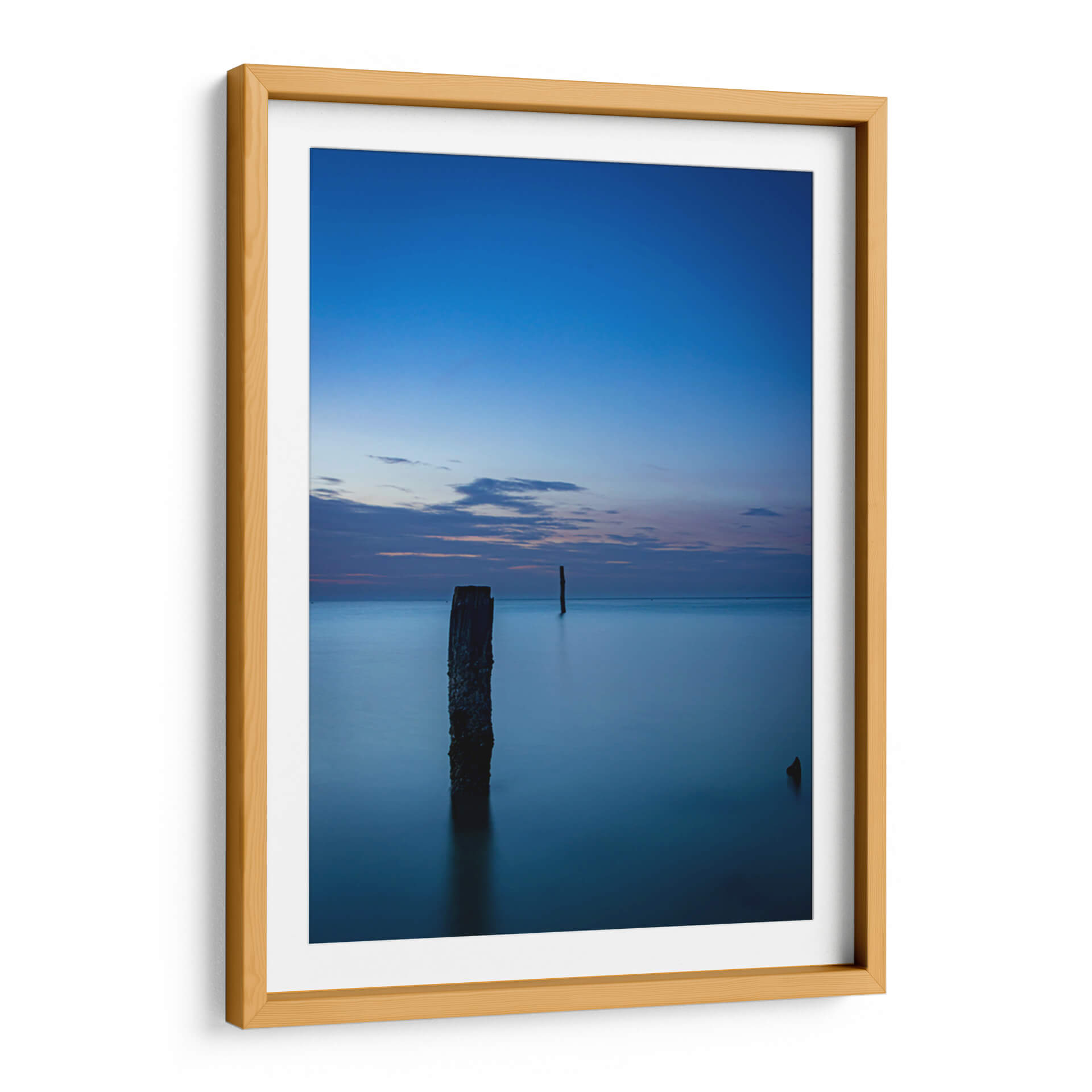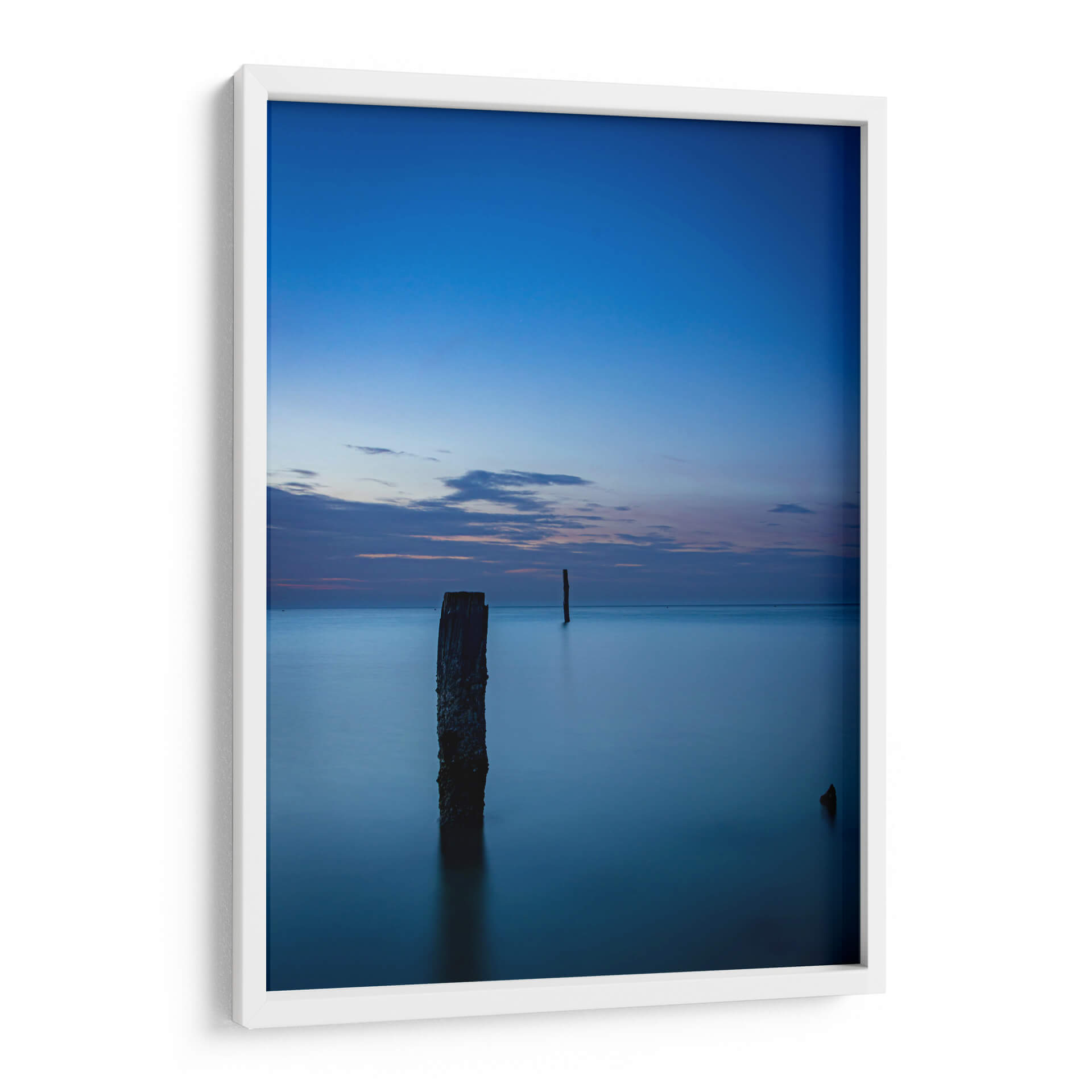 Sumérgete en la serena inmensidad del océano con "Soledad Marítima", una obra de arte evocadora del artista Ulises Páez. Este cuadro decorativo captura la tranquilidad de un atardecer o amanecer costero, donde el agua se funde con un cielo de tonos profundos y pacíficos. La composición se centra en la quietud de postes de madera emergiendo del mar, sugiriendo vestigios del pasado o pilares de fortaleza en medio de la vastedad. La paleta de colores, dominada por azules profundos y suaves gradaciones hacia el horizonte, crea una atmósfera de calma y contemplación, ideal para espacios que buscan transmitir paz y serenidad. La técnica utilizada, que suaviza el movimiento del agua y las nubes, realza la sensación de quietud y eternidad. Este cuadro es perfecto para añadir un toque de introspección y belleza natural a tu sala de estar, dormitorio u oficina, invitando a la reflexión y al descanso visual. Descubre la poesía del paisaje marino y transforma tu hogar en un santuario de paz con esta pieza única.