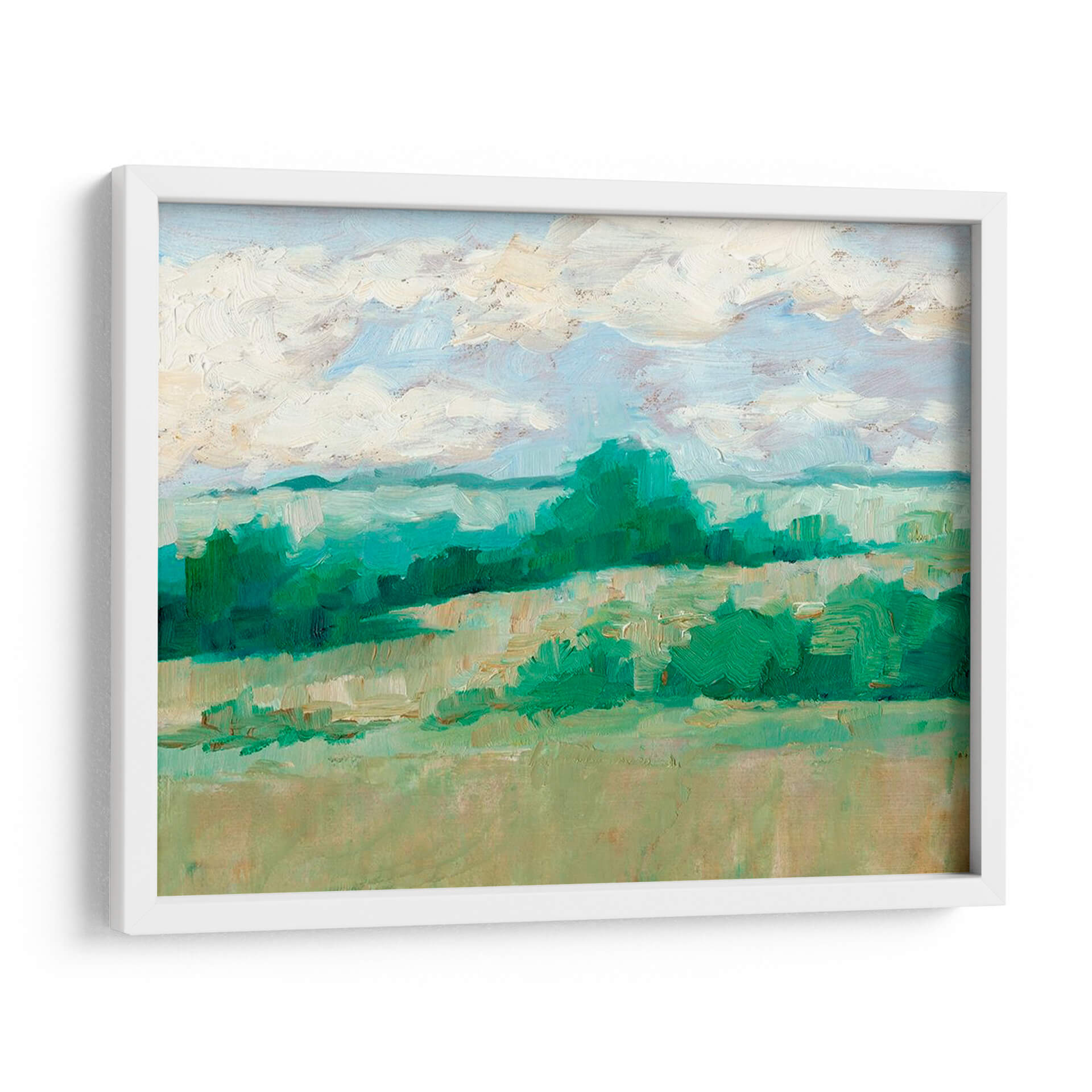 Sumérgete en la serenidad del campo con "Altura Del Verano I", una obra maestra del artista contemporáneo Ethan Harper. Este evocador cuadro decorativo captura la esencia de un paisaje rural bajo un cielo de verano brumoso. La paleta de colores, dominada por verdes vibrantes y tonos tierra suaves, junto con pinceladas expresivas que sugieren la textura de la vegetación y las nubes, invita a la contemplación y la calma. Las colinas ondulantes y la exuberante vegetación crean una sensación de profundidad y tranquilidad, perfecta para transformar cualquier espacio en un refugio de paz. La composición, que se abre hacia el horizonte, evoca una sensación de amplitud y libertad. Este lienzo es ideal para aquellos que buscan añadir un toque de naturaleza y serenidad a su hogar u oficina, creando un punto focal que respira calma y belleza natural. "Altura Del Verano I" no es solo una decoración, es una ventana a un momento de paz y conexión con el entorno.