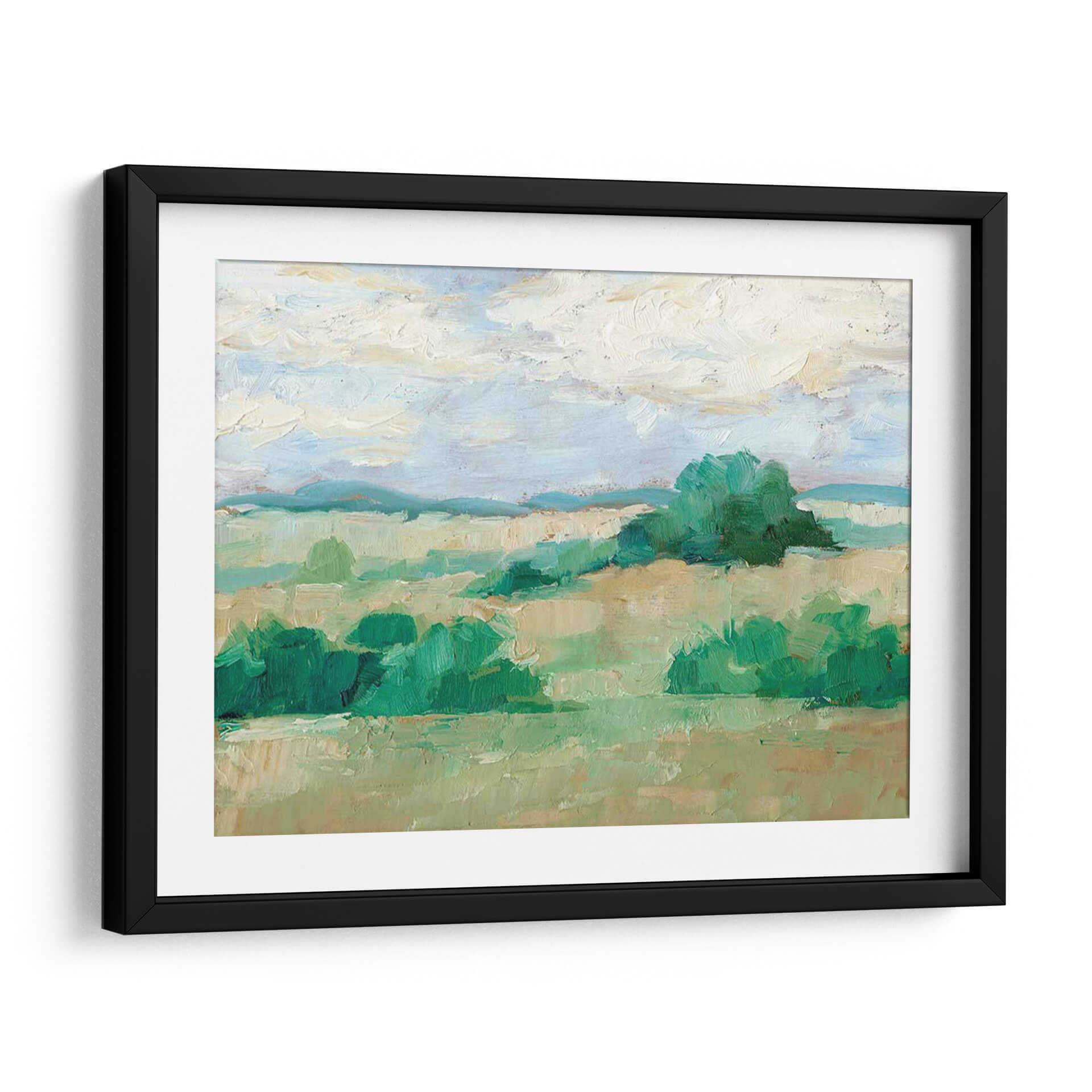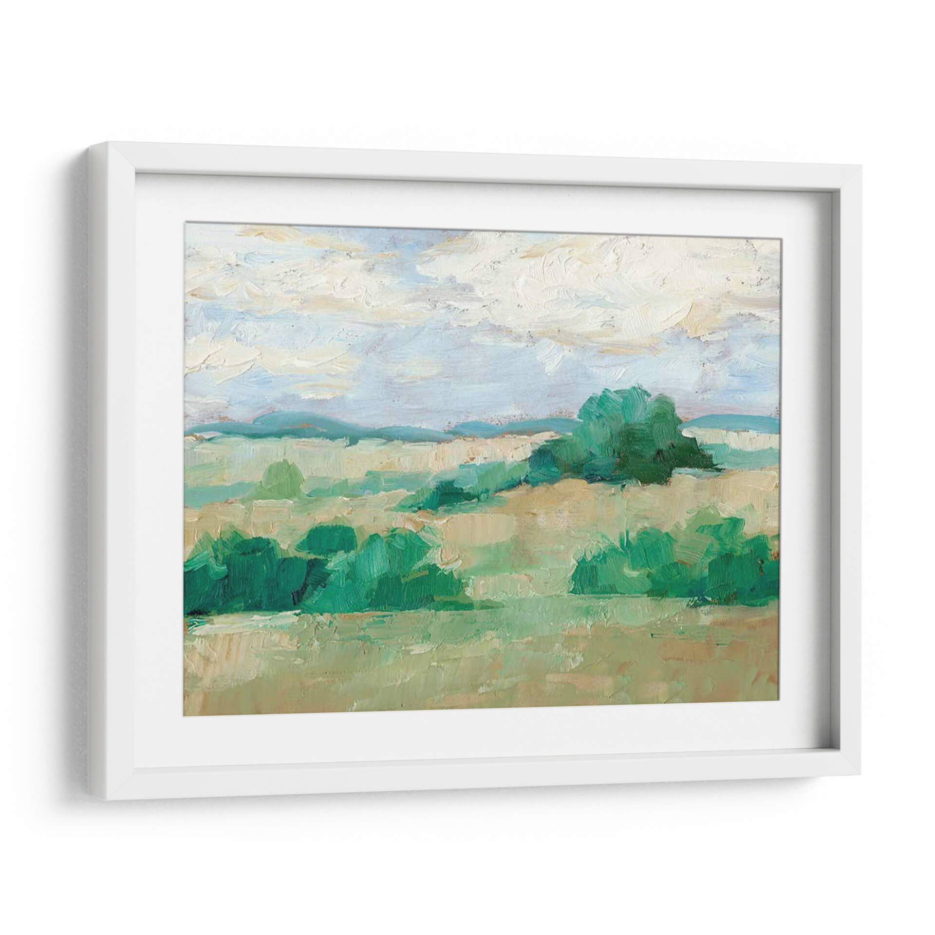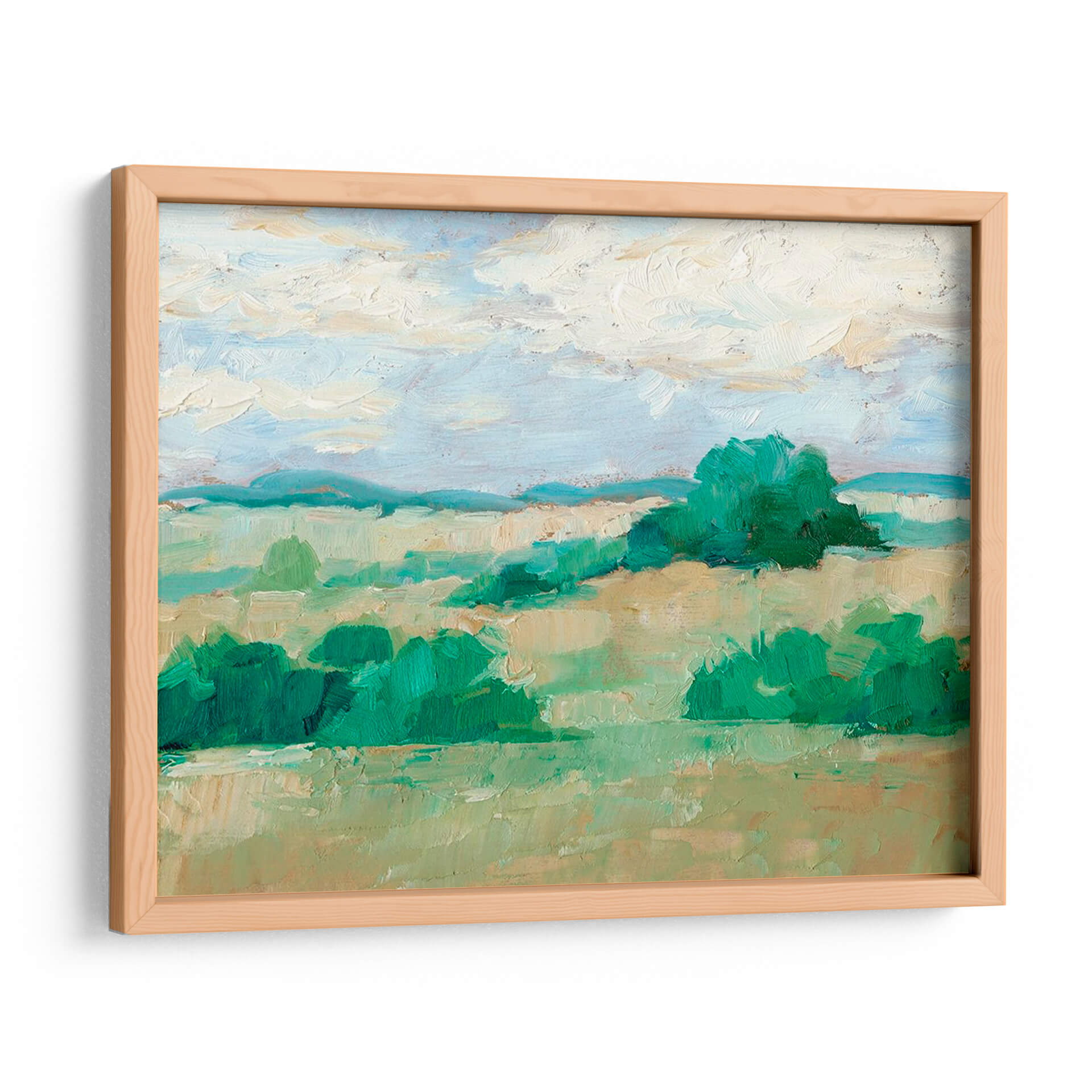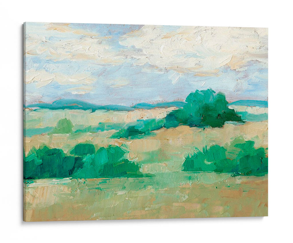 Sumérgete en la serenidad de "Altura Del Verano Ii", una obra de arte contemporáneo de Ethan Harper que captura la esencia vibrante de un paisaje bañado por el sol. Este cuadro decorativo presenta una composición magistral de verdes intensos y tonos tierra cálidos, evocando la exuberancia de la naturaleza en su máximo esplendor. Las pinceladas audaces y texturizadas de Harper dan vida a suaves colinas y exuberante vegetación, mientras que el cielo azul pálido con nubes algodonosas añade una sensación de amplitud y calma. La paleta de colores, dominada por verdes esmeralda, turquesas y ocres, crea una atmósfera de frescura y vitalidad, perfecta para espacios que buscan un toque de naturaleza y tranquilidad. Ideal como punto focal en una sala de estar moderna, aportando vida a un dormitorio o infundiendo calma en una oficina. Este lienzo es una invitación a la contemplación, un recordatorio de la belleza simple y poderosa del mundo natural, diseñado para resonar con quienes aprecian el arte inspirador y las escenas paisajísticas llenas de luz y color. Añade esta pieza a tu colección y transforma tu hogar en un oasis de paz y estilo.