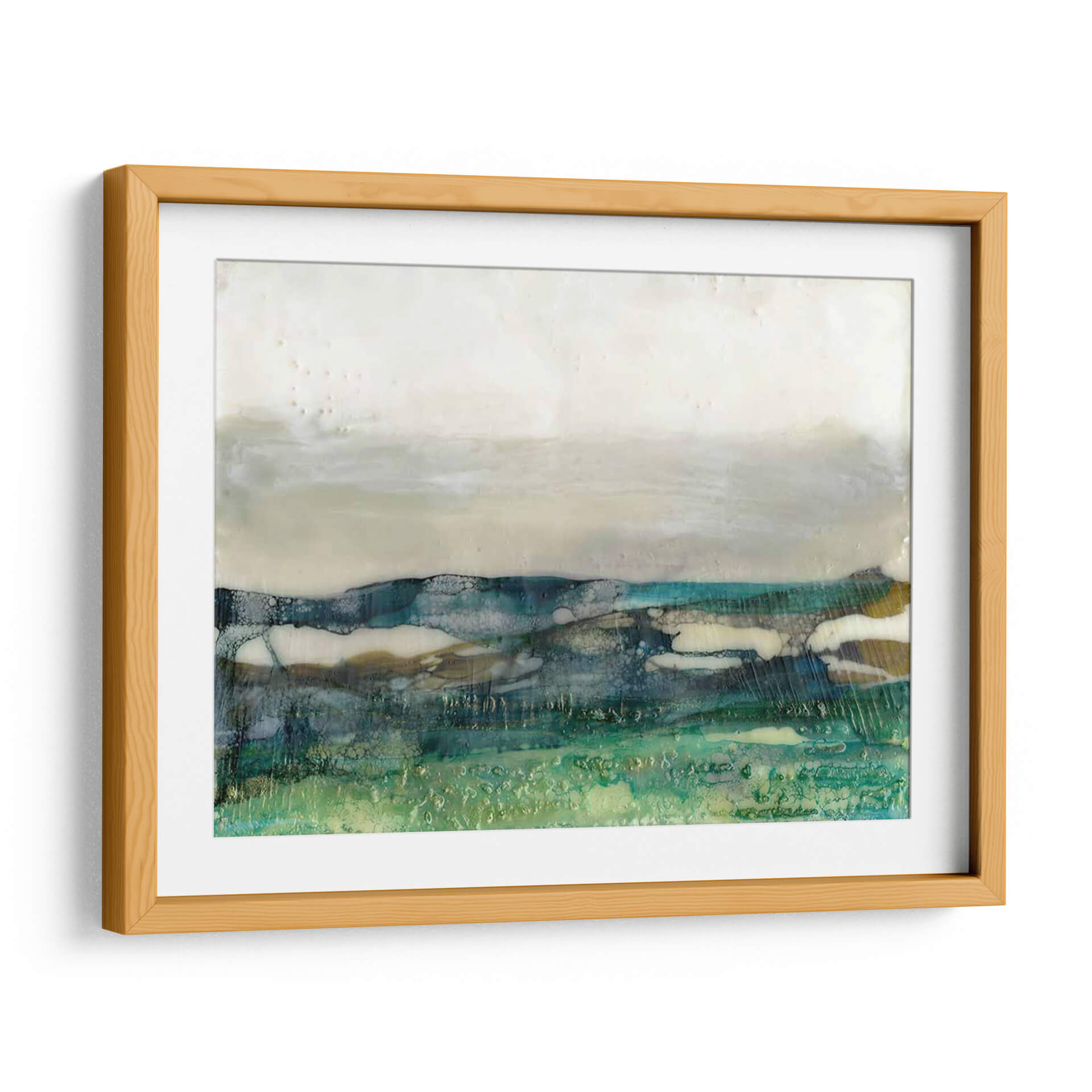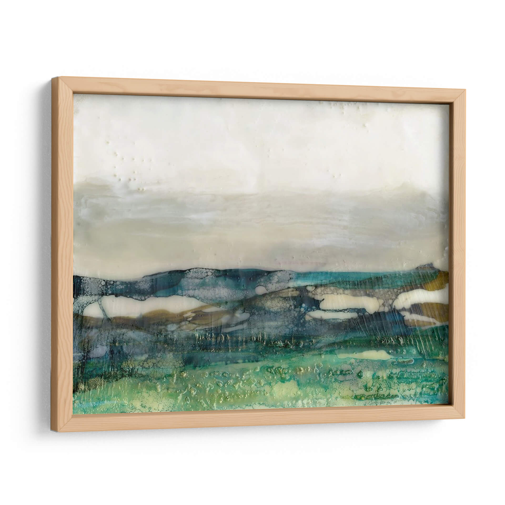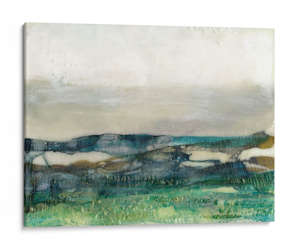 Sumérgete en la serenidad de 'Aqua Hills I', una obra de arte contemporáneo de Jennifer Goldberger que captura la esencia de un paisaje etéreo. Este cuadro decorativo presenta una paleta de colores que transita suavemente entre tonos tierra, verdes profundos y azules acuáticos, evocando la calma de la naturaleza. Las formas abstractas y texturas ricas invitan a la contemplación, creando un ambiente de paz y armonía en cualquier espacio. La composición, que sugiere colinas ondulantes bajo un cielo brumoso, es ideal para aquellos que buscan infundir tranquilidad en su hogar u oficina. Los detalles sutiles y las capas de color crean profundidad y movimiento, haciendo de 'Aqua Hills I' una pieza cautivadora que complementa a la perfección estilos de decoración modernos, minimalistas o escandinavos. Añade un toque de sofisticación y serenidad a tu pared con esta pieza única que inspira contemplación y bienestar.