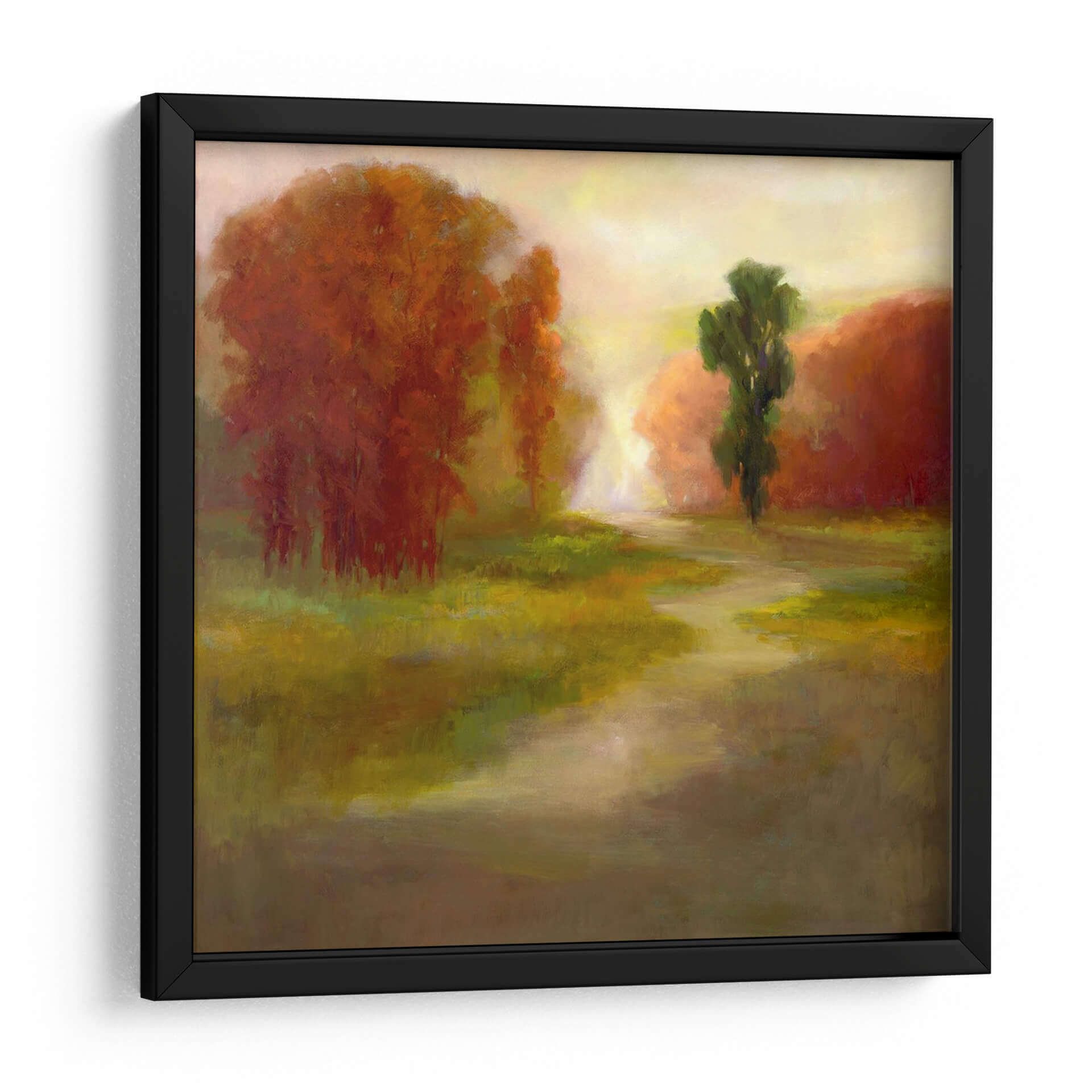 Adéntrate en la serena belleza del otoño con este cautivador cuadro decorativo, "Árboles de Otoño", de Sheila Finch. Esta obra de arte captura la esencia de una estación de transición, donde los vibrantes tonos rojizos y anaranjados de los árboles se funden con el verde exuberante de la hierba y el suave brillo de un cielo crepuscular. La composición, que evoca un camino serpenteante a través de un paisaje boscoso, invita a la contemplación y a la introspección. El uso magistral del color y la luz crea una atmósfera de calidez y tranquilidad, perfecta para añadir un toque de naturaleza y serenidad a tu hogar u oficina. Imagina este cuadro decorativo como un punto focal en tu sala de estar, aportando una sensación de paz, o como una ventana a un mundo natural y acogedor en tu dormitorio. Las pinceladas evocan un estilo impresionista, centrándose en la impresión general de la escena más que en los detalles precisos, lo que resulta en una pieza de arte moderno y atemporal. "Árboles de Otoño" es más que una simple decoración; es una invitación a experimentar la belleza efímera de la naturaleza y a encontrar un refugio de calma en tu propio espacio vital. Ideal para quienes buscan arte de pared que inspire reflexión y conecte con el ciclo de la vida.