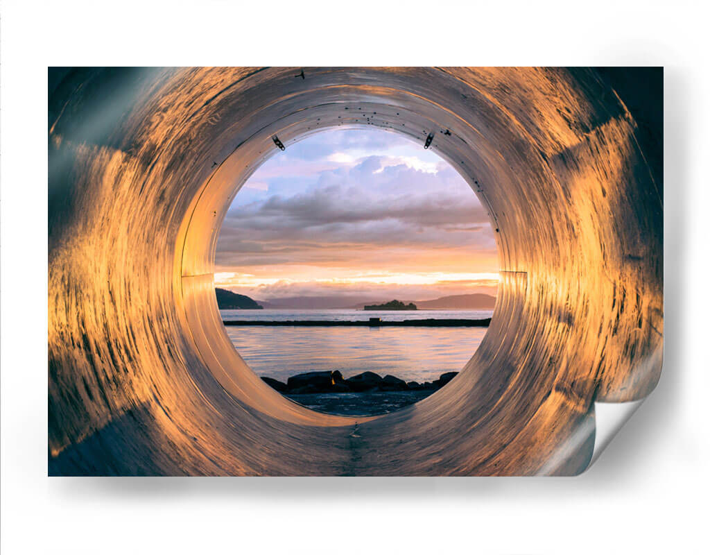 Emb rquese en un viaje visual con "Atardecer Radial", un cuadro decorativo que captura la esencia de un momento efímero y transformador. Esta obra maestra presenta una perspectiva única, enmarcada por una estructura circular que se asemeja a un túnel, invitando al espectador a asomarse a un horizonte sereno. El cielo, pintado con una paleta de tonos pastel que van desde el lila y el rosa hasta el naranja suave, est á adornado con nubes que sugieren el final de un da o el comienzo de uno nuevo. La luz dorada del atardecer ba a el mar en calma, creando reflejos hipn óticos sobre el agua y las rocas en primer plano. La textura de la estructura circundante, con sus sombras y brillos, a ade profundidad y un toque industrial a la escena, contrastando bellamente con la tranquilidad natural del paisaje. Este cuadro decorativo es perfecto para inspirar contemplaci y calma, ideal para salones modernos, dormitorios que buscan serenidad, o incluso oficinas que desean un toque de inspiraci n. "Atardecer Radial" no es solo una imagen, es una invitaci a la reflexi y a la apreciaci de la belleza en los detalles, un punto focal que transformar cualquier espacio en un santuario de paz y est tica.