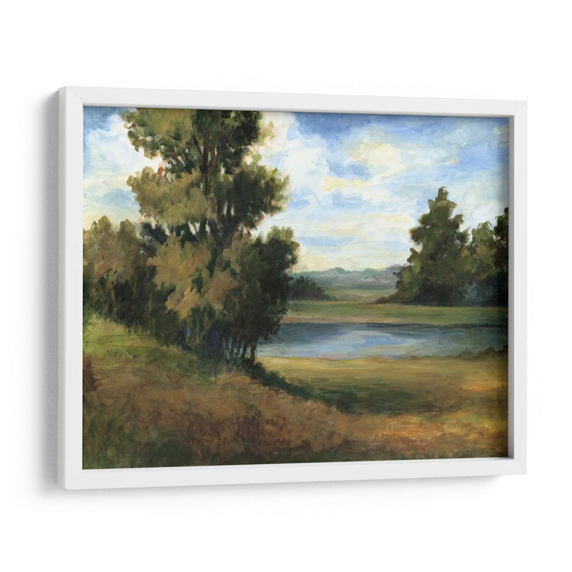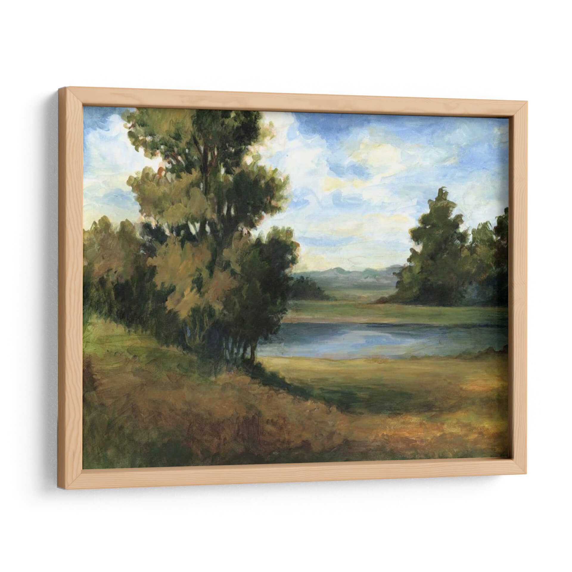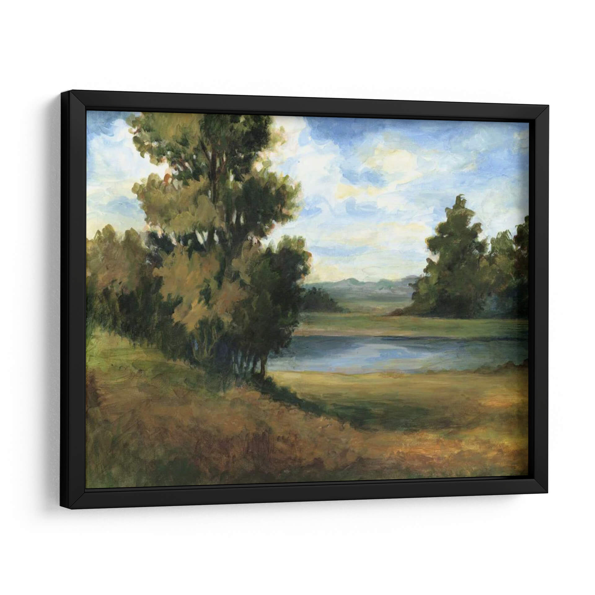 Sumérgete en la serenidad del campo con "Auburn Meadow", una obra de arte que captura la belleza atemporal de un paisaje rural. Este cuadro decorativo te transporta a un prado bañado por la luz del sol, donde un sereno lago refleja el cielo azul y las nubes algodonosas. La composición, dominada por la exuberante vegetación de árboles frondosos y la textura rica de la hierba, evoca una sensación de paz y conexión con la naturaleza. La paleta de colores, rica en tonos tierra, verdes profundos y azules celestes, crea una atmósfera cálida y acogedora, perfecta para cualquier espacio que busque un toque de tranquilidad y belleza natural. El estilo impresionista, con pinceladas visibles y una representación atmosférica, añade profundidad y movimiento a la escena. "Auburn Meadow" es ideal para quienes buscan un cuadro decorativo que insufla calma a un dormitorio, un toque de frescura a una sala de estar, o un ambiente sereno a una oficina. Transforma tu hogar en un refugio de paz con esta pieza artística que celebra la majestuosidad del mundo natural, un lienzo que invita a la contemplación y al disfrute de la vida.