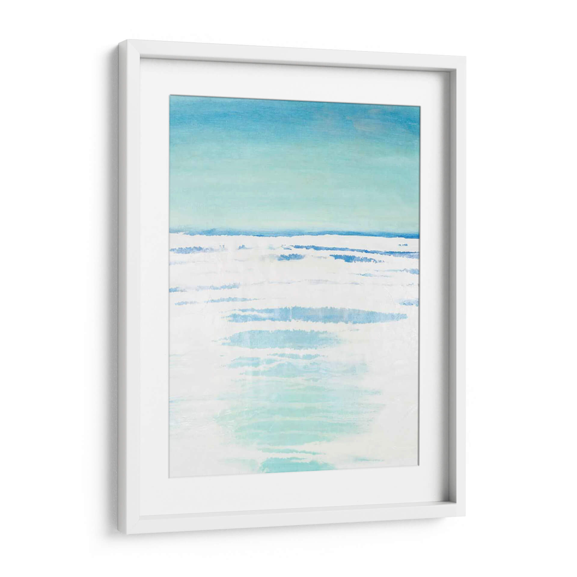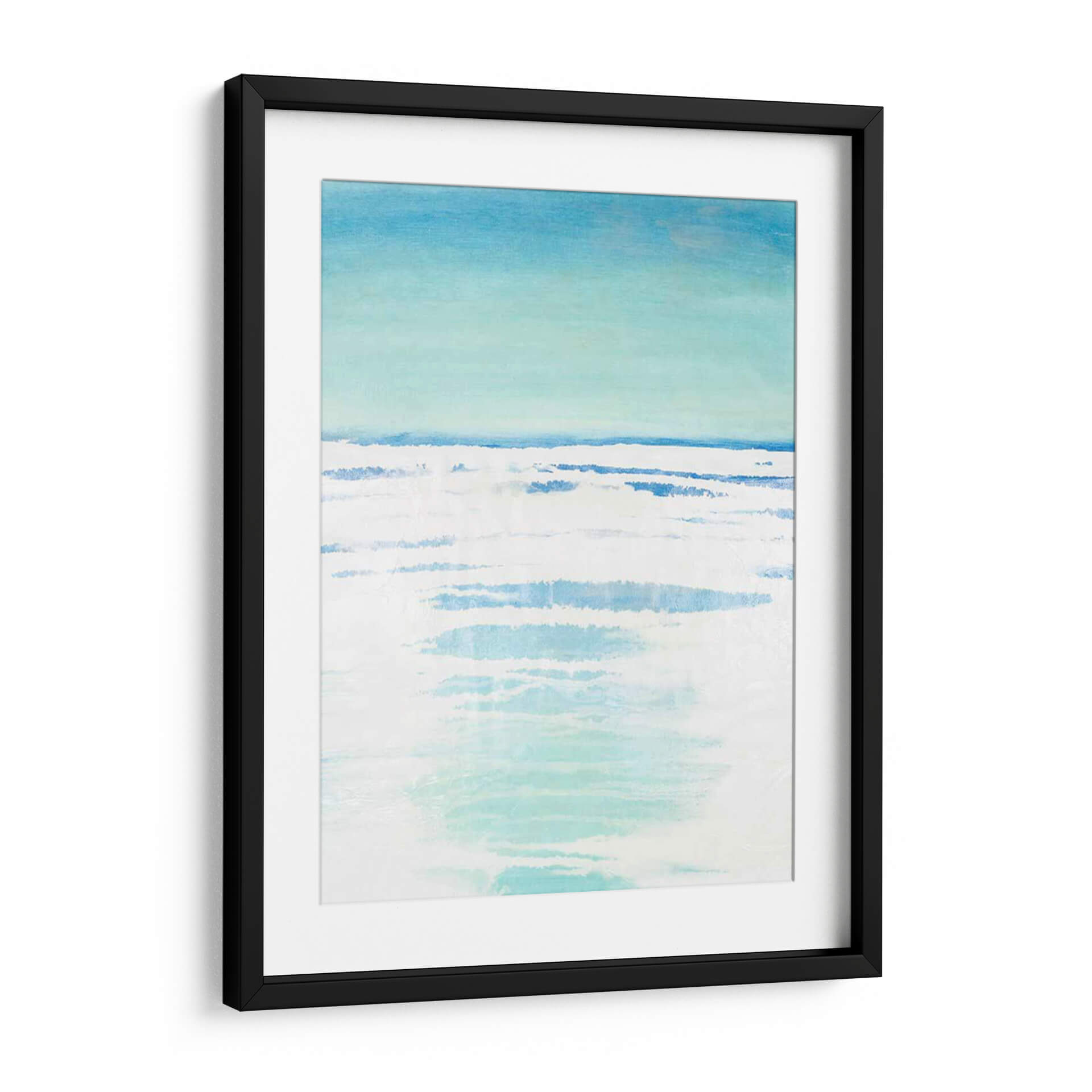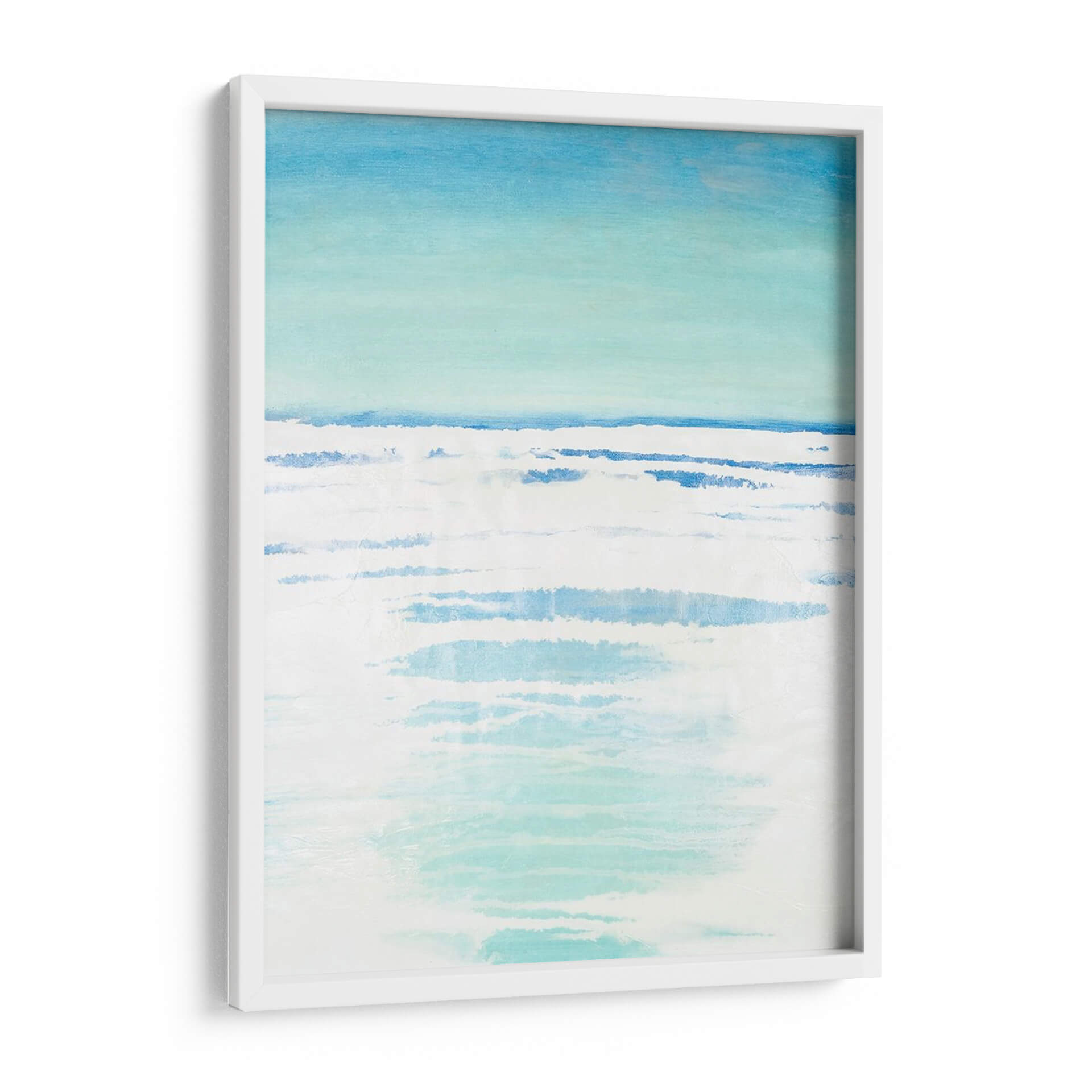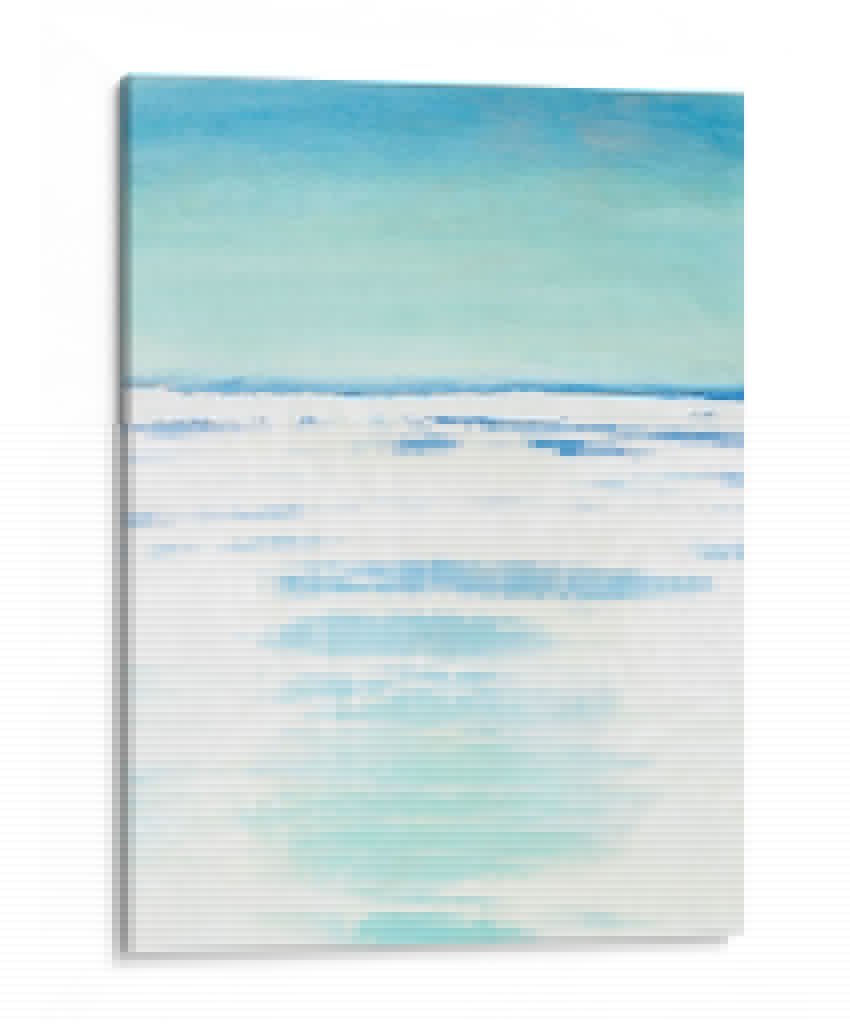 Sumérgete en la serenidad de "Bancos Exteriores II", una obra de arte abstracto que evoca la tranquilidad de un paisaje costero. Con una paleta de colores suaves que transitan del azul cielo a tonos turquesa y blancos puros, este cuadro decorativo captura la esencia del mar en un día sereno. Las pinceladas sueltas y las capas de color crean una sensación de movimiento y profundidad, similar a las olas rompiendo suavemente en la orilla o al reflejo de la luz sobre el agua. El estilo minimalista y la composición etérea invitan a la contemplación y la calma, convirtiéndola en una pieza ideal para añadir un toque de paz a tu hogar u oficina. Imagina este cuadro decorativo como un portal a un espacio de relajación, perfecto para dormitorios, salas de estar o cualquier rincón donde busques inspiración y serenidad. La obra de Vanna Lam es una invitación a desconectar y encontrar la belleza en la simplicidad y la armonía de la naturaleza, aportando una atmósfera de frescura y bienestar a cualquier ambiente.