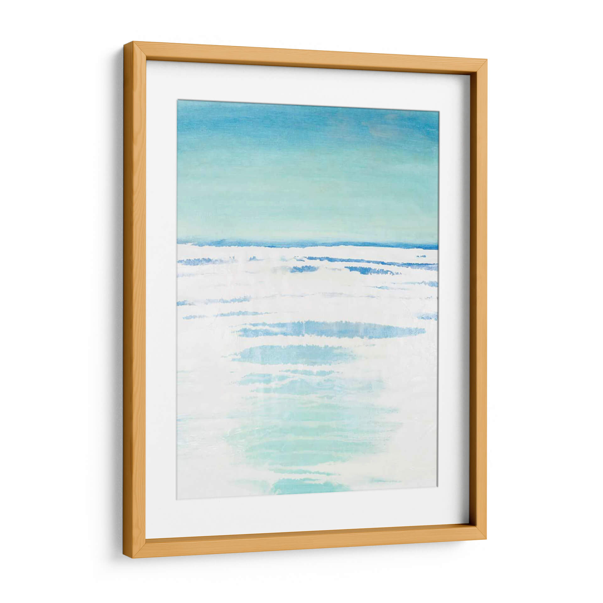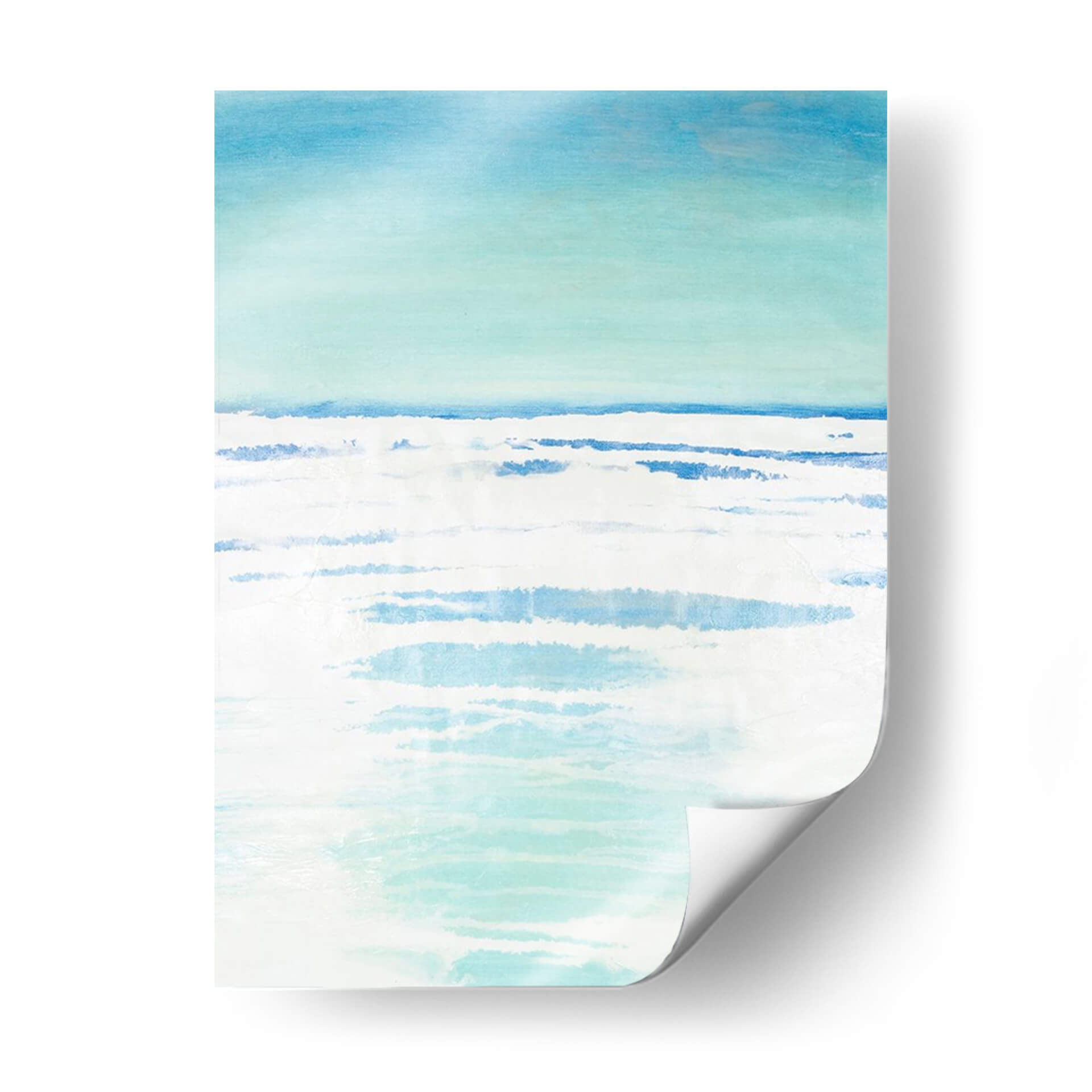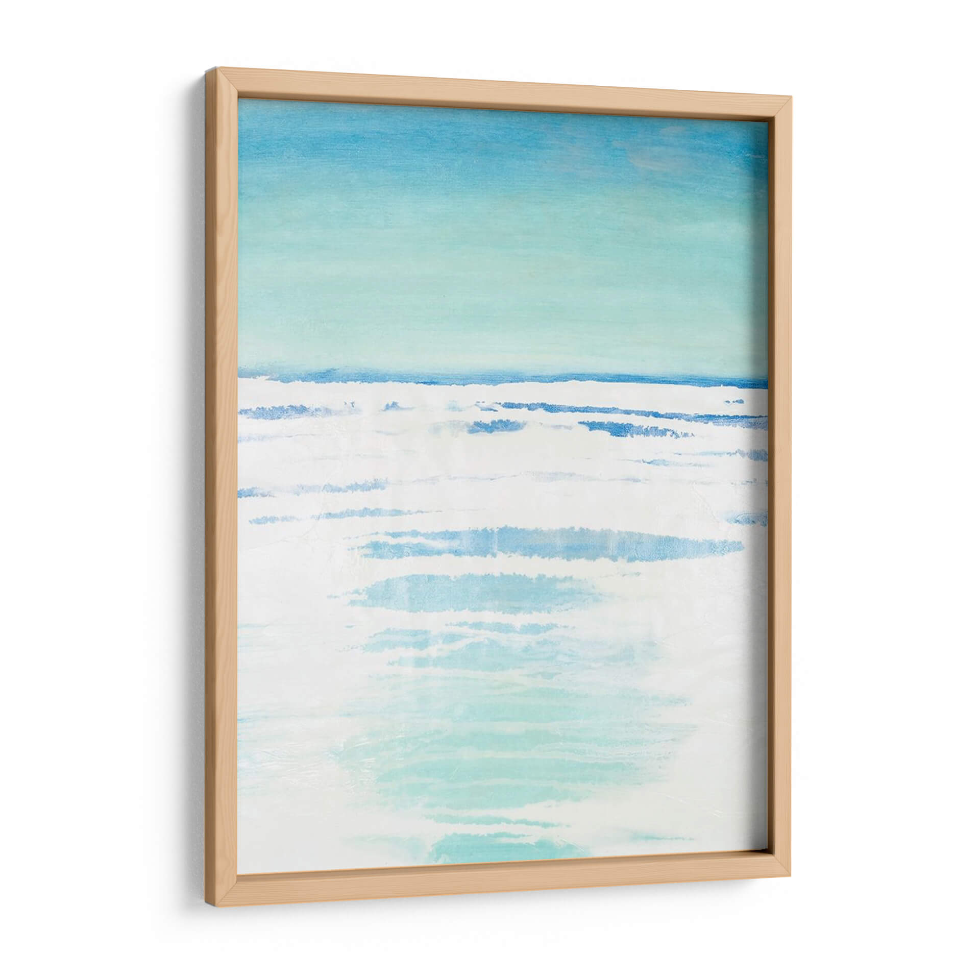 Sumérgete en la serenidad de "Bancos Exteriores II", una obra de arte abstracto que evoca la tranquilidad de un paisaje costero. Con una paleta de colores suaves que transitan del azul cielo a tonos turquesa y blancos puros, este cuadro decorativo captura la esencia del mar en un día sereno. Las pinceladas sueltas y las capas de color crean una sensación de movimiento y profundidad, similar a las olas rompiendo suavemente en la orilla o al reflejo de la luz sobre el agua. El estilo minimalista y la composición etérea invitan a la contemplación y la calma, convirtiéndola en una pieza ideal para añadir un toque de paz a tu hogar u oficina. Imagina este cuadro decorativo como un portal a un espacio de relajación, perfecto para dormitorios, salas de estar o cualquier rincón donde busques inspiración y serenidad. La obra de Vanna Lam es una invitación a desconectar y encontrar la belleza en la simplicidad y la armonía de la naturaleza, aportando una atmósfera de frescura y bienestar a cualquier ambiente.