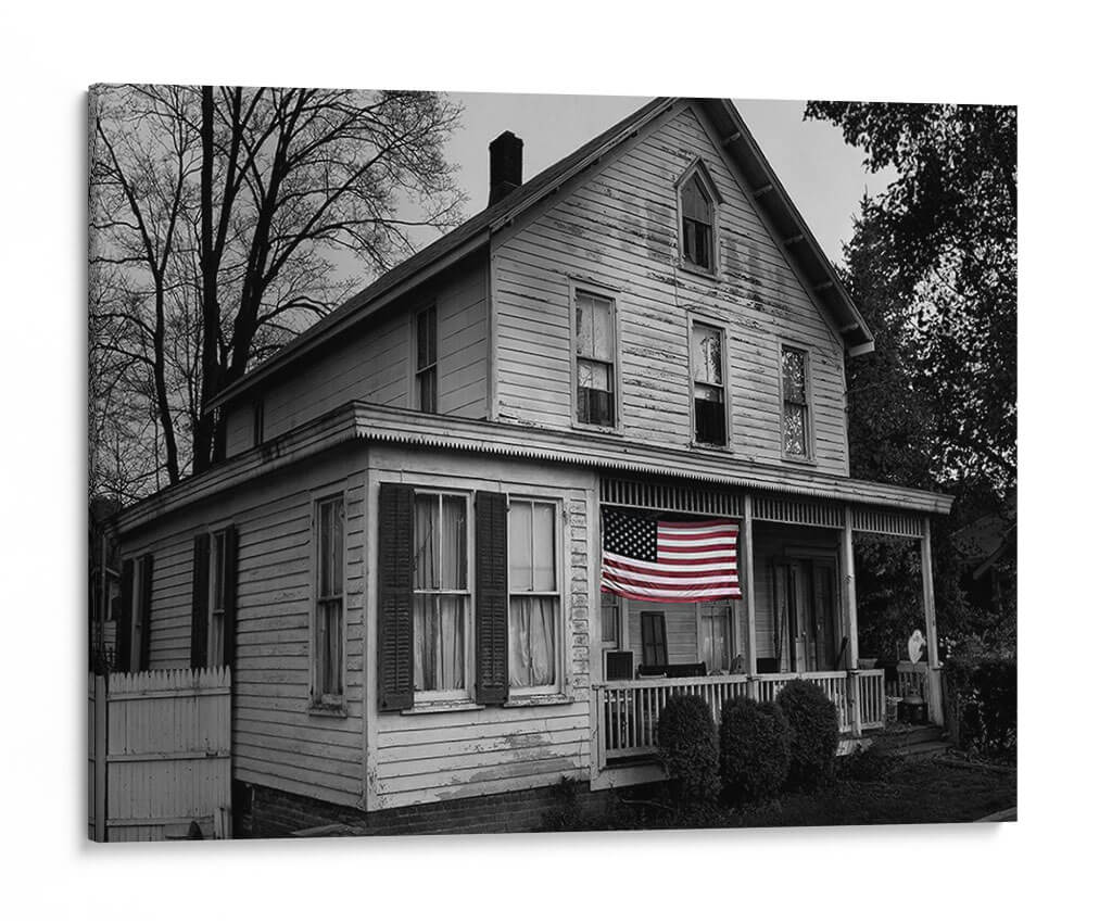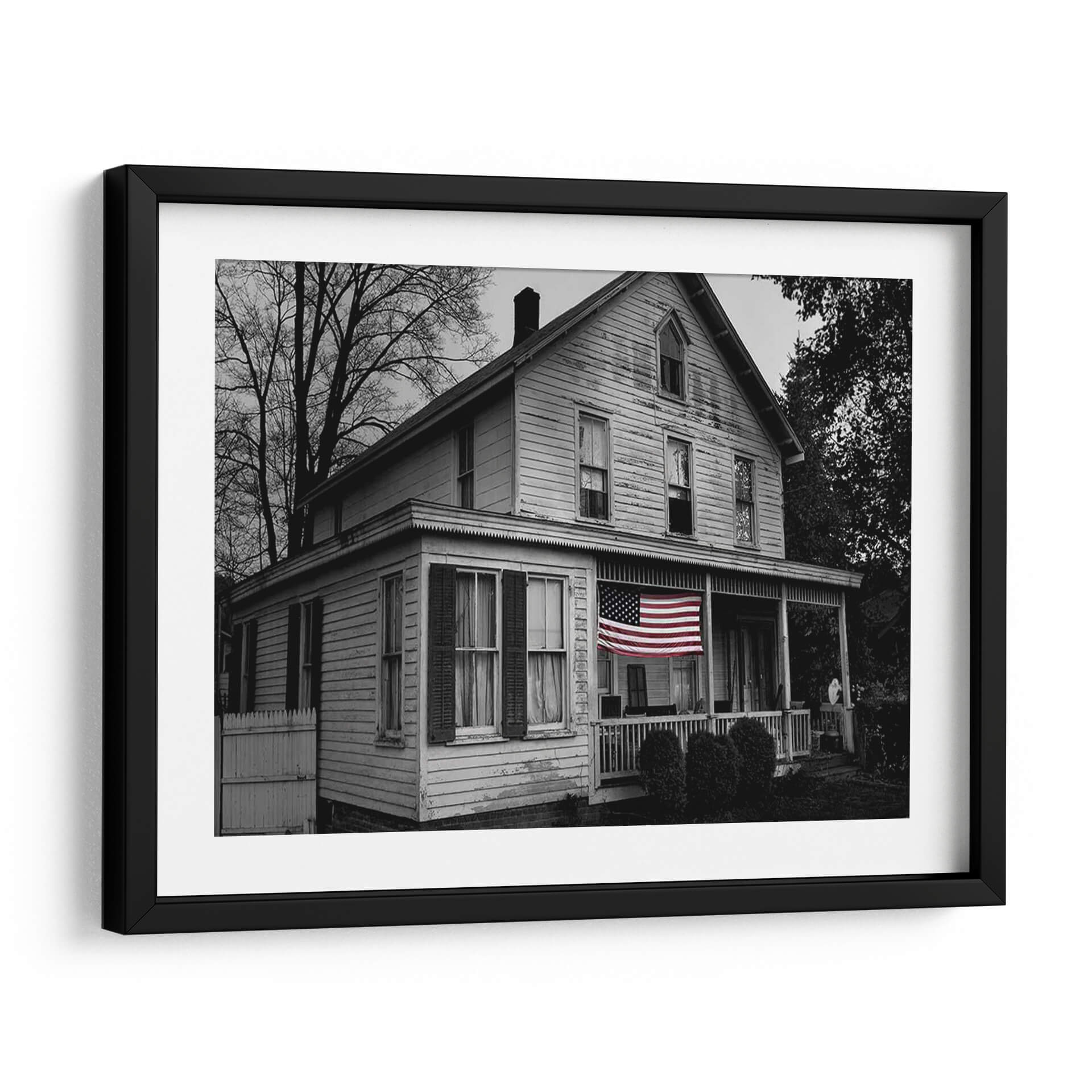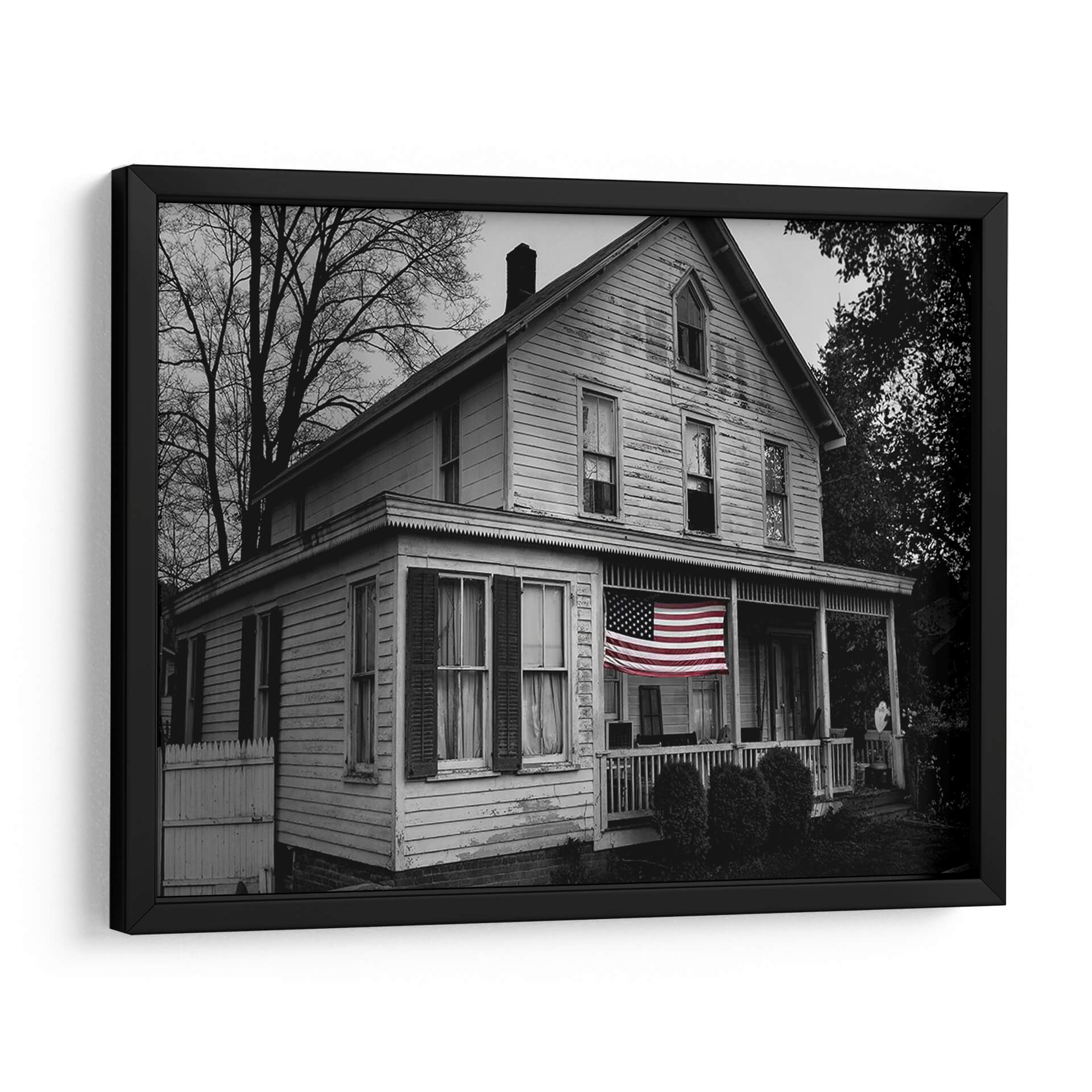 Sumérgete en la nostalgia y el orgullo patriótico con "Banderas De Nuestros Agricultores I" de James McLoughlin, una obra de arte que evoca la esencia de la vida rural y el espíritu americano. Este cuadro decorativo presenta una casa antigua de madera, desgastada por el tiempo, con una bandera estadounidense ondeando orgullosamente en el porche. La paleta de colores en escala de grises, contrastada con los vibrantes rojos, blancos y azules de la bandera, crea un impacto visual potente y emotivo. La composición, que centra la atención en la fachada de la casa y su porch, sugiere historias de generaciones pasadas y la perdurabilidad de los valores. La atmósfera es a la vez melancólica y esperanzadora, capturando la resiliencia y la belleza de lo cotidiano. Ideal para quienes buscan añadir un toque de carácter y significado a su hogar u oficina, este cuadro decorativo se convierte en un punto focal que invita a la reflexión y al aprecio por las raíces. Una pieza que habla de historia, comunidad y la fuerza de una nación, perfecta para salones, estudios o comedores que buscan una declaración de identidad y estilo.