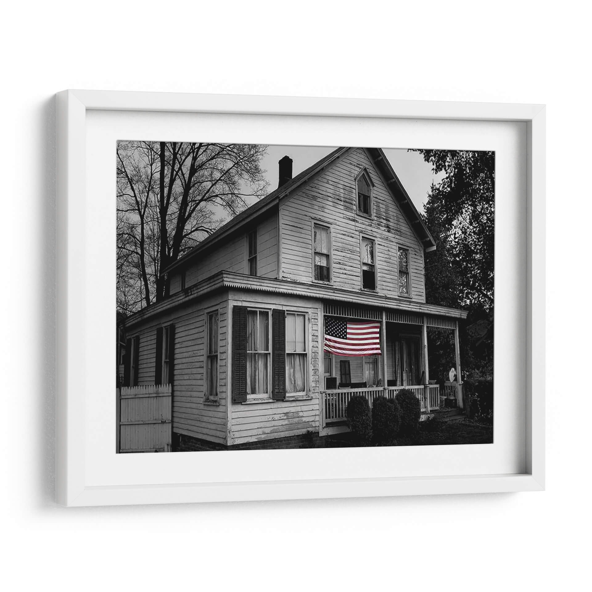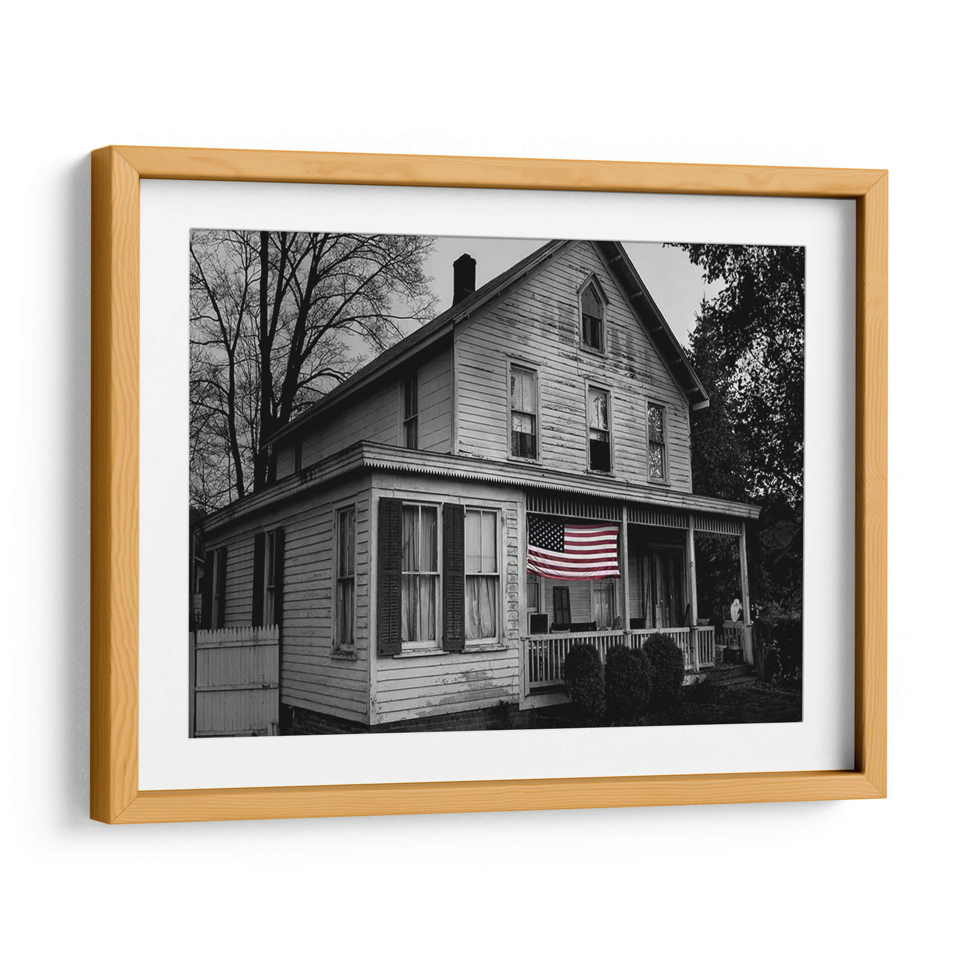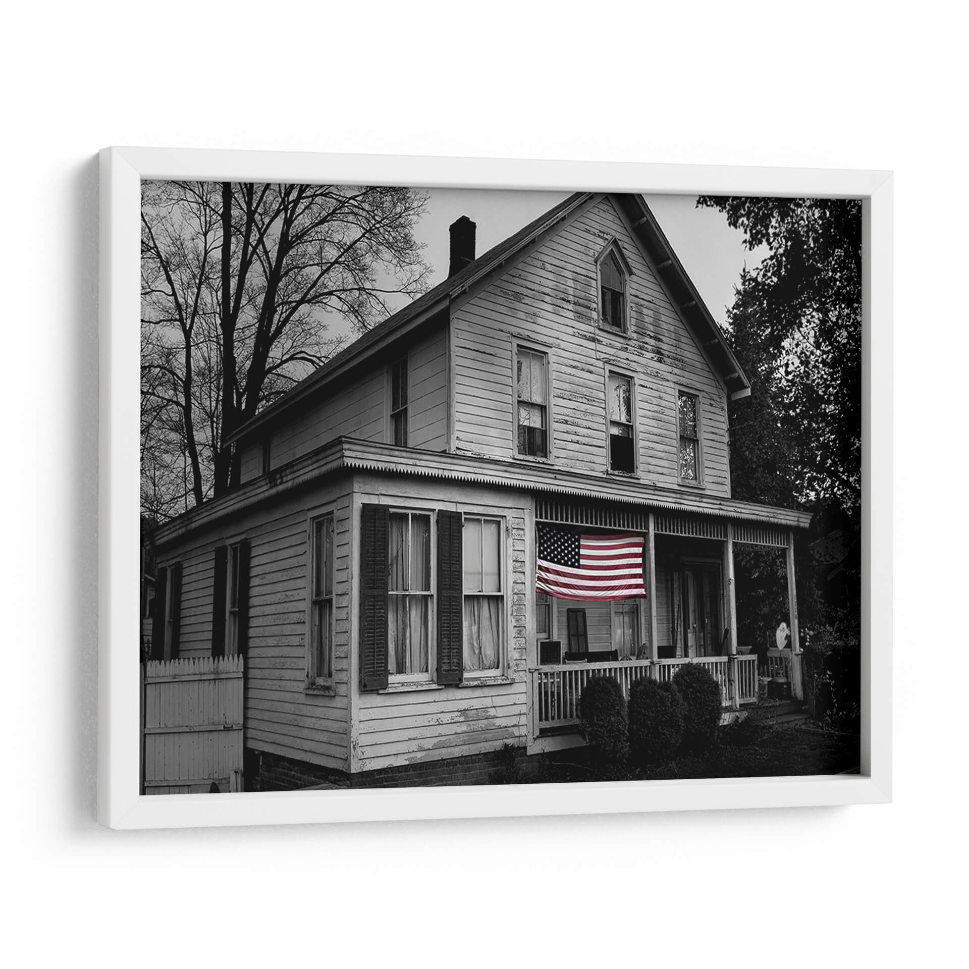 Sumérgete en la nostalgia y el orgullo patriótico con "Banderas De Nuestros Agricultores I" de James McLoughlin, una obra de arte que evoca la esencia de la vida rural y el espíritu americano. Este cuadro decorativo presenta una casa antigua de madera, desgastada por el tiempo, con una bandera estadounidense ondeando orgullosamente en el porche. La paleta de colores en escala de grises, contrastada con los vibrantes rojos, blancos y azules de la bandera, crea un impacto visual potente y emotivo. La composición, que centra la atención en la fachada de la casa y su porch, sugiere historias de generaciones pasadas y la perdurabilidad de los valores. La atmósfera es a la vez melancólica y esperanzadora, capturando la resiliencia y la belleza de lo cotidiano. Ideal para quienes buscan añadir un toque de carácter y significado a su hogar u oficina, este cuadro decorativo se convierte en un punto focal que invita a la reflexión y al aprecio por las raíces. Una pieza que habla de historia, comunidad y la fuerza de una nación, perfecta para salones, estudios o comedores que buscan una declaración de identidad y estilo.