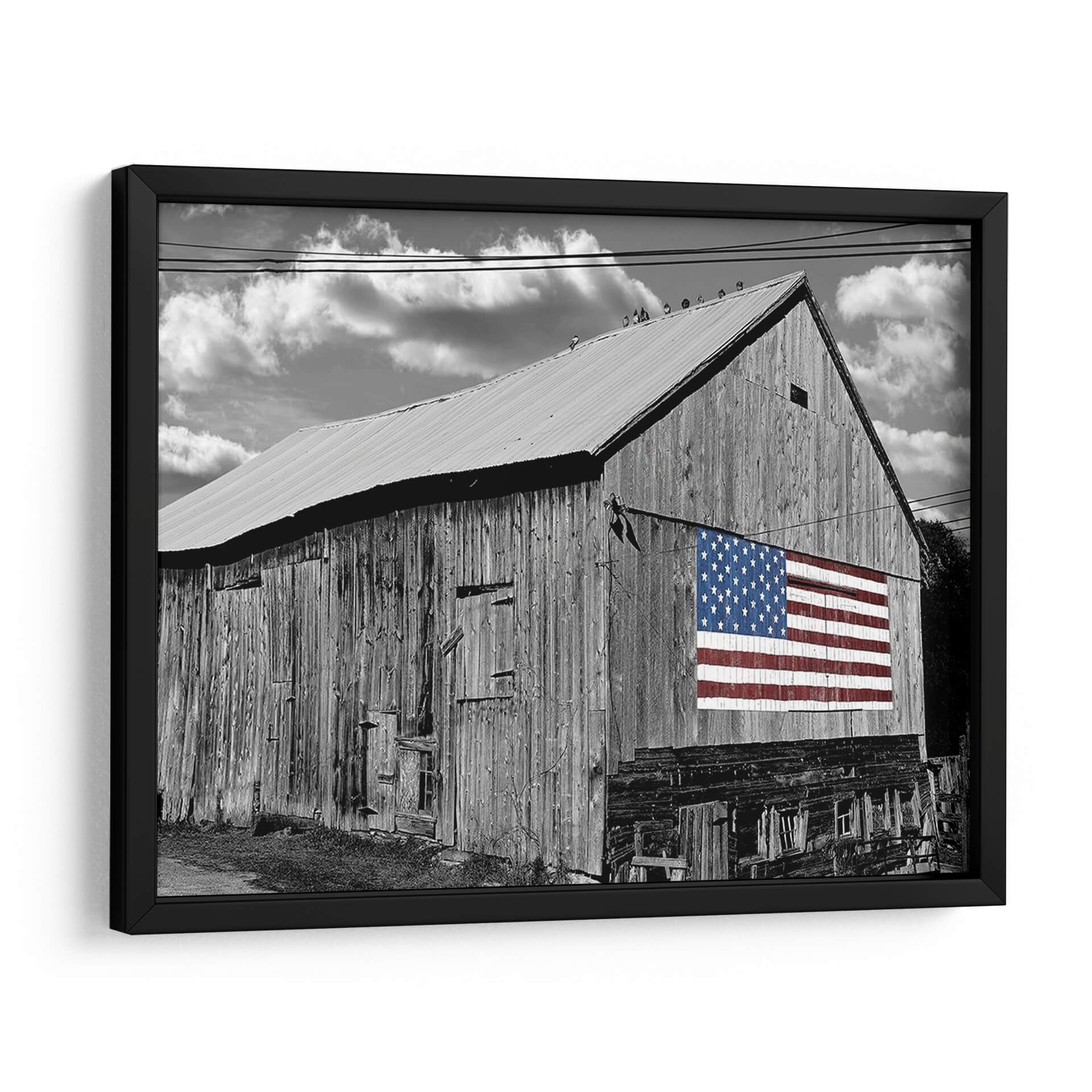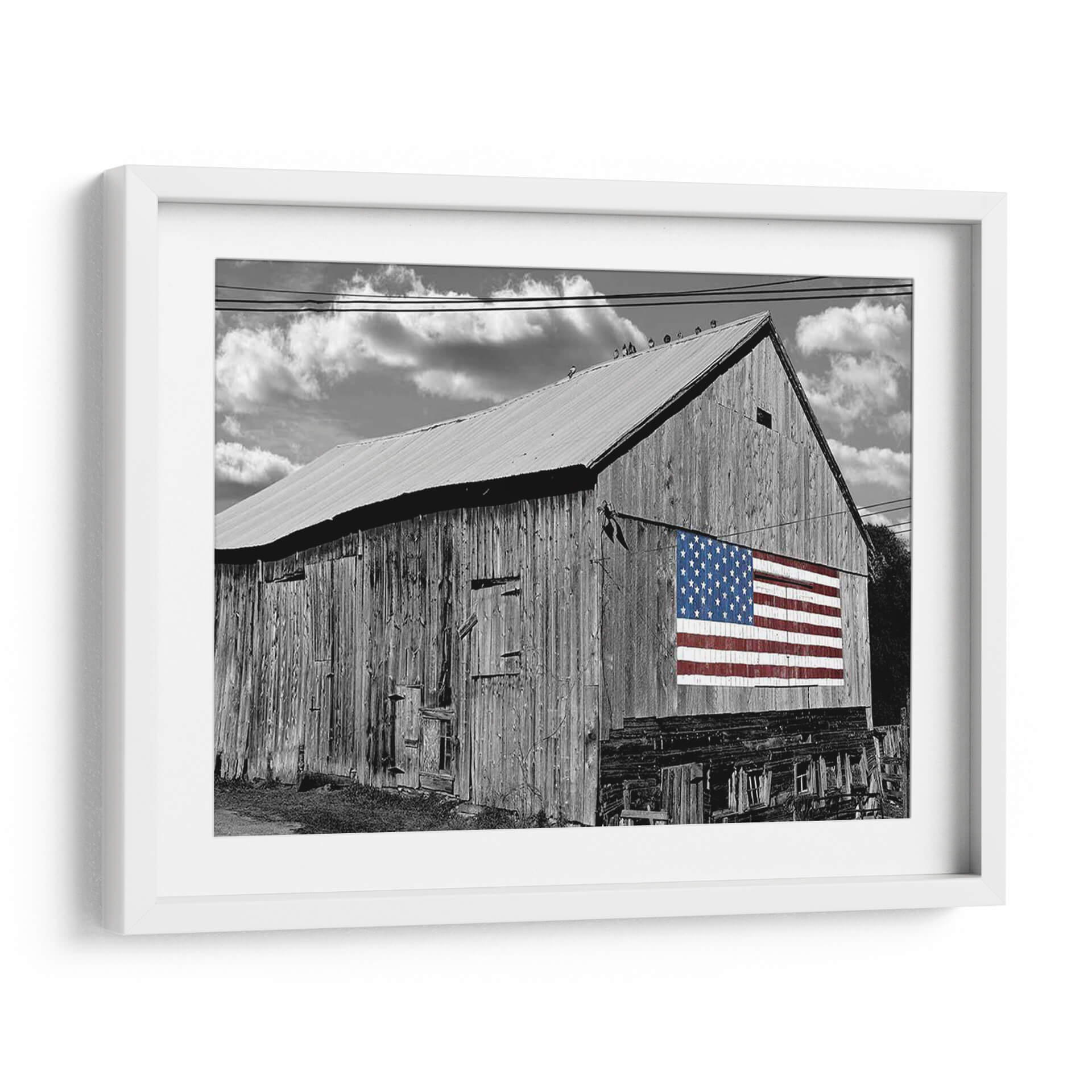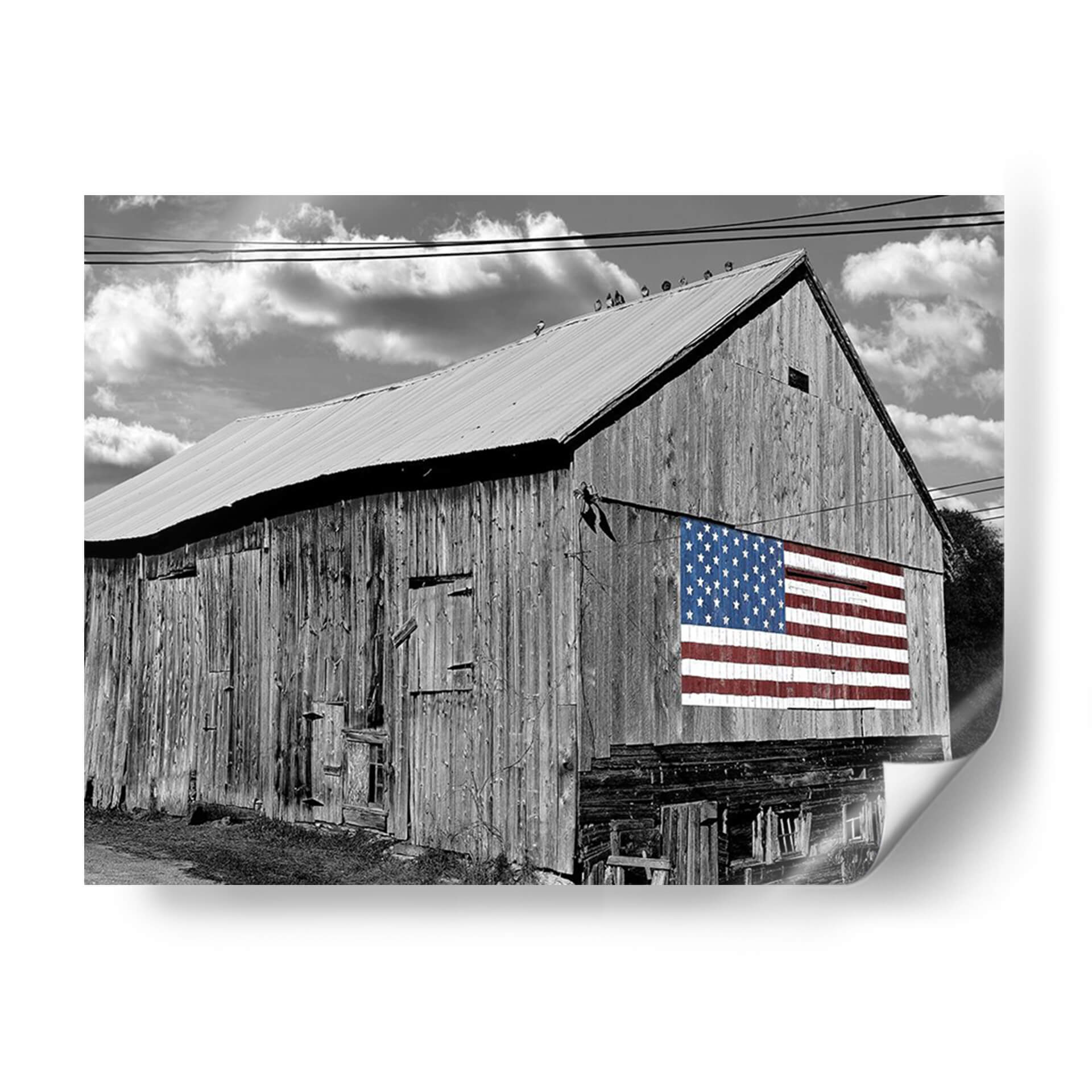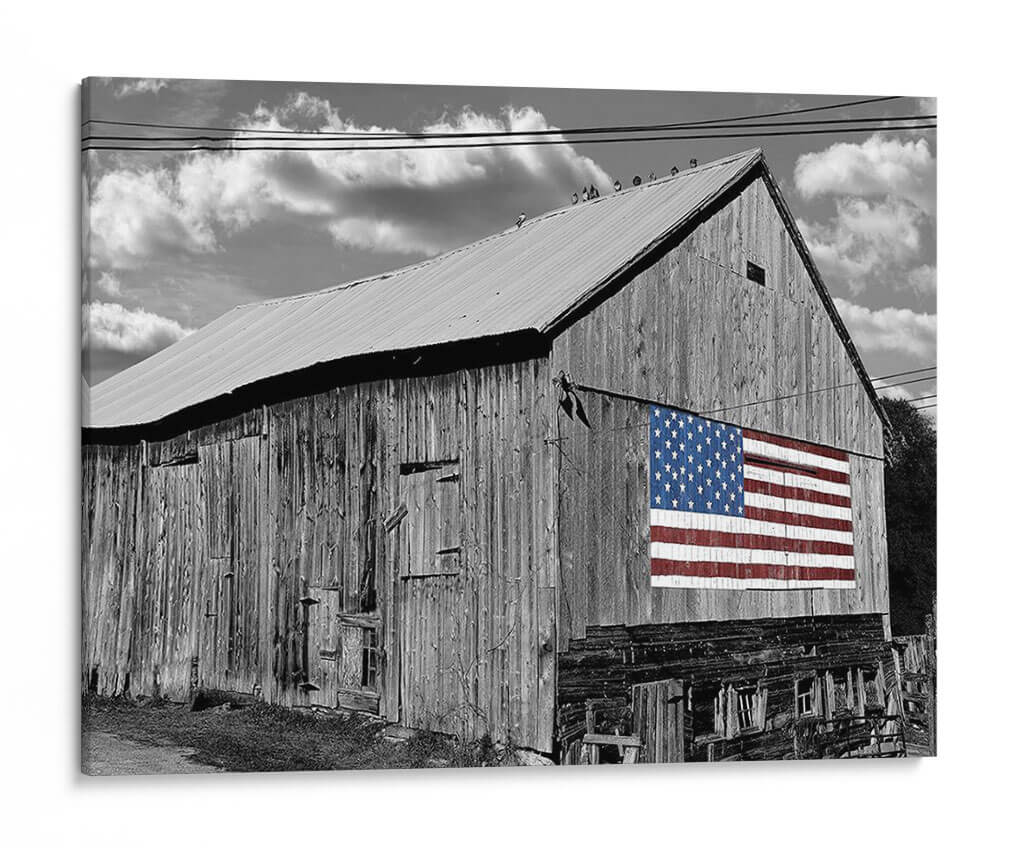 Sumérgete en la nostalgia y el orgullo americano con este evocador cuadro decorativo, 'Banderas De Nuestros Agricultores Iv' de James McLoughlin. La obra presenta un imponente granero de madera en blanco y negro, cuyas vetustas tablillas cuentan historias de trabajo duro y legado. Destacando sobre la rústica fachada, una vibrante bandera estadounidense en color irrumpe con fuerza, creando un contraste visual impactante y un potente símbolo de unidad y patriotismo. Las nubes dramatizadas en el cielo nublado añaden una capa de profundidad y carácter, complementando la textura cruda del granero y el detallado patrón de estrellas y franjas. Este cuadro decorativo es perfecto para aquellos que aprecian la belleza de lo rústico y el significado cultural de la bandera. Ideal para añadir un toque de historia y carácter a salas de estar, estudios o espacios que celebren la identidad americana. Transforma tu hogar en un santuario de inspiración y tradición con esta pieza única.