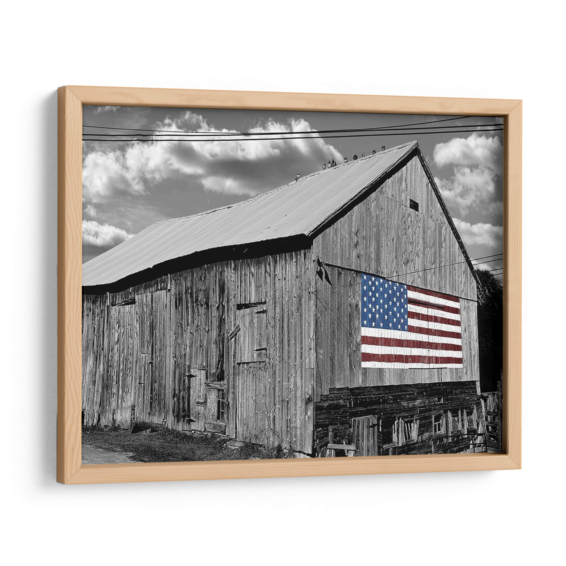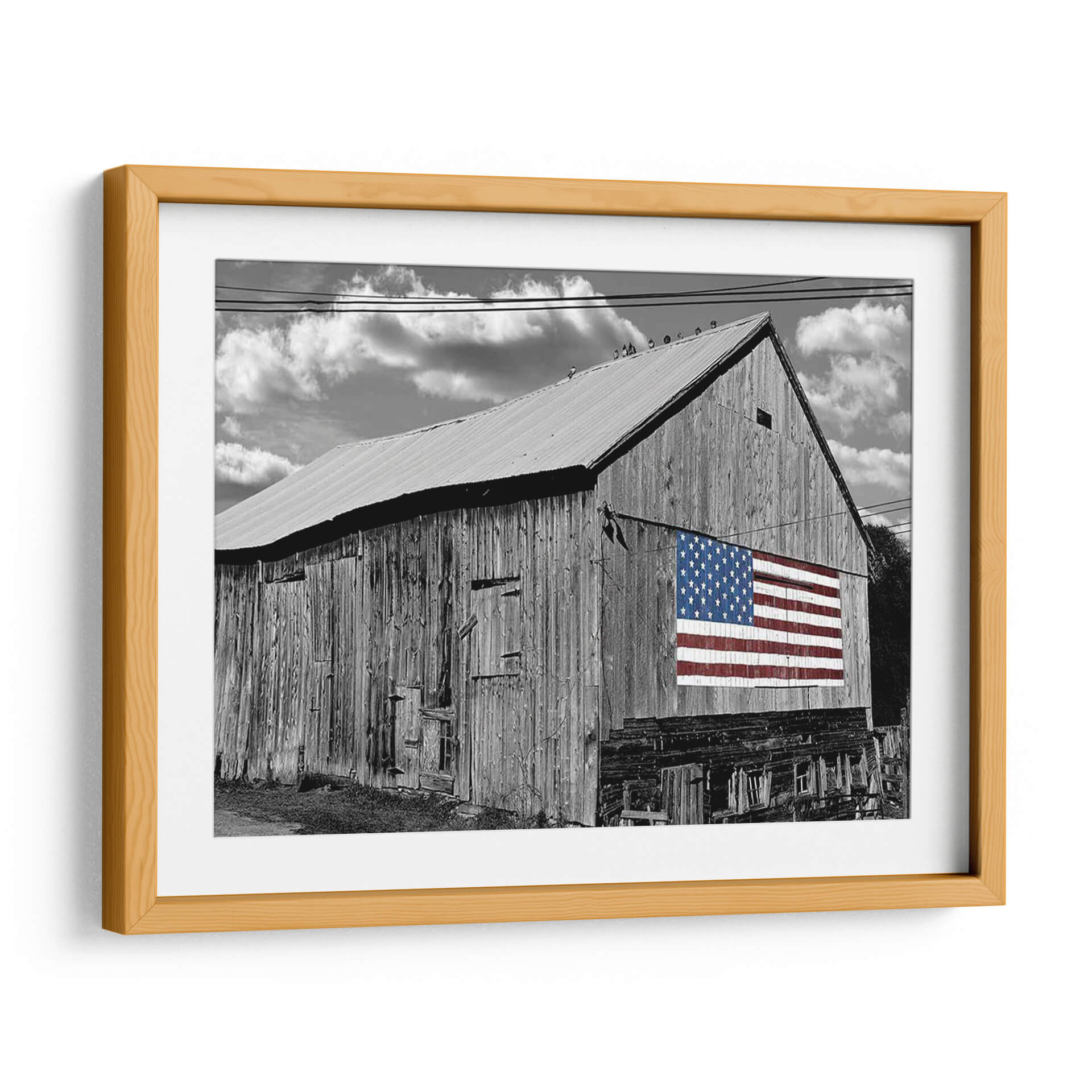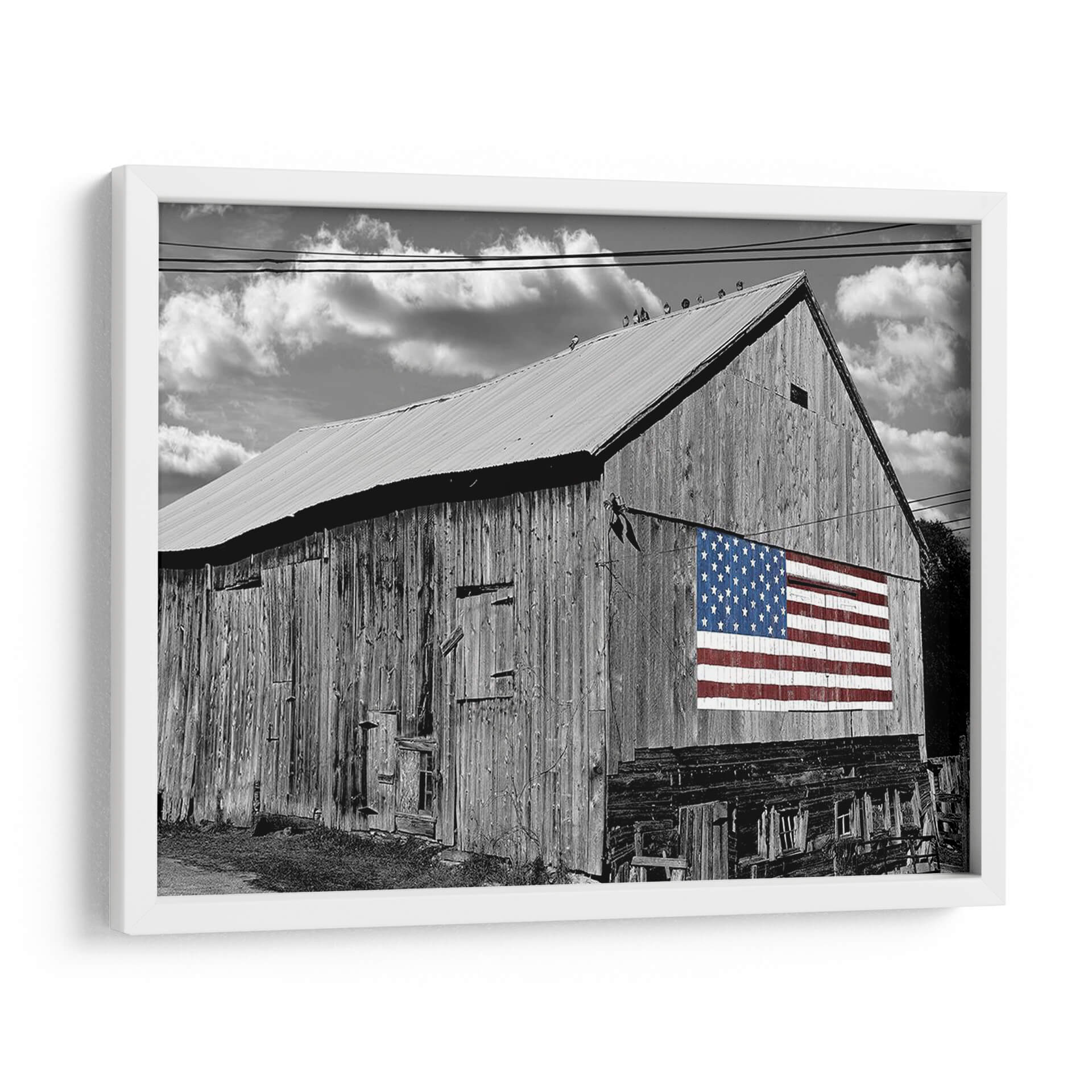 Sumérgete en la nostalgia y el orgullo americano con este evocador cuadro decorativo, 'Banderas De Nuestros Agricultores Iv' de James McLoughlin. La obra presenta un imponente granero de madera en blanco y negro, cuyas vetustas tablillas cuentan historias de trabajo duro y legado. Destacando sobre la rústica fachada, una vibrante bandera estadounidense en color irrumpe con fuerza, creando un contraste visual impactante y un potente símbolo de unidad y patriotismo. Las nubes dramatizadas en el cielo nublado añaden una capa de profundidad y carácter, complementando la textura cruda del granero y el detallado patrón de estrellas y franjas. Este cuadro decorativo es perfecto para aquellos que aprecian la belleza de lo rústico y el significado cultural de la bandera. Ideal para añadir un toque de historia y carácter a salas de estar, estudios o espacios que celebren la identidad americana. Transforma tu hogar en un santuario de inspiración y tradición con esta pieza única.