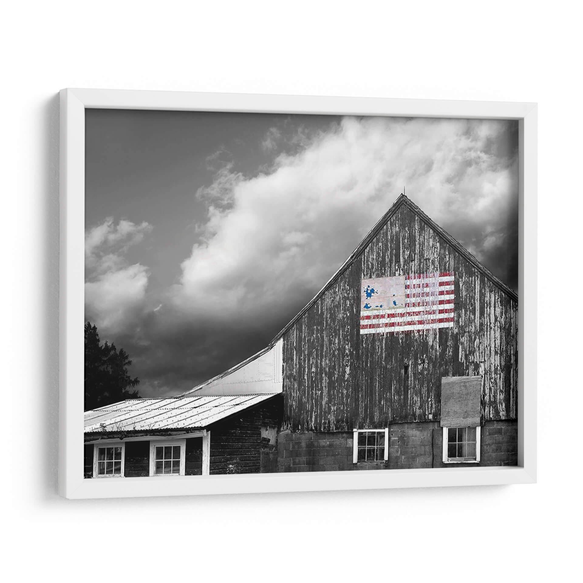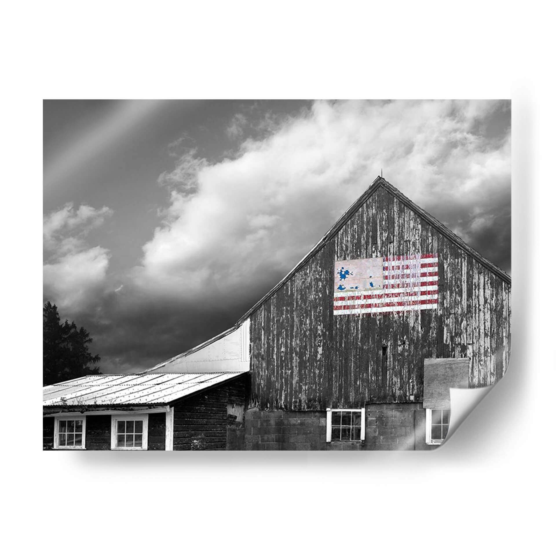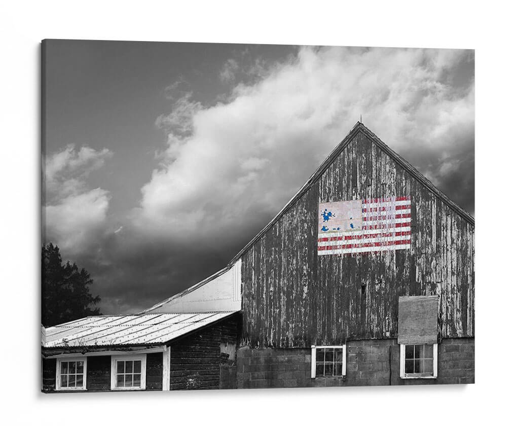 Este cautivador cuadro decorativo, "Banderas De Nuestros Agricultores Vii" de James McLoughlin, captura la esencia de la vida rural y el espíritu americano con una estética impactante. La obra presenta una granja de madera en tonos de gris, con texturas que evocan el paso del tiempo y la historia. Sobre la pared principal, un detalle de la bandera estadounidense, intervenida con pinceladas audaces en rojo y azul, añade un toque de color vibrante y un simbolismo patriótico. Las nubes dramáticas en el cielo crean una atmósfera de profundidad y carácter, mientras que las ventanas del granero y los detalles de la estructura aportan autenticidad a la escena. Este cuadro es ideal para quienes buscan infundir a sus espacios un sentido de herencia, fuerza y orgullo nacional. Su estilo rústico y contemporáneo lo hace perfecto para salas de estar, estudios o espacios que buscan un punto focal con historia y personalidad. Añade una pieza que habla de tradición y resiliencia, evocando paisajes americanos y la fuerza de sus orígenes.