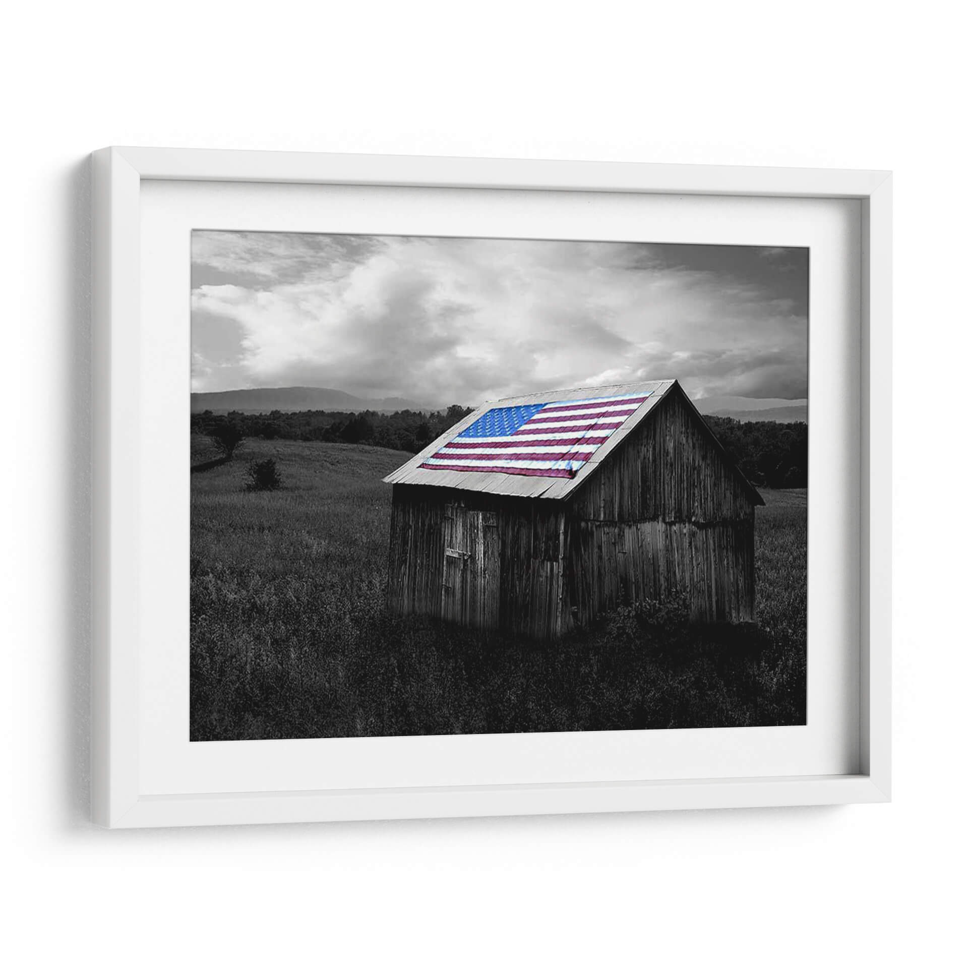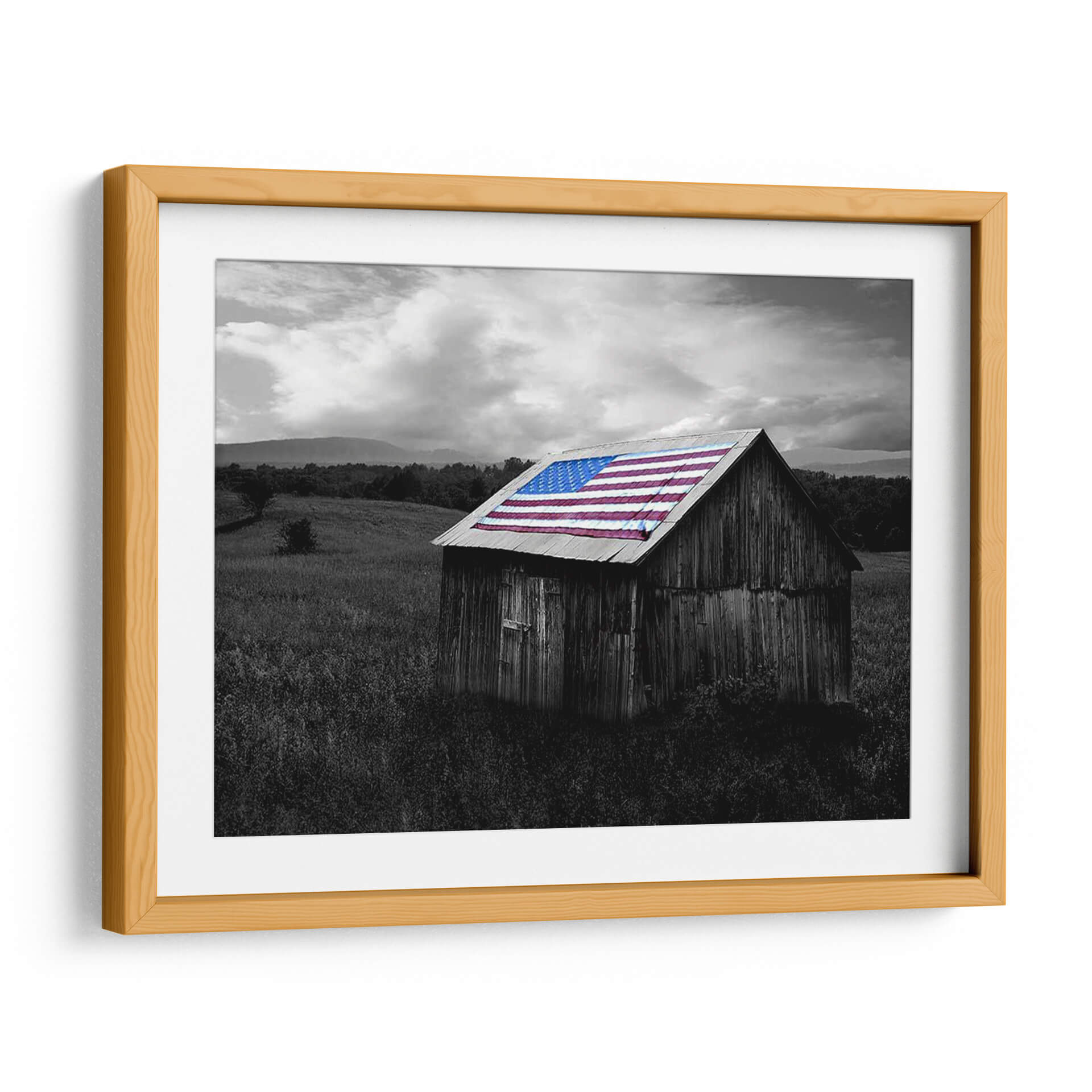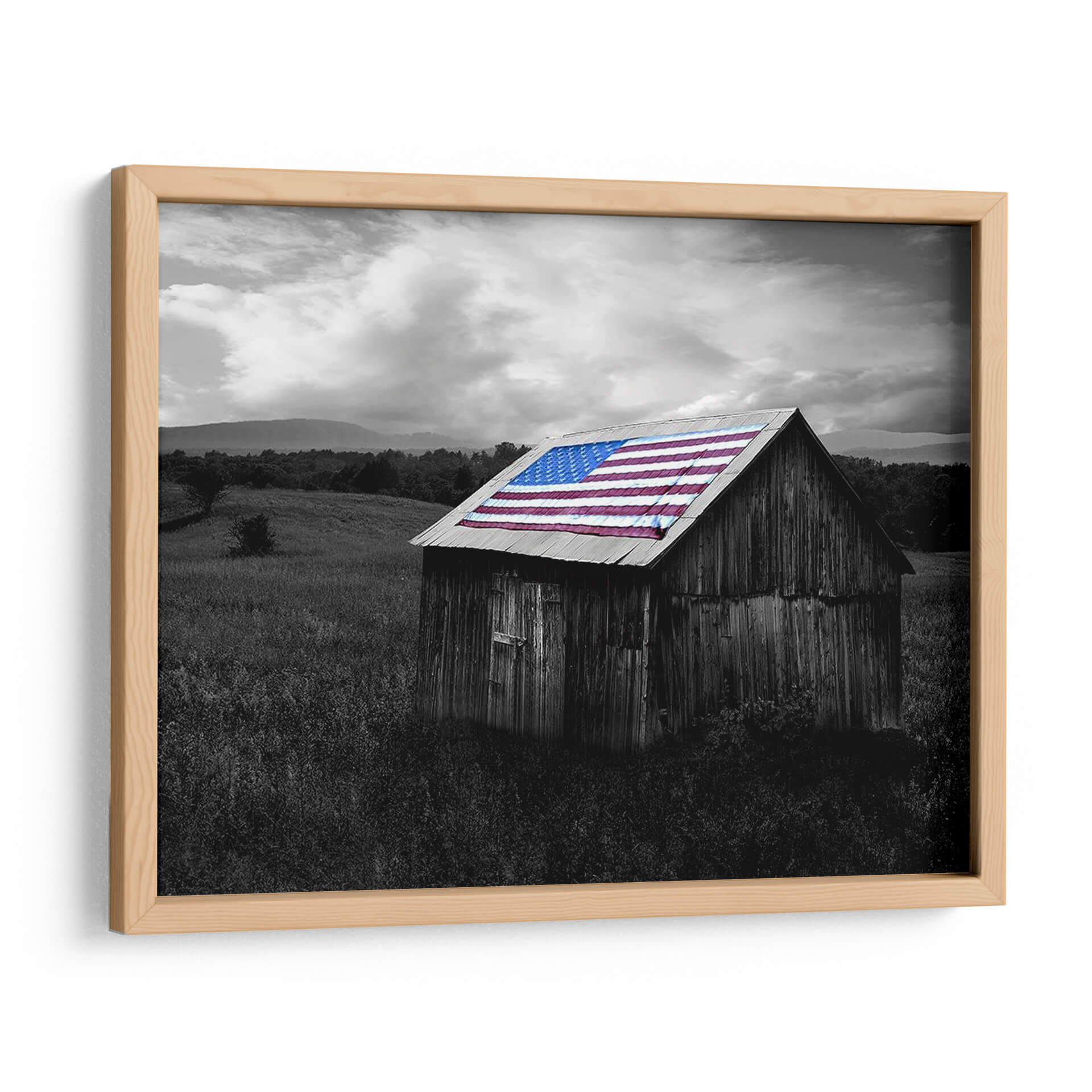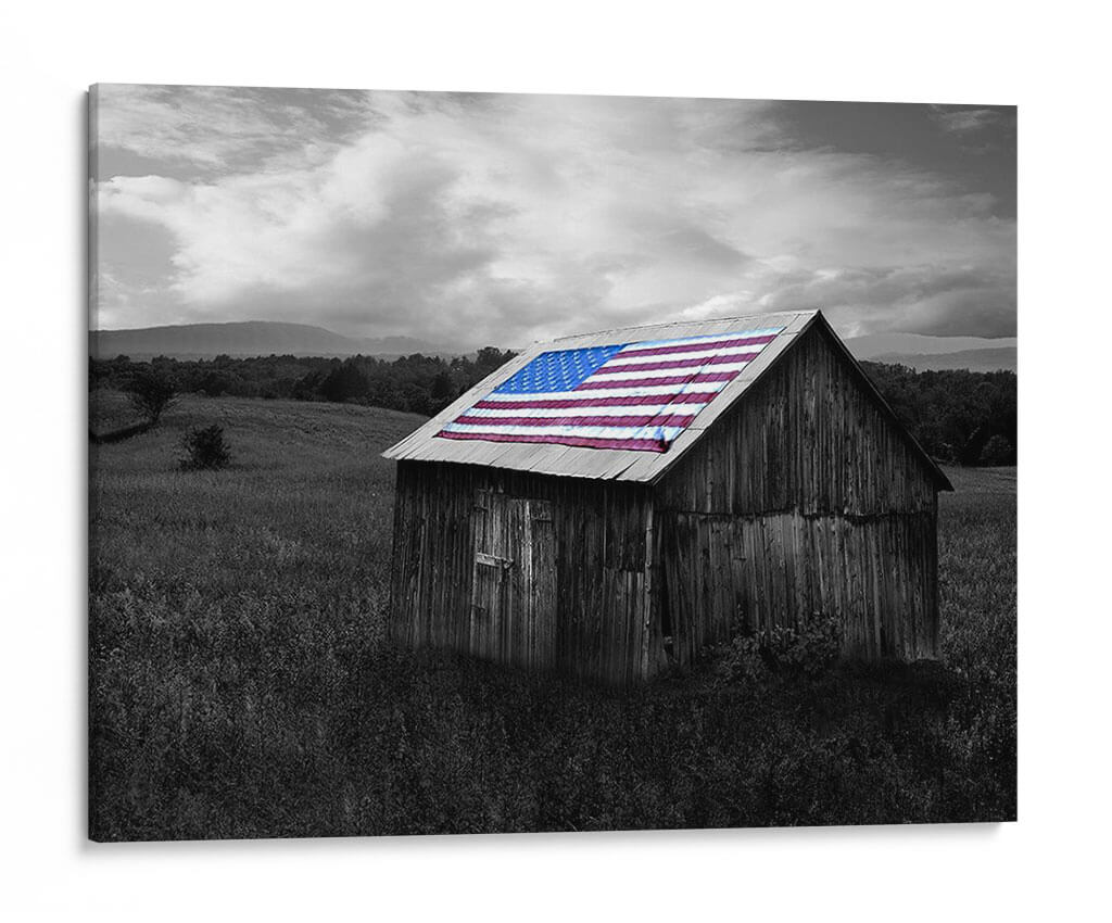 Este cautivador cuadro decorativo, "Banderas De Nuestros Agricultores Xii" de James McLoughlin, captura la esencia de la América rural con un giro visual impactante. La obra presenta una cabaña de madera rústica, representada en una paleta de grises y negros que evoca una sensación de nostalgia y atemporalidad. El contraste se intensifica con el techo de la cabaña, adornado de forma audaz con la bandera estadounidense, resaltando los vibrantes azules y rojos sobre el fondo monocromático. La composición, con el campo abierto y las colinas ondulantes en el horizonte, crea una atmósfera de serenidad y orgullo. Este cuadro es ideal para aquellos que buscan infundir a sus hogares u oficinas un sentido de identidad y conexión con las raíces. Su estilo, que combina elementos fotorrealistas con un toque de surrealismo conceptual, lo convierte en una pieza de conversación única. Perfecto para salas de estar, comedores o incluso espacios de trabajo que deseen una dosis de carácter y patriotismo.