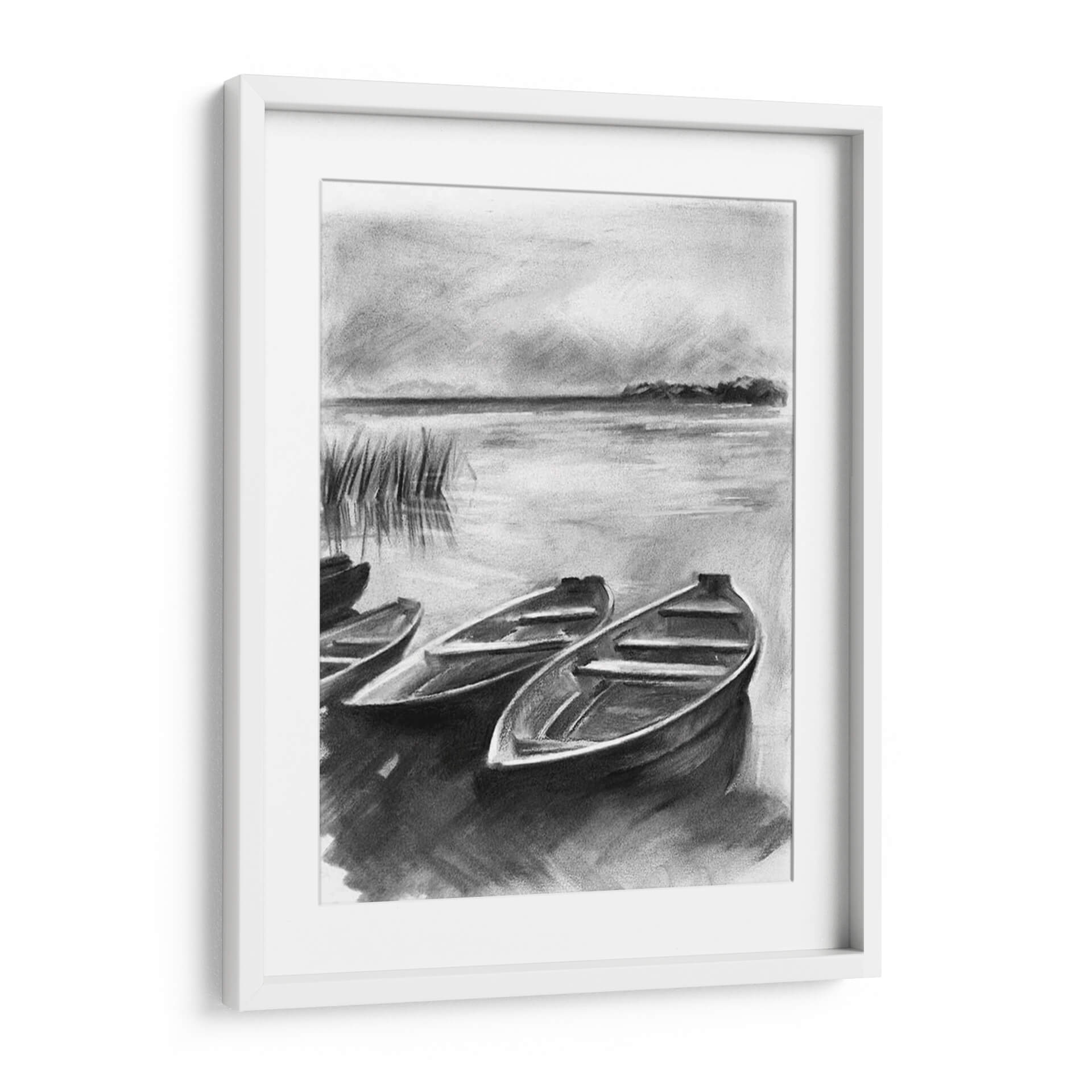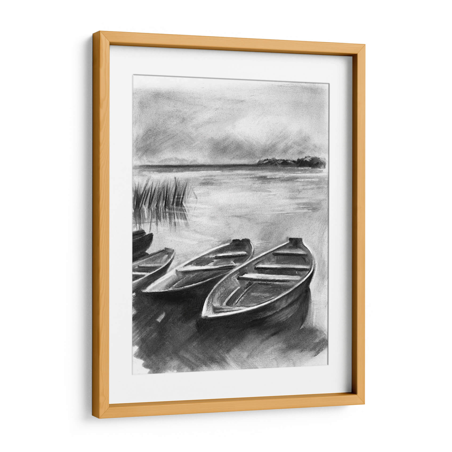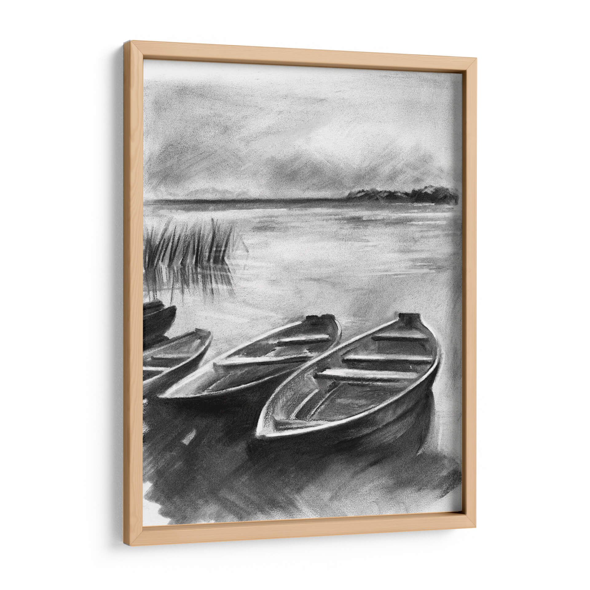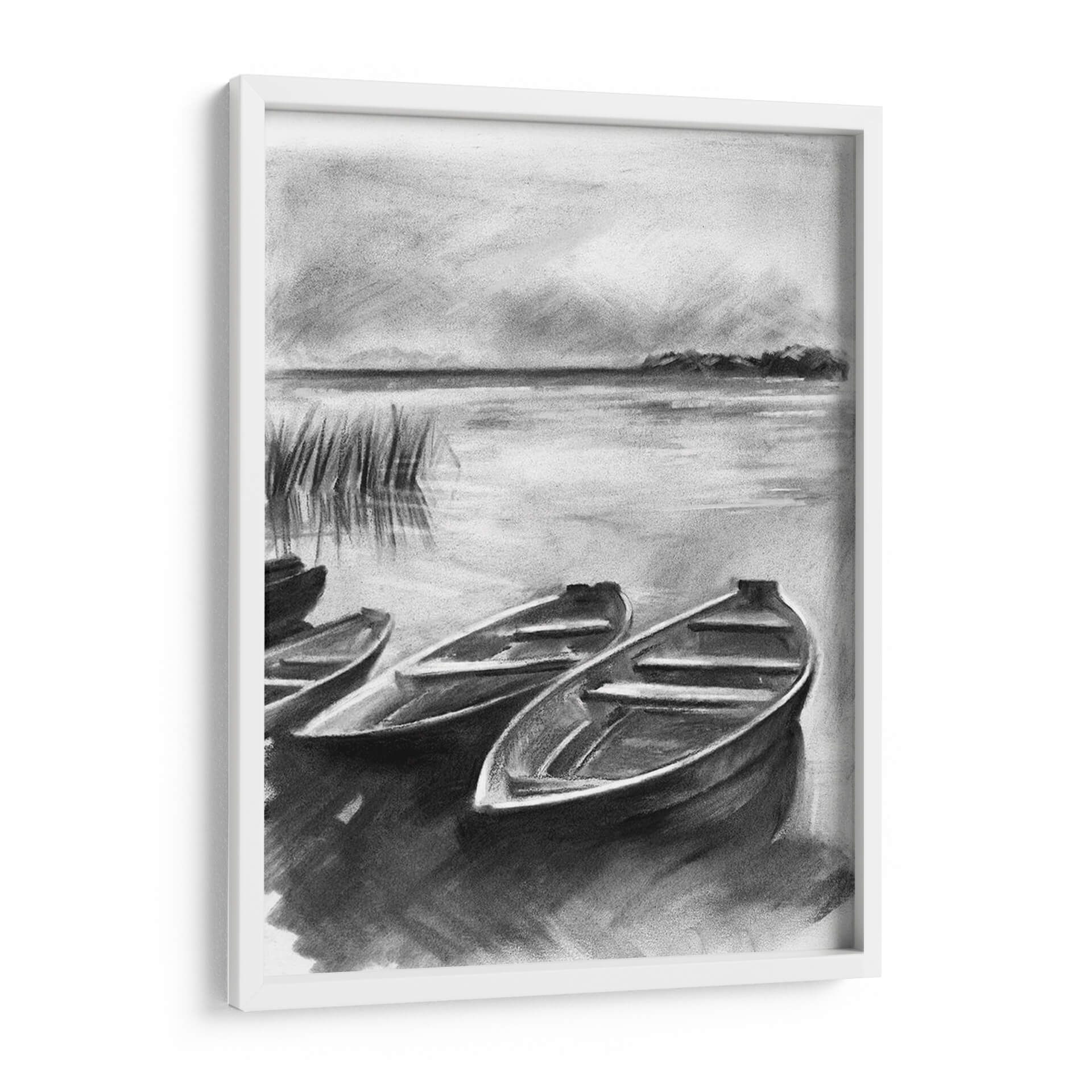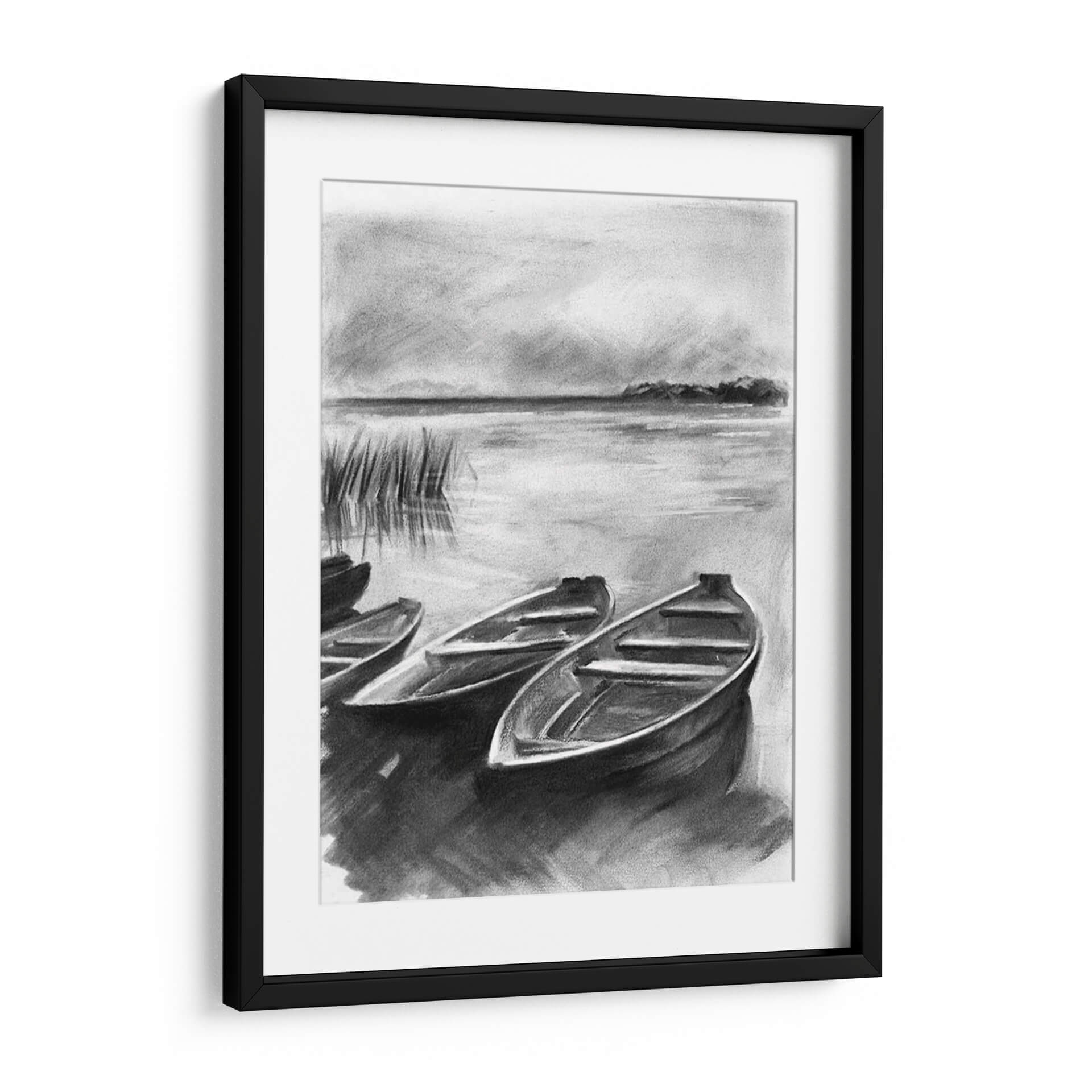 Sumérgete en la serenidad y el misterio de "Bateau Noir I", una obra de arte en carboncillo de Jennifer Paxton Parker que captura la quietud de un lago al amanecer o al atardecer. El cuadro presenta varios botes de remos anclados, reflejados suavemente en el agua tranquila, con un horizonte lejano y una orilla con juncos que añaden profundidad a la escena. La paleta de colores monocromática, dominada por grises y negros, crea una atmósfera introspectiva y contemplativa, perfecta para espacios que buscan evocar calma y reflexión. El estilo de carboncillo aporta una textura rica y un contraste dramático, resaltando las formas de los botes y la sutil ondulación del agua. Esta pieza es ideal para quienes aprecian el arte figurativo con un toque de melancolía o la belleza de los momentos efímeros. "Bateau Noir I" es más que una simple representación; es una invitación a la meditación, capaz de transformar cualquier habitación, desde una sala de estar moderna hasta un estudio personal, en un santuario de paz. Añade este cuadro decorativo a tu colección y disfruta de la elegancia atemporal del dibujo a carboncillo.