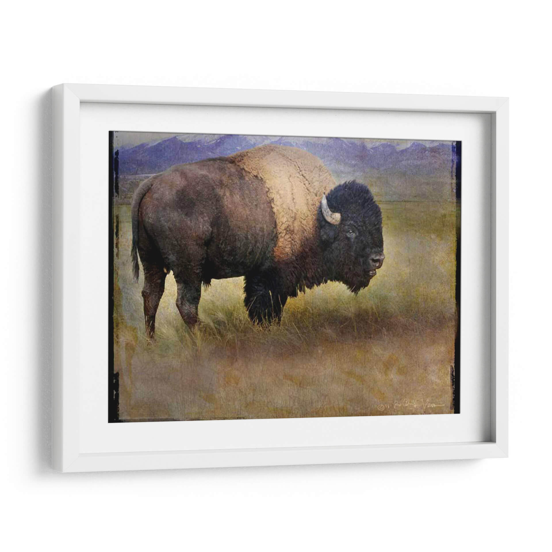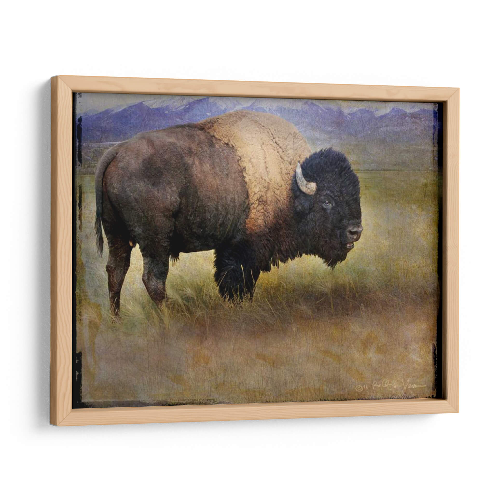 Sumérgete en la majestuosidad de la naturaleza con "Bison Retrato II", una obra de arte que captura la imponente presencia de este icónico animal en su hábitat salvaje. El cuadro decorativo presenta un bisonte en primer plano, con su pelaje detallado y su mirada penetrante que evoca fuerza y resistencia. Los tonos tierra predominantes, desde el marrón profundo del animal hasta los ocres y verdes sutiles del paisaje, crean una atmósfera rústica y serena. Las montañas azuladas en el fondo añaden profundidad y un toque de misterio a la escena, sugiriendo la vastedad de las llanuras. El estilo artístico, con toques texturizados y un acabado que recuerda a técnicas pictóricas tradicionales, aporta calidez y carácter. Este cuadro es perfecto para quienes buscan infundir sus espacios con un sentido de poder natural y tranquilidad. Ideal para salones rústicos, estudios o cualquier ambiente que desee un punto focal impactante y lleno de vida salvaje. "Bison Retrato II" no es solo una decoración, sino una ventana a la indómita belleza del oeste americano.