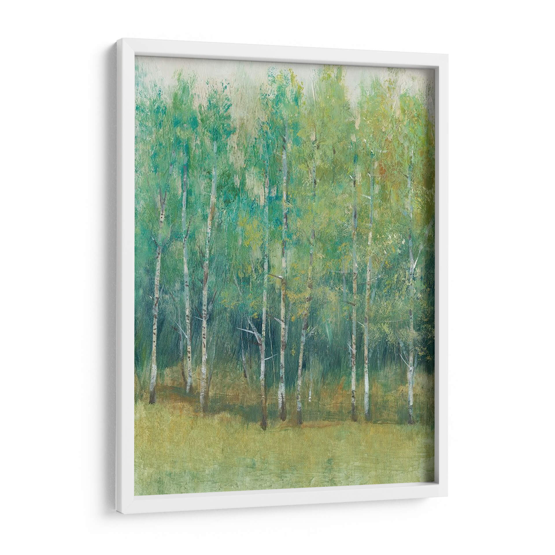 Adéntrate en la serenidad del bosque con 'Borde Del Bosque I-II', una obra de arte que captura la esencia de un paisaje natural con un estilo evocador y contemporáneo. Este cuadro decorativo te transporta a un rincón de tranquilidad, donde los troncos esbeltos de los abedules se alzan hacia un dosel de follaje vibrante. La paleta de colores, dominada por verdes profundos y amarillos luminosos, crea una atmósfera fresca y revitalizante, ideal para infundir calma en cualquier espacio. La pincelada suelta y expresiva del artista Tim O'Toole aporta textura y profundidad, invitando a la contemplación. Cada detalle, desde la hierba que alfombra el suelo hasta las sutiles variaciones de luz y sombra entre los árboles, está representado con maestría. 'Borde Del Bosque I-II' es más que una simple pieza decorativa; es una ventana a la naturaleza que aporta una sensación de paz y conexión. Perfecta para salas de estar, dormitorios o cualquier rincón que necesite un toque de inspiración natural y elegancia contemporánea. Este cuadro transformará tu hogar en un santuario de serenidad y estilo, invitando a la reflexión y al disfrute visual día tras día.