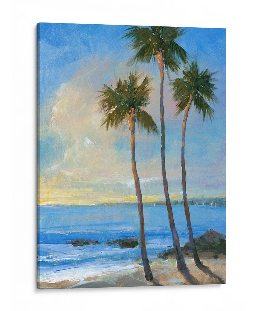 Sumérgete en la serenidad de la costa con "Brisa Tropical II" de Tim O'Toole, una obra de arte que captura la esencia de un paraíso playero. Este cuadro decorativo te transporta a un atardecer bañado en tonos cálidos y azules profundos, donde tres palmeras esbeltas se alzan majestuosamente contra un cielo nublado y una extensión de mar sereno. La pincelada suelta y expresiva del artista evoca la brisa marina y el sonido de las olas rompiendo suavemente en la orilla. Los tonos vibrantes del agua y el cielo, contrastados con la calidez de la arena y las sombras proyectadas por las palmeras, crean una atmósfera de paz y relajación. Ideal para quienes buscan infundir a su hogar u oficina una sensación de escapismo y tranquilidad, "Brisa Tropical II" es perfecto para añadir un toque de color y naturaleza a cualquier espacio. Coloca esta pieza en tu sala de estar para crear un oasis de calma, en tu dormitorio para noches de ensueño, o en tu estudio para inspirar momentos de reflexión. Este cuadro decorativo contemporáneo es una invitación a disfrutar de la belleza efímera de la naturaleza.