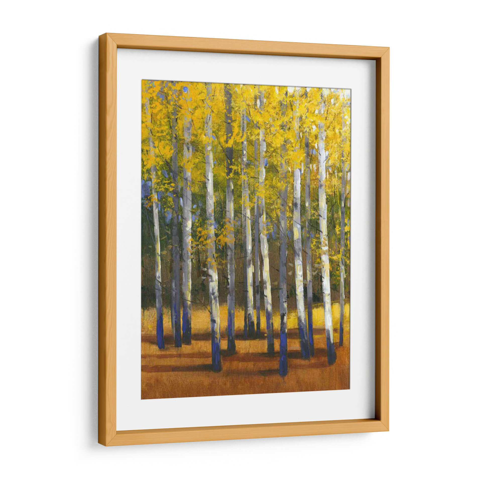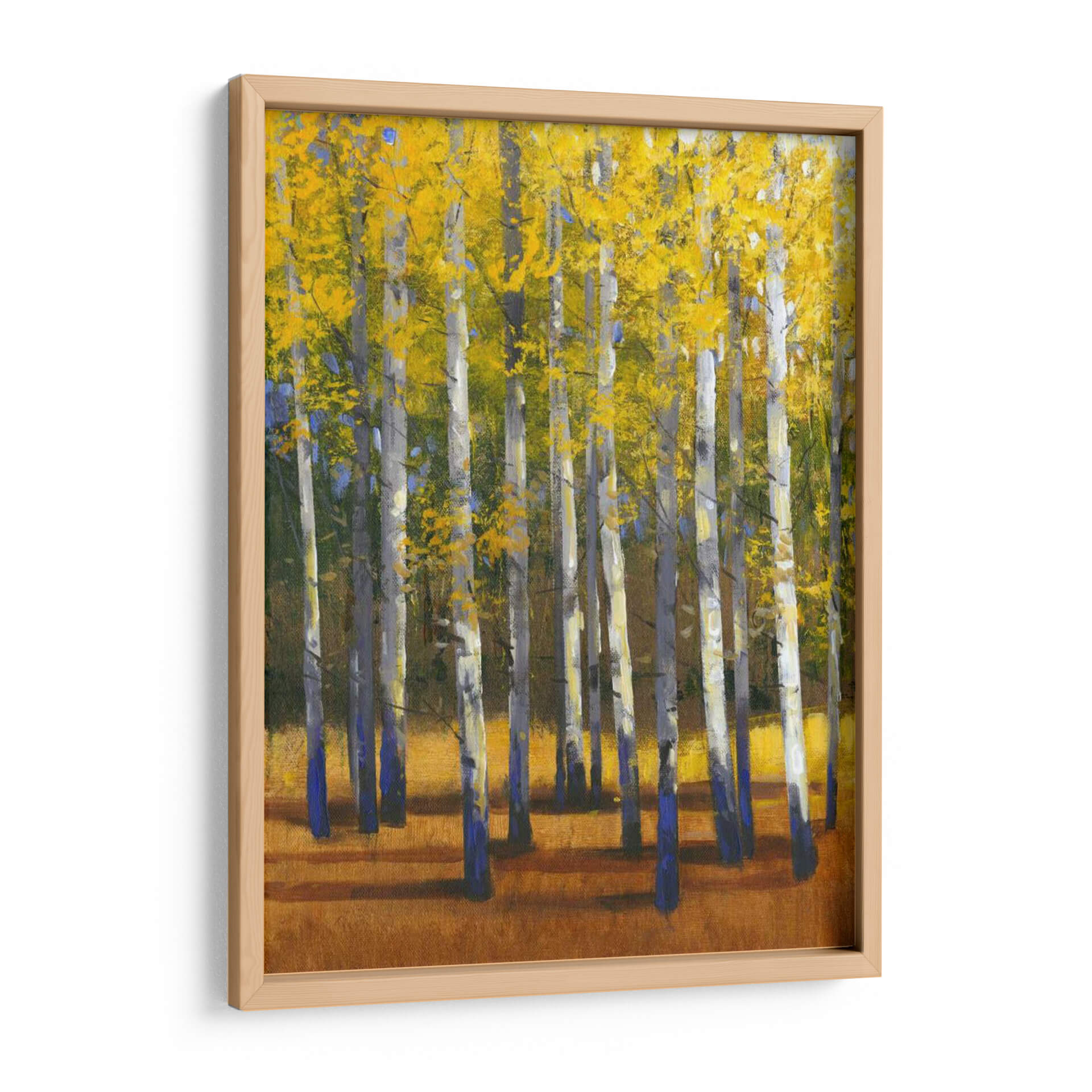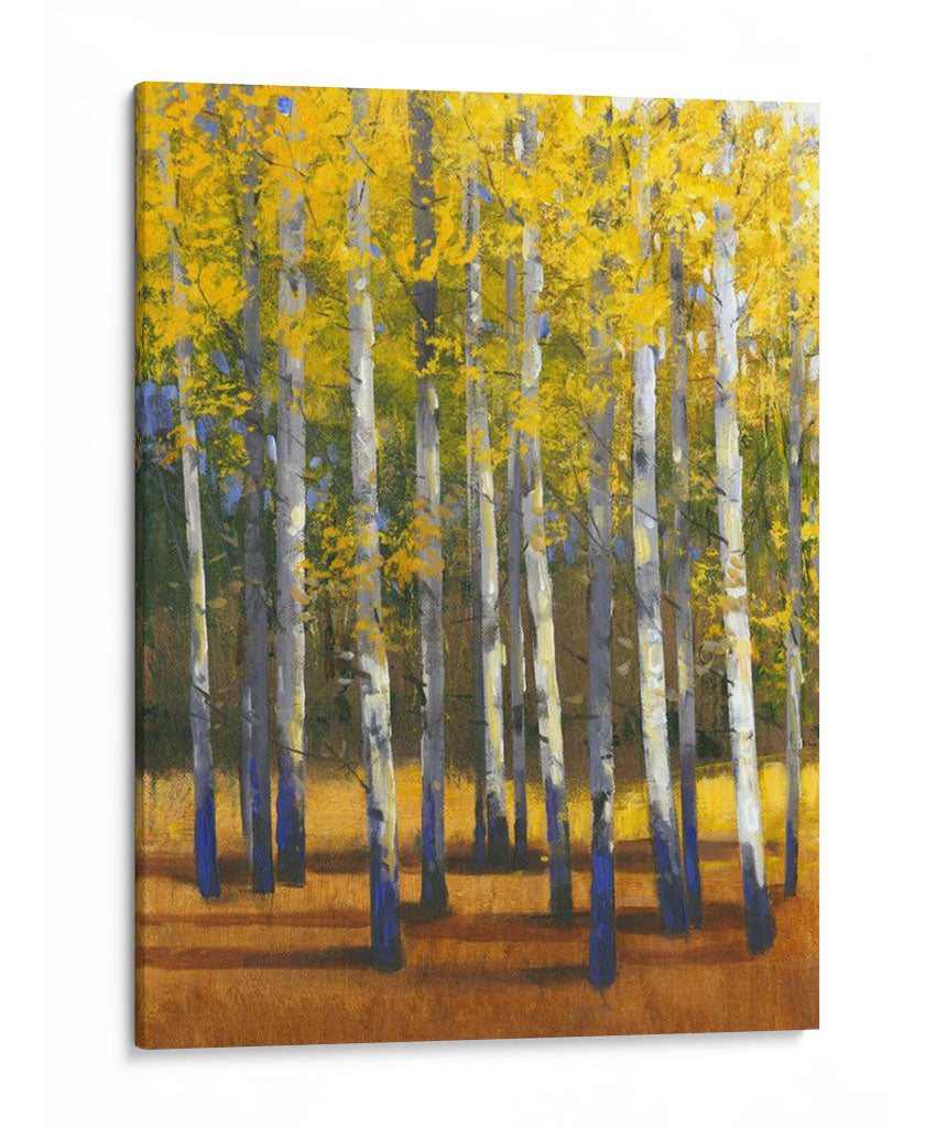 Sumérgete en la vibrante belleza de 'Caída En La Gloria Ii', una obra de arte contemporáneo que captura la esencia del otoño con una paleta de colores cálidos y envolventes. Este cuadro decorativo presenta una arboleda de abedules, cuyas esbeltas figuras se alzan majestuosamente bajo un dosel de hojas doradas y amarillas que brillan con la luz. La técnica pictórica, con pinceladas visibles y texturizadas, aporta profundidad y dinamismo a la escena, creando una atmósfera de calidez y serenidad. Los troncos de los árboles, en tonos grises y blancos con toques de azul en sus bases, contrastan maravillosamente con el follaje otoñal y el suelo cubierto de hierba seca y sombras alargadas. La composición vertical y la repetición de las formas de los troncos generan un ritmo visual que guía la mirada del espectador a través del bosque. Ideal para añadir un toque de naturaleza y luz a cualquier espacio, este cuadro es perfecto para salones modernos, recibidores o dormitorios que busquen una conexión con la serenidad del paisaje natural en su máxima expresión cromática. Transforma tu hogar con esta pieza evocadora que celebra la transición y la belleza efímera de la estación dorada, creando un ambiente acogedor y lleno de vida.