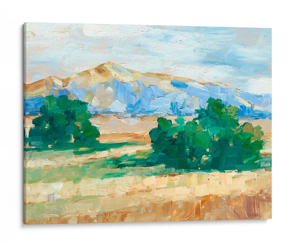 Sumérgete en la serenidad de "Campo Sunny II", una obra de arte que captura la esencia de un paisaje rural bañado por el sol. El artista Ethan Harper nos transporta a un día claro con pinceladas audaces y una paleta de colores vibrantes que evocan calidez y vitalidad. Los tonos ocres y dorados del campo seco contrastan bellamente con el verde intenso de los árboles y el azul cerúleo y las sombras heladas que pintan las majestuosas montañas a lo lejos. El cielo, con sus nubes tenues y toques rosados, añade una atmósfera de paz y amplitud. Esta pieza, con su estilo impresionista moderno, es perfecta para añadir un toque de naturaleza y optimismo a cualquier espacio, ya sea una sala de estar, un dormitorio o una oficina. El cuadro decorativo "Campo Sunny II" invita a la contemplación, ofreciendo una ventana a un momento de tranquilidad y belleza natural. Su composición equilibrada y su energía luminosa lo convierten en un punto focal cautivador que enriquecerá tu decoración, aportando una sensación de conexión con el exterior.