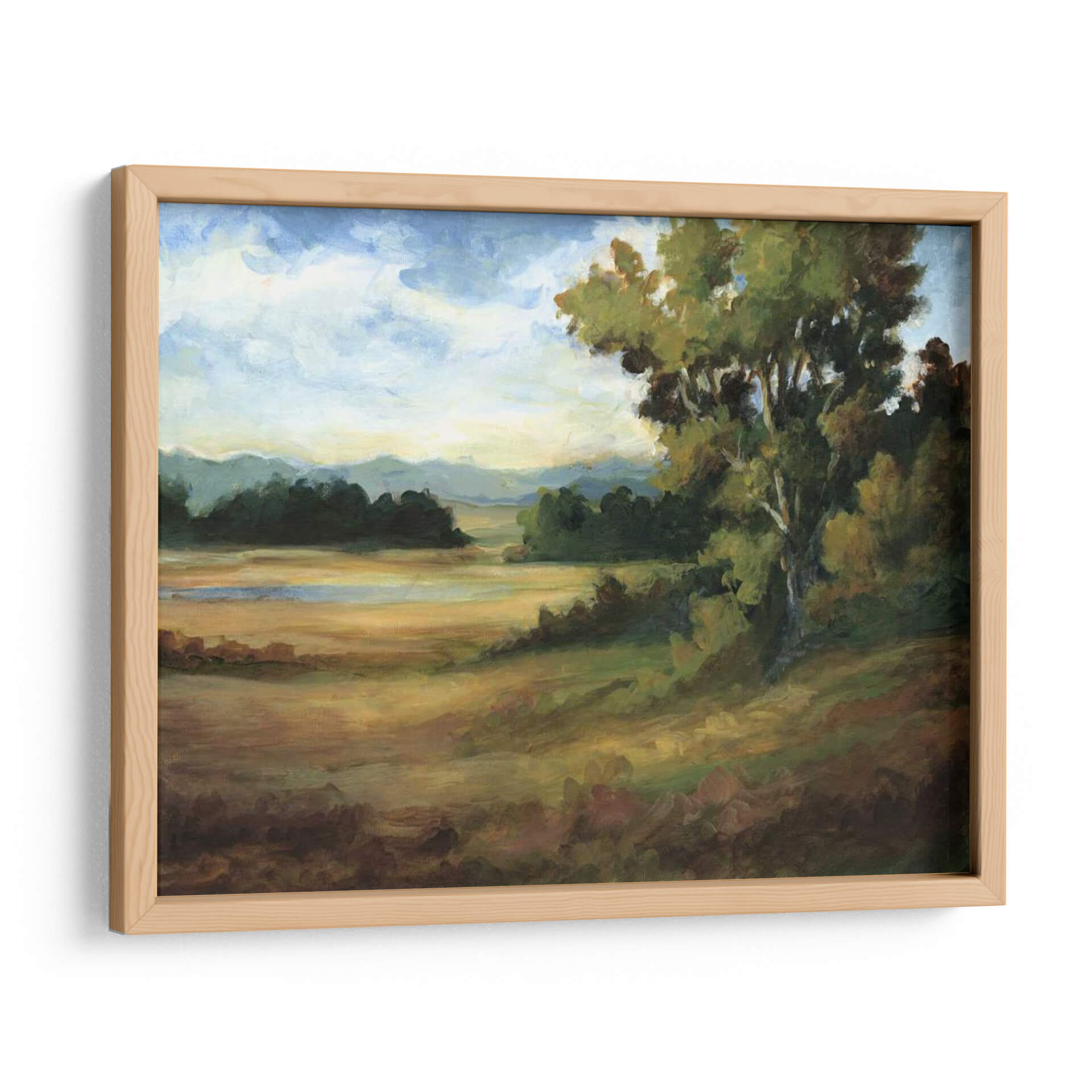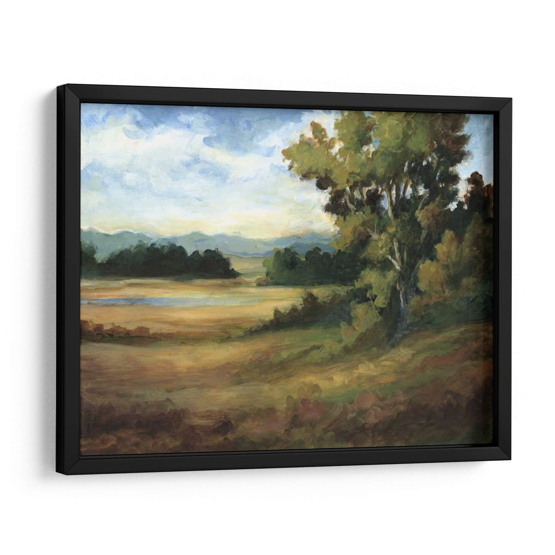 Sumérgete en la serenidad campestre con "Campos de Ámbar", una obra de Ethan Harper que captura la esencia de un paisaje rural bañado por la luz del atardecer. Este cuadro decorativo te transporta a un prado dorado, donde la naturaleza se despliega en una armonía de tonos tierra y verdes exuberantes. La pincelada suelta y expresiva evoca una sensación de movimiento en las nubes celestes y en el follaje de un árbol majestuoso que domina la escena. La paleta de colores cálidos, con acentos de ámbar, ocres y verdes profundos, crea una atmósfera acogedora y pacífica, ideal para infundir calma en cualquier espacio. "Campos de Ámbar" es más que una simple representación de la naturaleza; es una invitación a la contemplación y al disfrute de la belleza simple y atemporal. Este paisaje impresionista es perfecto para añadir un toque de calidez y sofisticación a tu sala de estar, dormitorio u oficina, convirtiéndose en un punto focal que invita a la relajación y la inspiración. Descubre la tranquilidad que este lienzo evoca y transforma tu hogar en un refugio de paz.