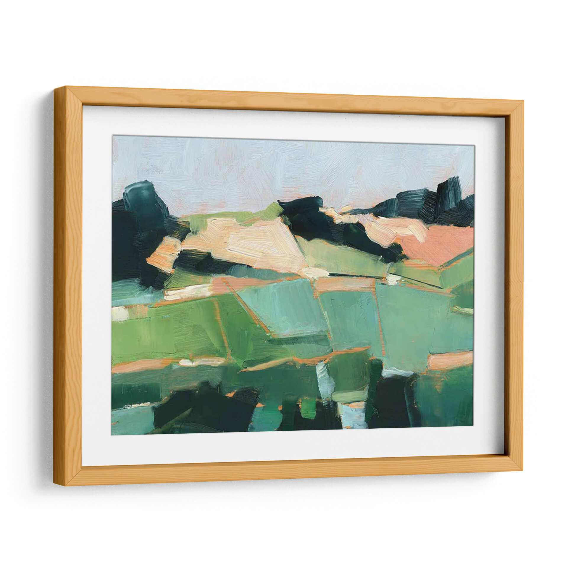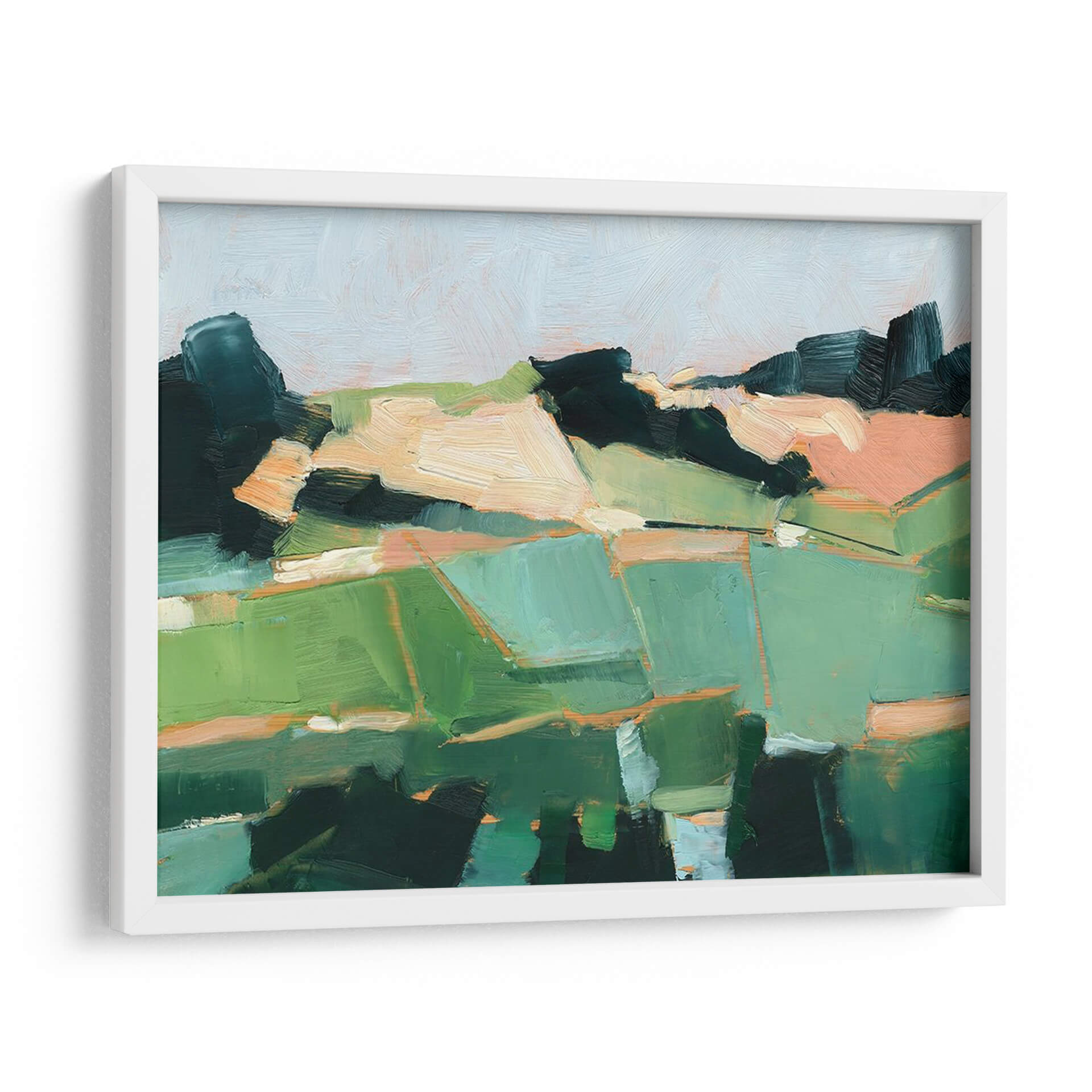 Sumérgete en la serenidad de "Campos Rodantes I", una obra de arte contemporáneo que captura la esencia de un paisaje rural con un toque abstracto y moderno. El artista Ethan Harper nos transporta a través de pinceladas audaces y una paleta de colores vibrantes, dominada por verdes frescos, tonos tierra cálidos y toques de melocotón y azul pálido. La composición, dividida en bloques de color y formas geométricas orgánicas, evoca la sensación de campos ondulantes bajo un cielo sereno. Esta pieza es ideal para añadir un toque de naturaleza y calma a cualquier espacio, ya sea una sala de estar, un dormitorio o una oficina. Su estilo abstracto permite una interpretación personal, invitando a la contemplación y al disfrute estético. "Campos Rodantes I" no es solo un cuadro decorativo, sino una ventana a un mundo de texturas y colores que transformará tu hogar en un oasis de tranquilidad y estilo. Descubre cómo esta obra de arte puede convertirse en el punto focal de tu decoración, aportando una atmósfera de armonía y sofisticación.