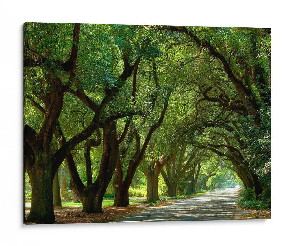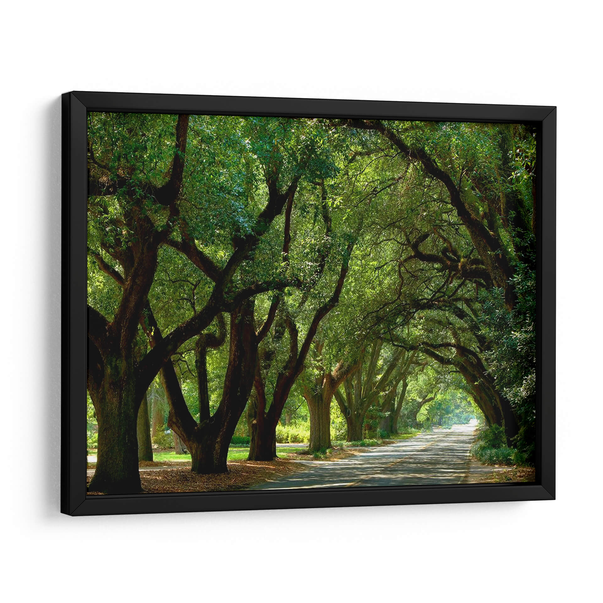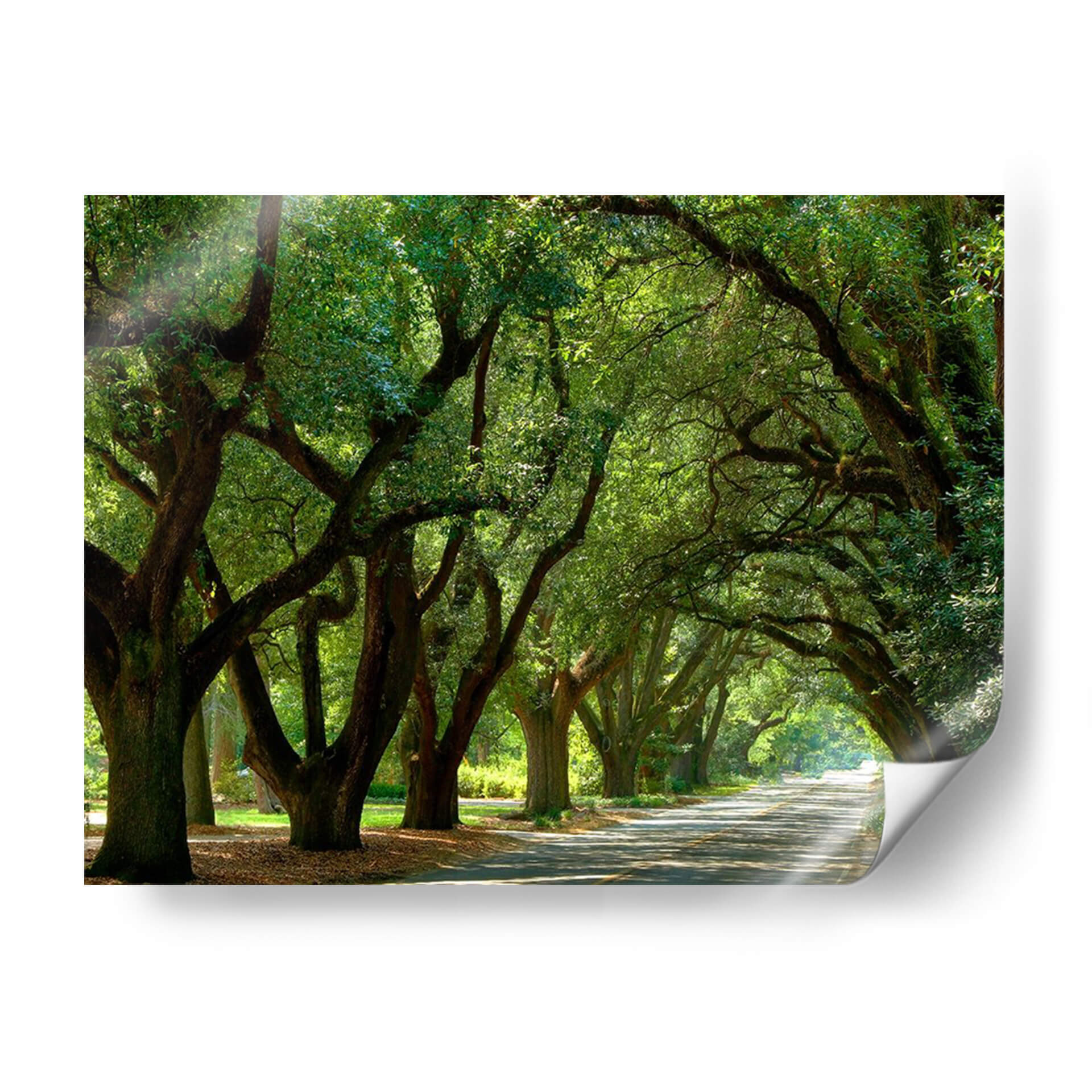 Adéntrate en la serenidad del "Canopy Road II", una obra de James McLoughlin que captura la majestuosidad de un camino flanqueado por imponentes árboles. La luz solar se filtra a través del denso follaje verde, creando un juego de luces y sombras que baña el asfalto con destellos dorados y tonos tierra. Los troncos robustos y las ramas entrelazadas forman un túnel natural, invitando a la contemplación y al viaje interior. Este cuadro decorativo, con su atmósfera pacífica y su rica paleta de verdes y marrones, es perfecto para aportar un toque de naturaleza y tranquilidad a cualquier espacio. Imagina este paisaje como un punto focal en tu sala de estar, aportando una sensación de calma y conexión con el exterior, o como un recordatorio diario de la belleza serena en tu oficina o dormitorio. La composición fotográfica realista y el detallado trabajo en la textura de los árboles hacen de "Canopy Road II" una pieza de arte de pared que trasciende el tiempo, ideal para quienes buscan infundir sus ambientes con una elegancia natural y atemporal. Transforma tu hogar en un santuario de paz con esta impresionante representación de la naturaleza.