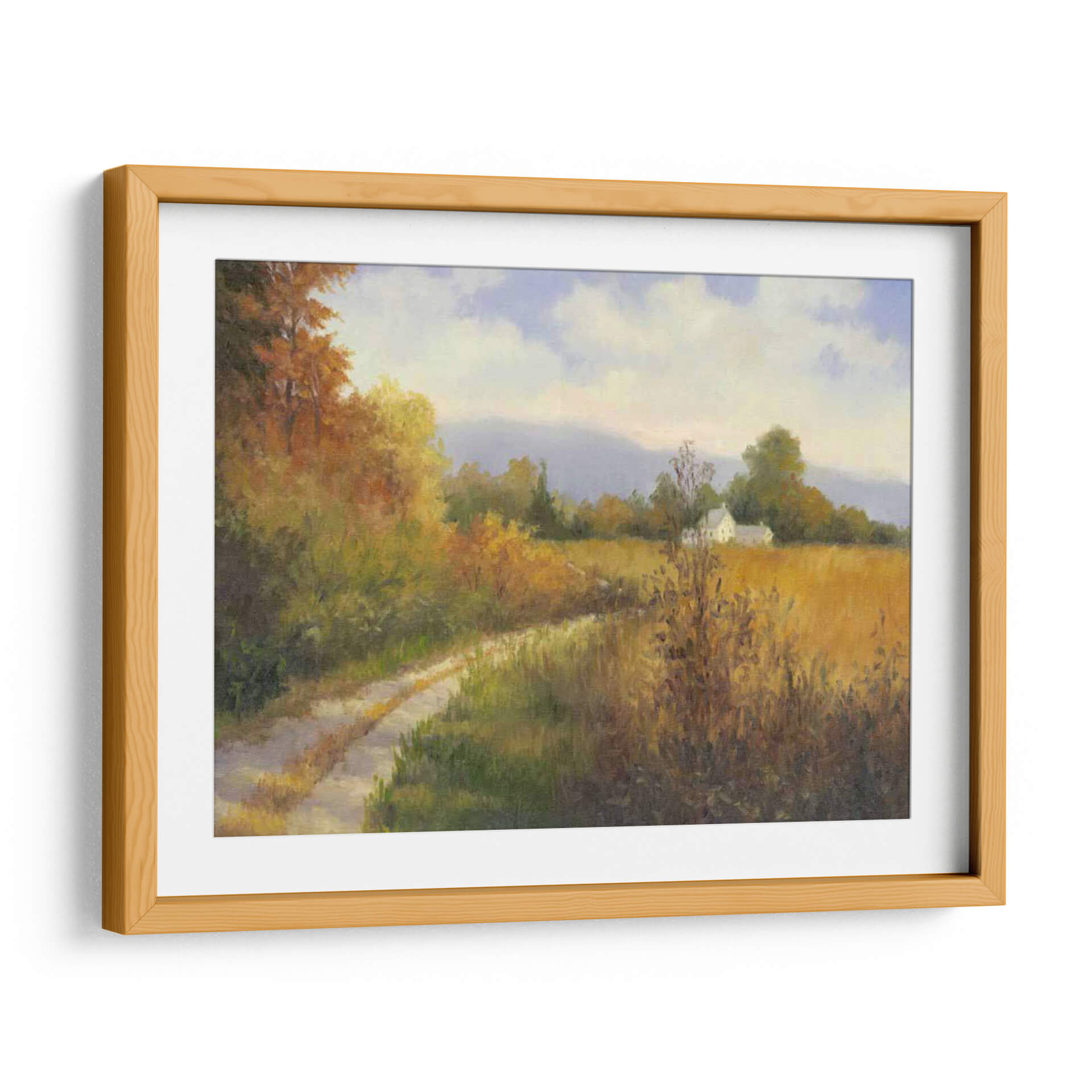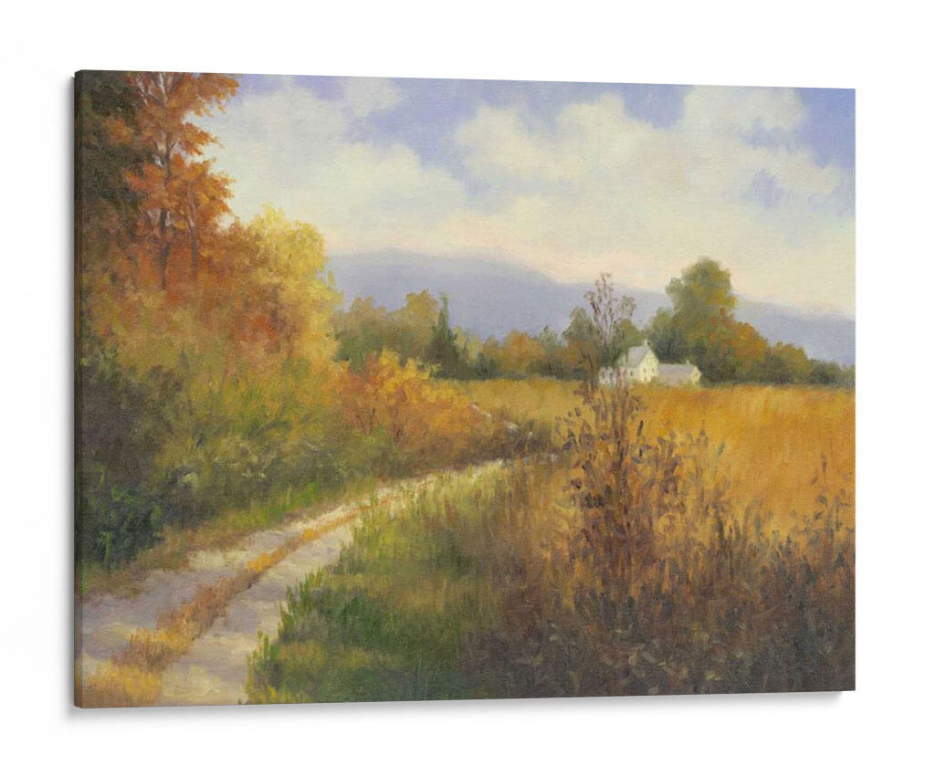 Sumérgete en la serenidad otoñal con "Carretera Nacional De Otoño", una obra de arte que captura la esencia de una estación de transición con pinceladas evocadoras. Este cuadro decorativo te transporta a un paisaje rural bañado en la cálida luz dorada del otoño, donde un camino de tierra serpentea suavemente a través de un campo de hierbas secas y vegetación frondosa. Los tonos ocres, amarillos y naranjas dominan la paleta, contrastando sutilmente con el verde profundo de los árboles y el azul pálido del cielo salpicado de nubes etéreas. En la distancia, una acogedora casa blanca se asoma entre la arboleda, invitando a la contemplación y la paz. El estilo pictórico, con su atmósfera impresionista, añade una capa de profundidad y emoción, haciendo que cada detalle cobre vida. Es la pieza perfecta para infundir calidez, tranquilidad y un toque de nostalgia rústica en tu salón, dormitorio o estudio. Ideal para quienes buscan añadir un elemento natural y reconfortante a su decoración, este paisaje otoñal es una invitación a la calma y la reflexión, convirtiendo cualquier espacio en un refugio de paz.