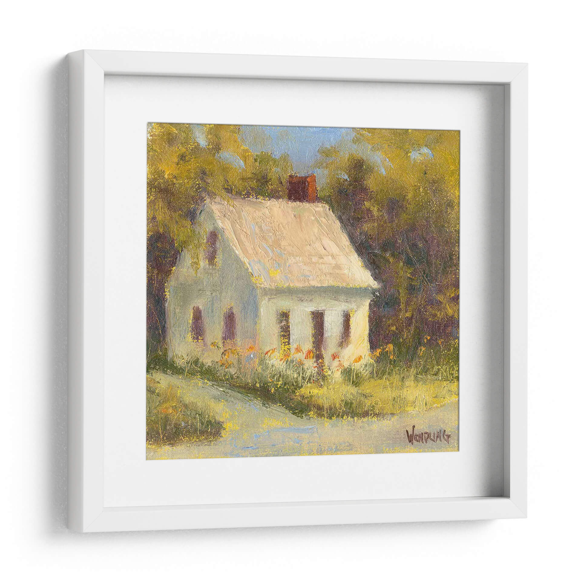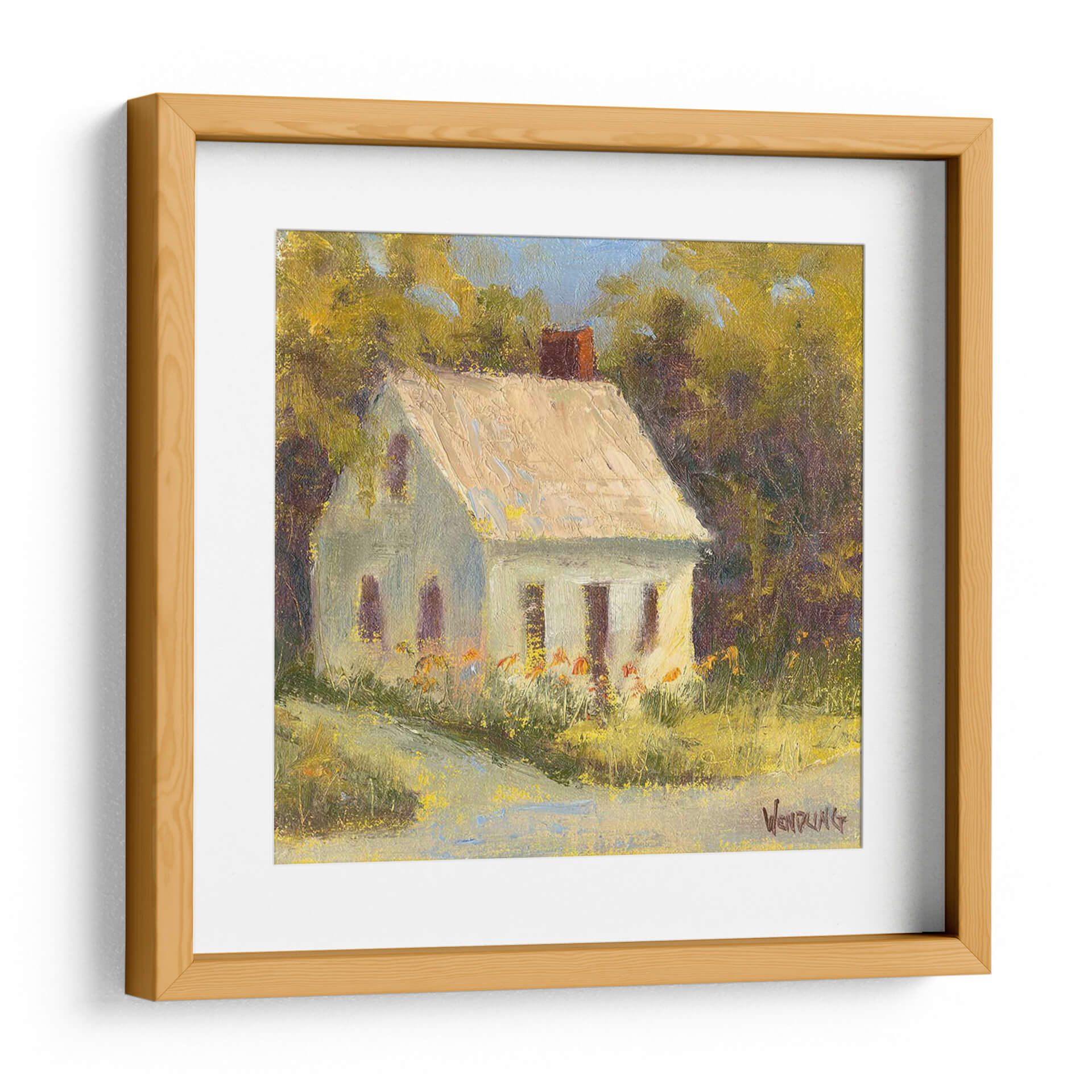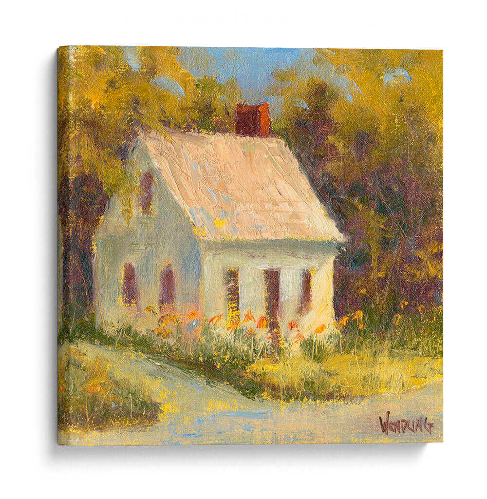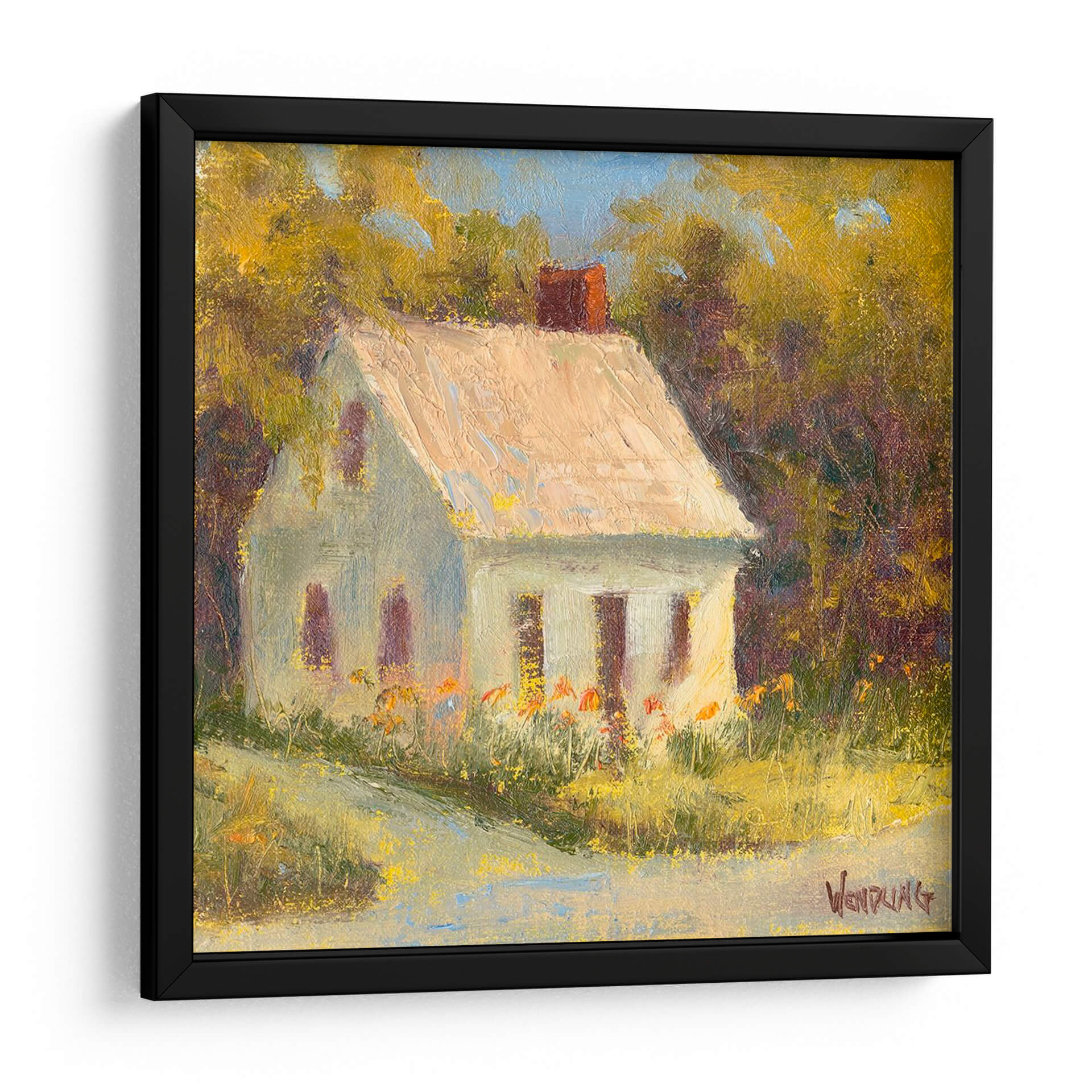 Sumérgete en la serenidad del campo con "Casa Dulce I", una cautivadora obra de arte de Marilyn Wendling que captura la esencia de un refugio rural idílico. Esta pintura, con su técnica impresionista y una paleta de colores cálidos y terrosos, evoca una atmósfera de paz y nostalgia. El cuadro presenta una encantadora casa blanca con un tejado de tonalidad pálida y una chimenea de ladrillo, rodeada de un follaje exuberante en tonos ocres, verdes y amarillos, salpicado por vibrantes flores silvestres en primer plano. La luz del sol parece bañar la escena, creando un ambiente acogedor y acogedor, ideal para transportarte a un momento de tranquilidad. La pincelada suelta y expresiva añade textura y vitalidad a la composición, invitando al espectador a contemplar los detalles y a sentir la brisa suave que parece mecer las hojas. "Casa Dulce I" es la pieza perfecta para añadir un toque de calidez rústica y encanto campestre a cualquier sala de estar, dormitorio o estudio. Es una invitación a soñar con escapadas tranquilas y a encontrar belleza en los rincones sencillos de la vida. Añade este cuadro decorativo a tu hogar para crear un oasis de calma y estilo.