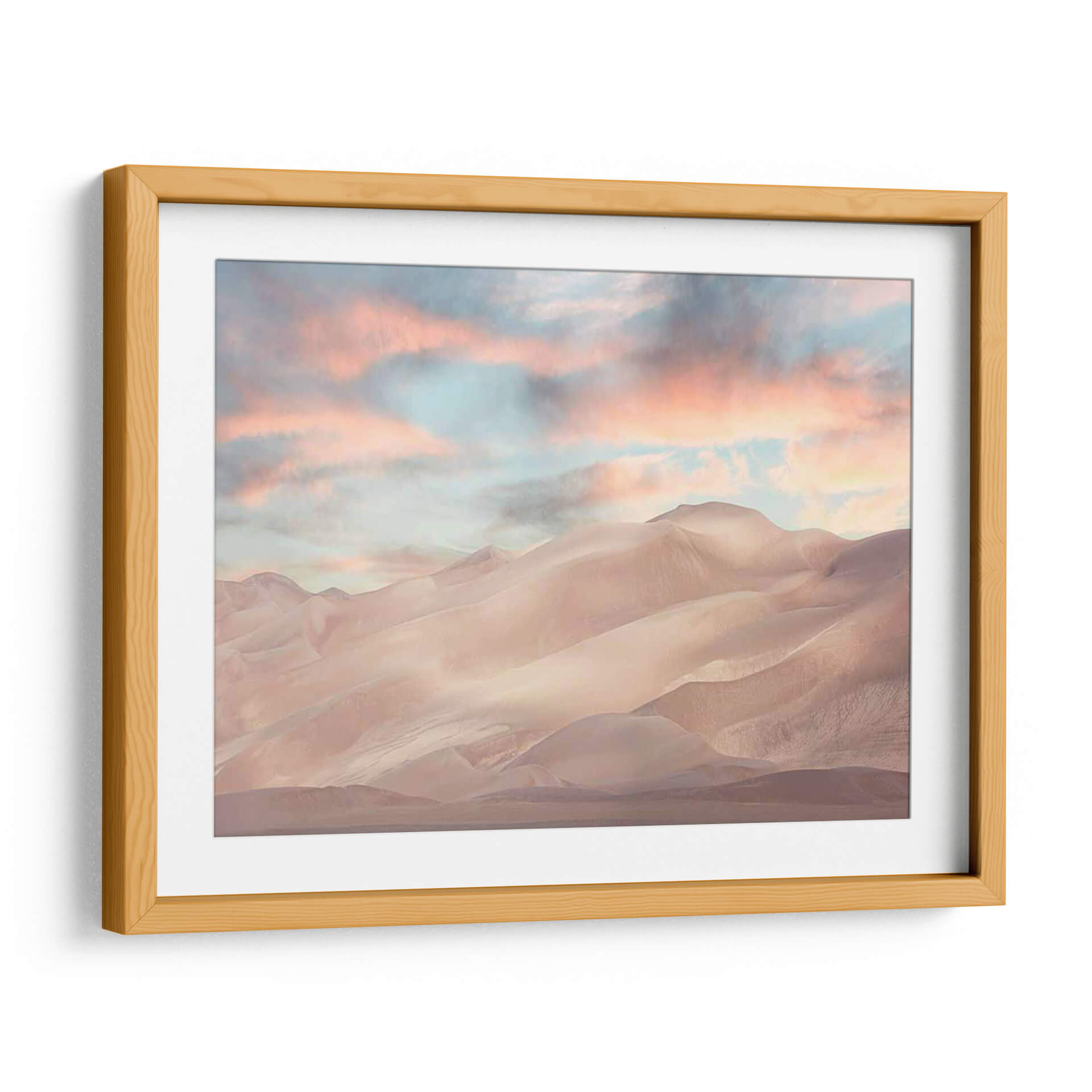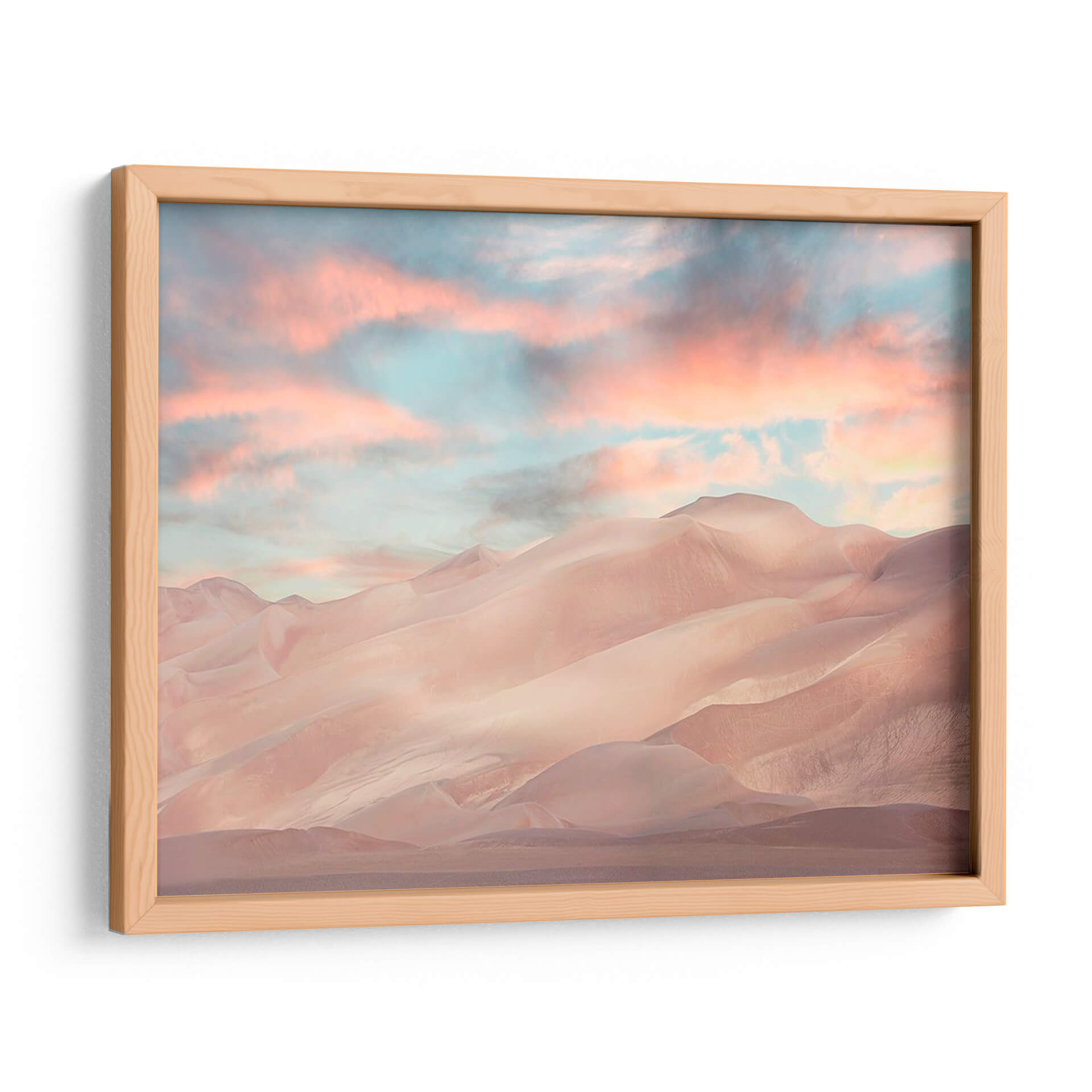 Embárcate en un viaje visual con "Colorado Dunes I", una obra de arte que captura la serena belleza de un paisaje desértico al amanecer o atardecer. Las suaves dunas de arena se extienden hasta el horizonte, modeladas por el viento en curvas orgánicas que invitan a la contemplación. La paleta de colores es un susurro de tonos pastel: rosados suaves y melocotón se funden con delicados celestes y toques de gris azulado en el cielo, creando una atmósfera etérea y pacífica. Las nubes difusas añaden profundidad y movimiento a la escena, sugiriendo la vastedad del cielo y la transitoriedad del momento. Este cuadro decorativo, con su composición paisajística y su estilo evocador, es perfecto para infundir calma y sofisticación en cualquier espacio. Imagina esta pieza como el punto focal de tu sala de estar, aportando una sensación de tranquilidad y conexión con la naturaleza, o como un recordatorio sereno en tu dormitorio o estudio. "Colorado Dunes I" no es solo una imagen, es una invitación a la paz y la reflexión, ideal para quienes buscan un arte que inspire serenidad y eleve la decoración de su hogar u oficina con una belleza atemporal y conmovedora. Un toque de la naturaleza en su máxima expresión.